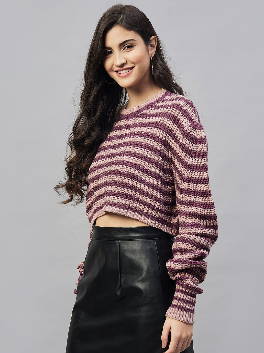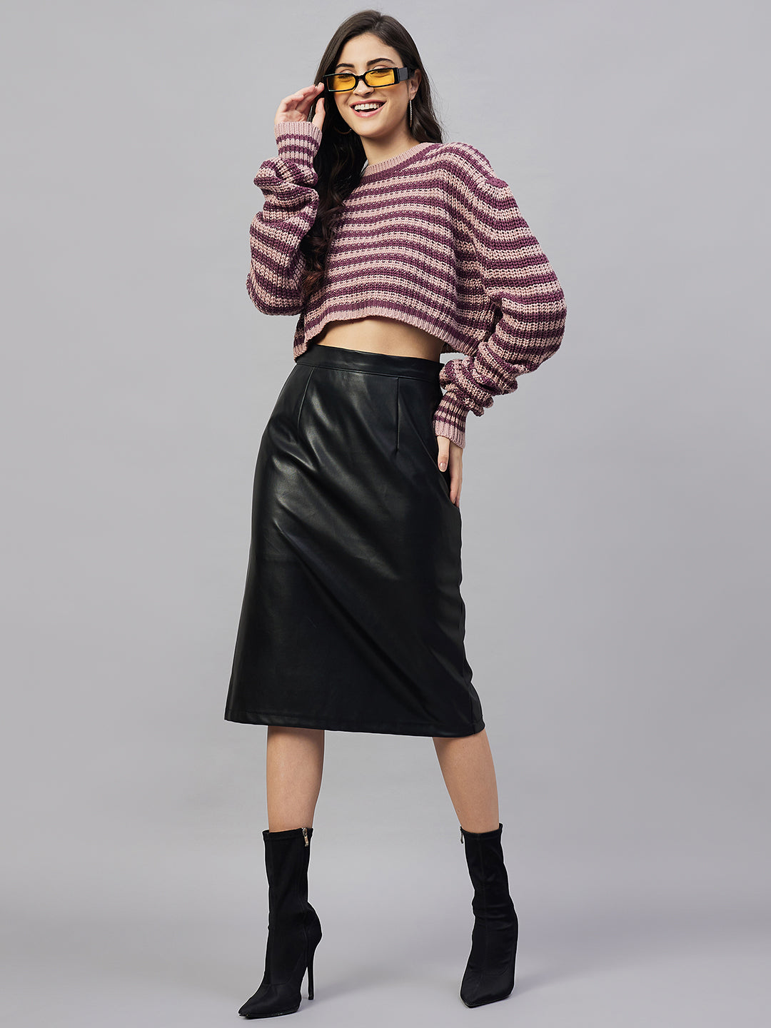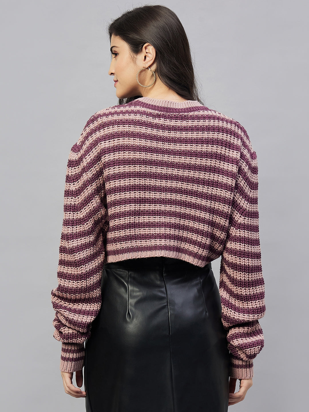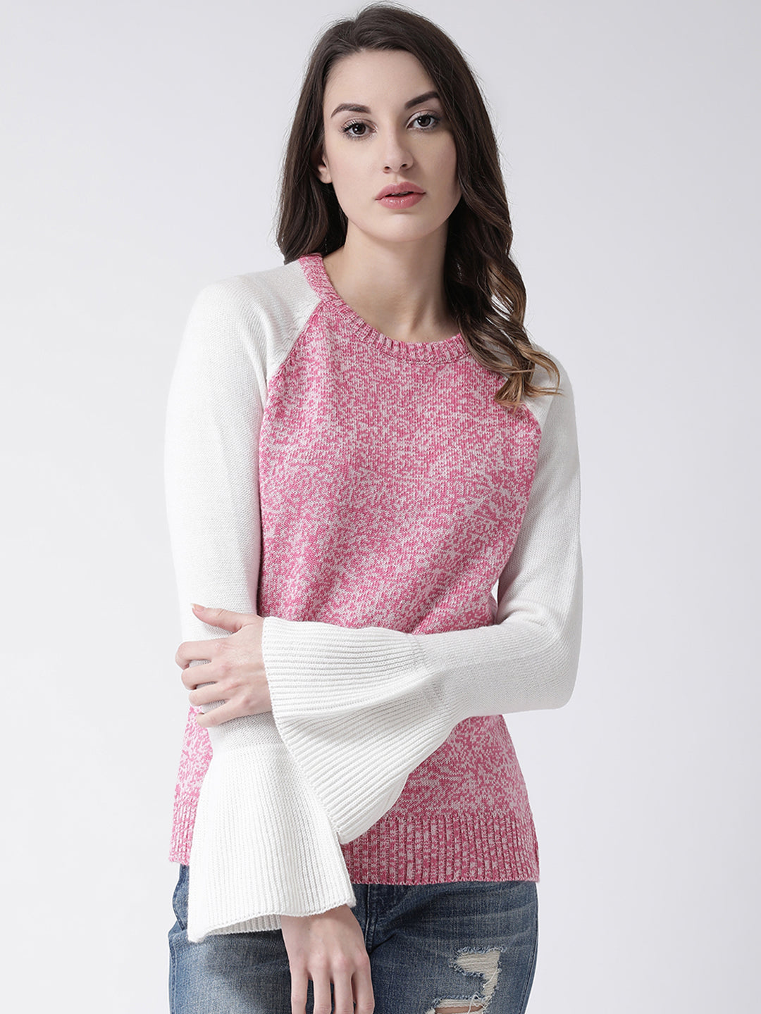 Ecru Melange High Neck Colorblocked Sweater 9647
