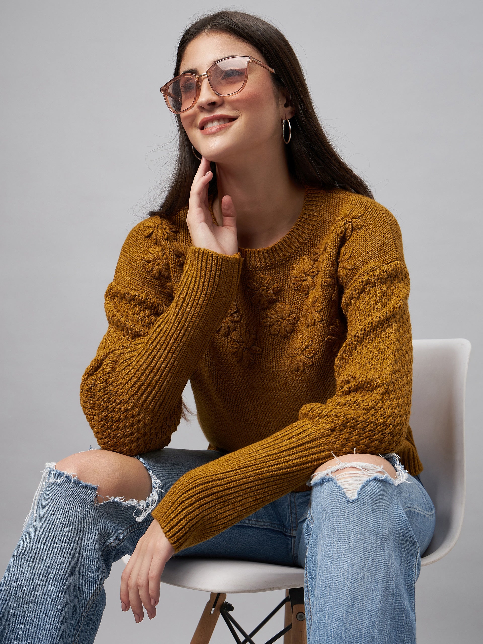 Mustard Solid V-Neck Cardigan With Front Pocket 7100