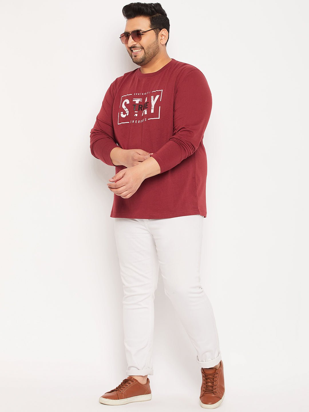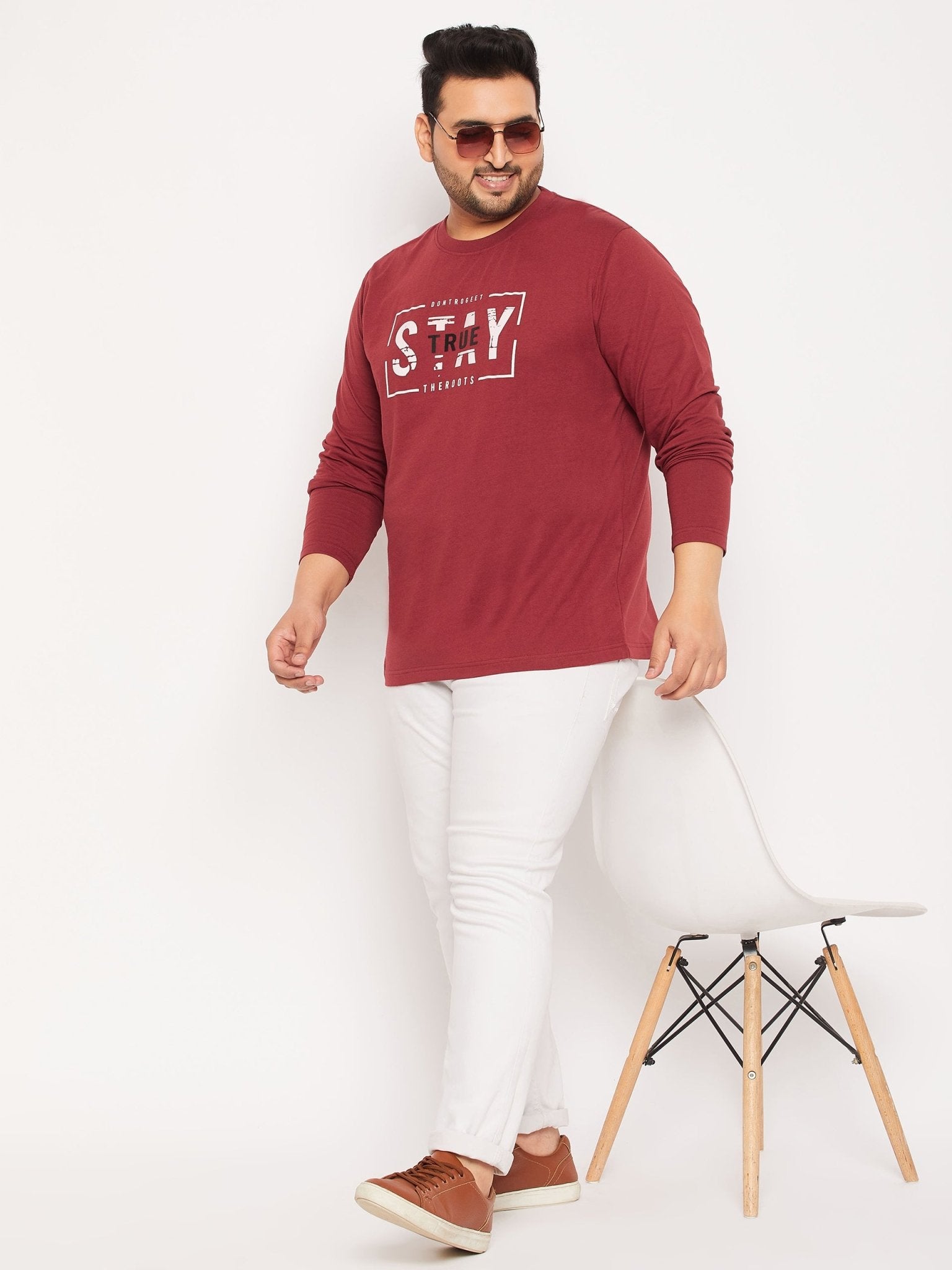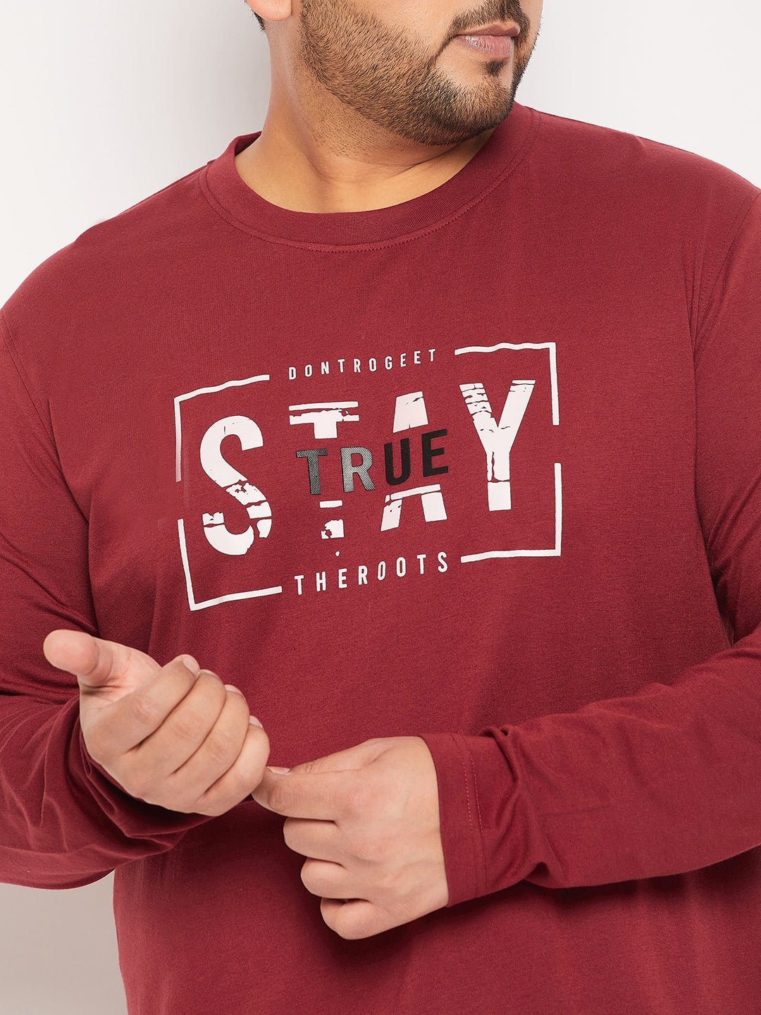 Coffee Brown Printed Round Neck T-Shirt 3836