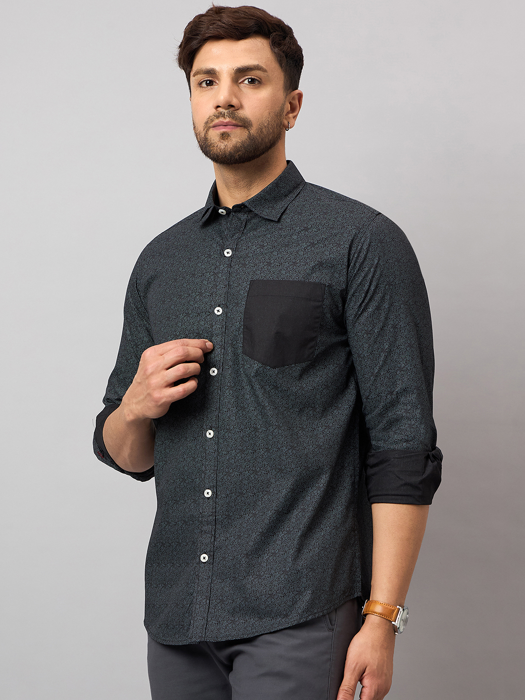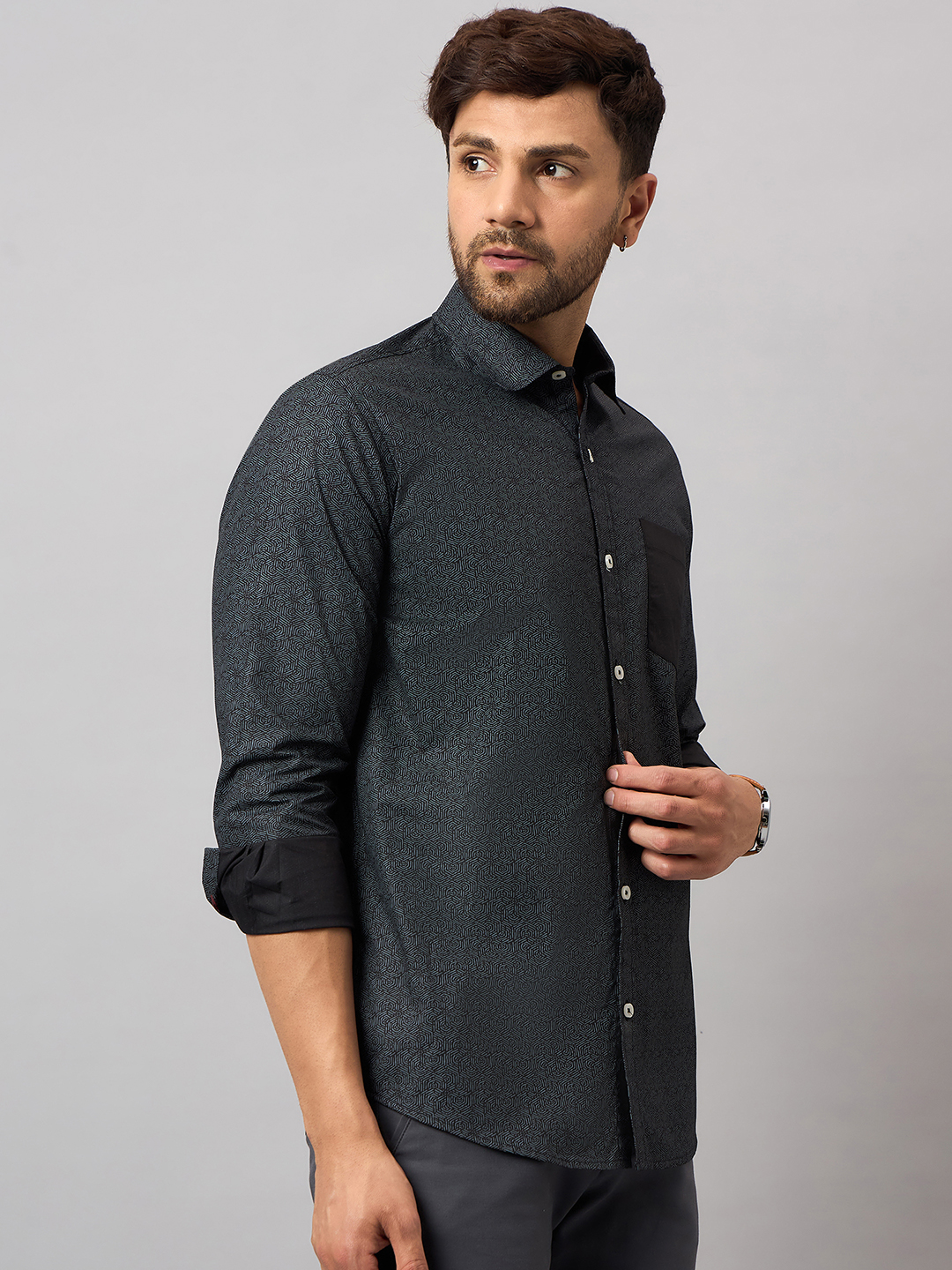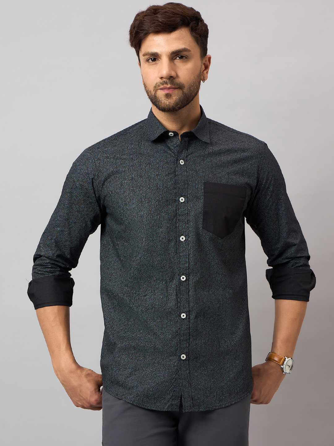 Designer Leaves Printed Green Shirt
