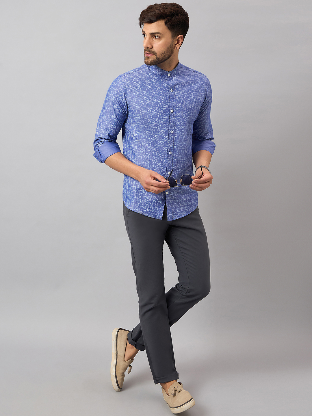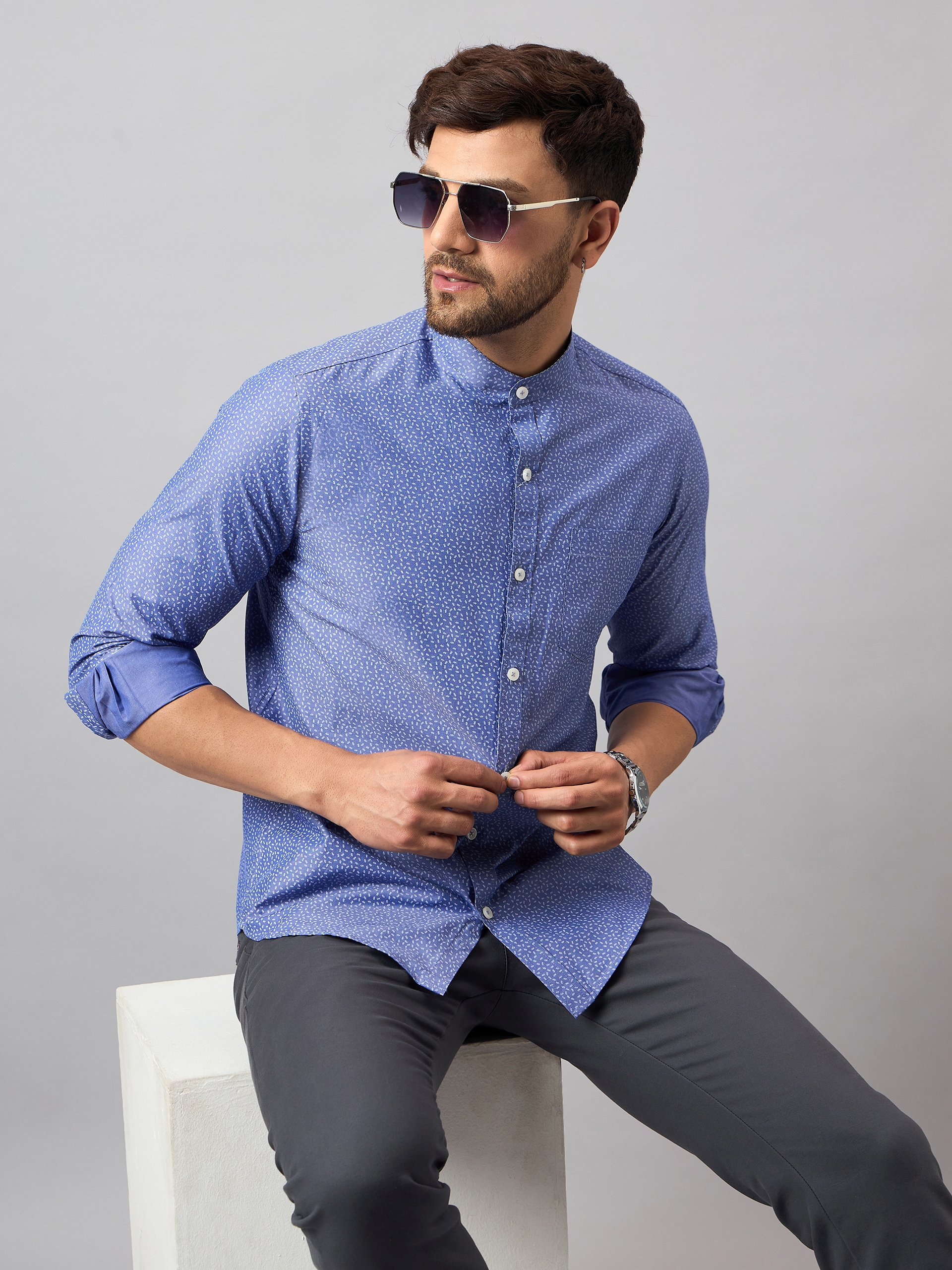 Digital Voilet Solid Mandarin Collar Shirt 5584