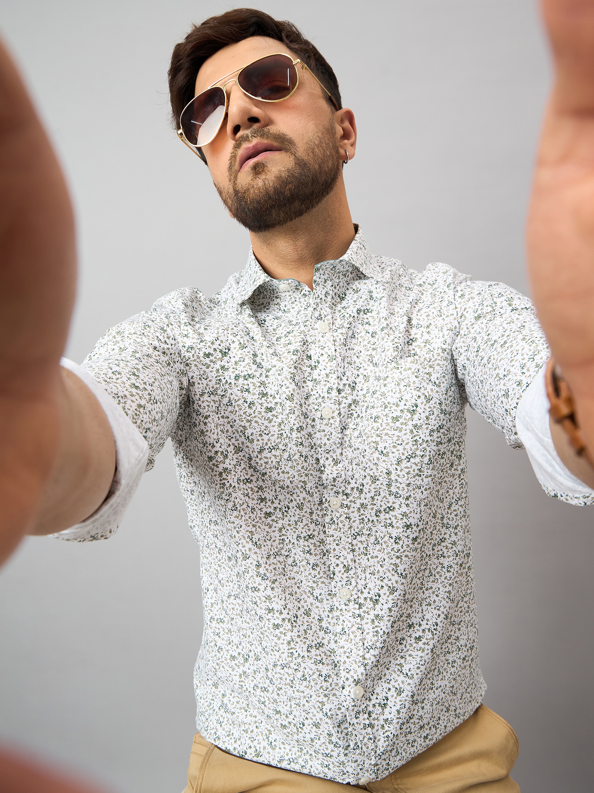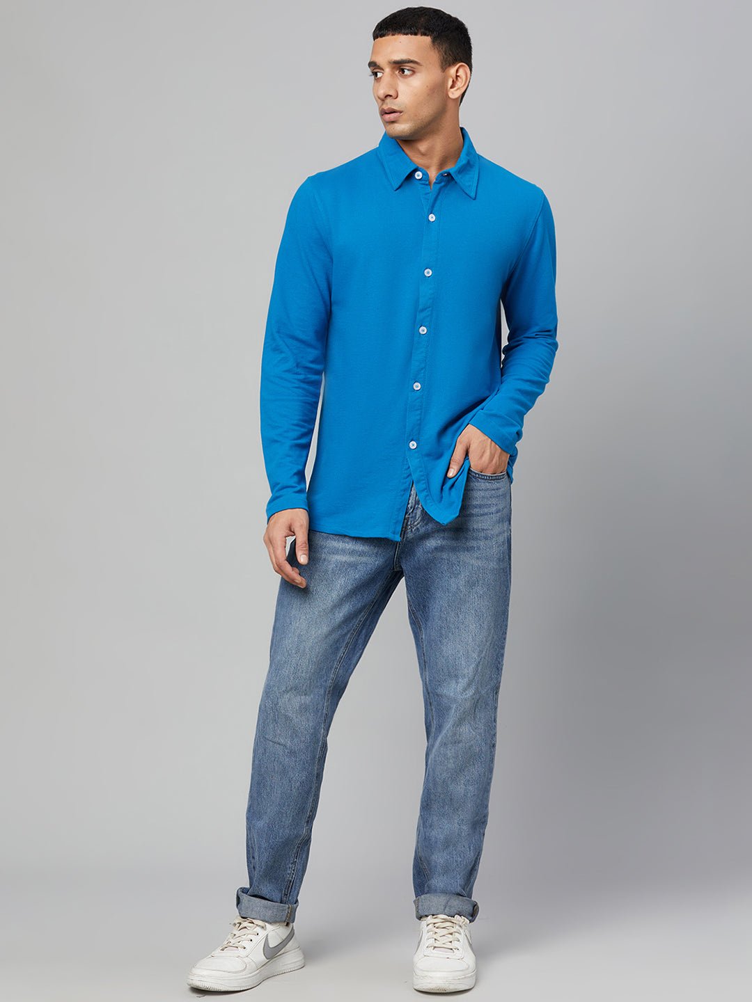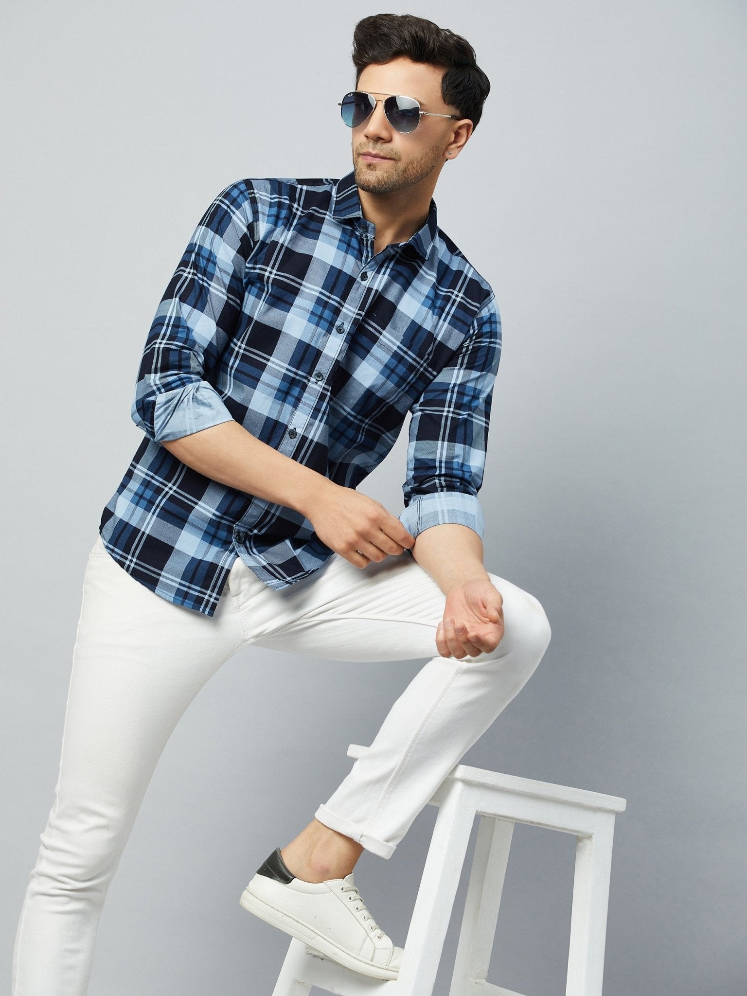 Men Slim Fit Vertical Striped Spread Collar Casual Shirt