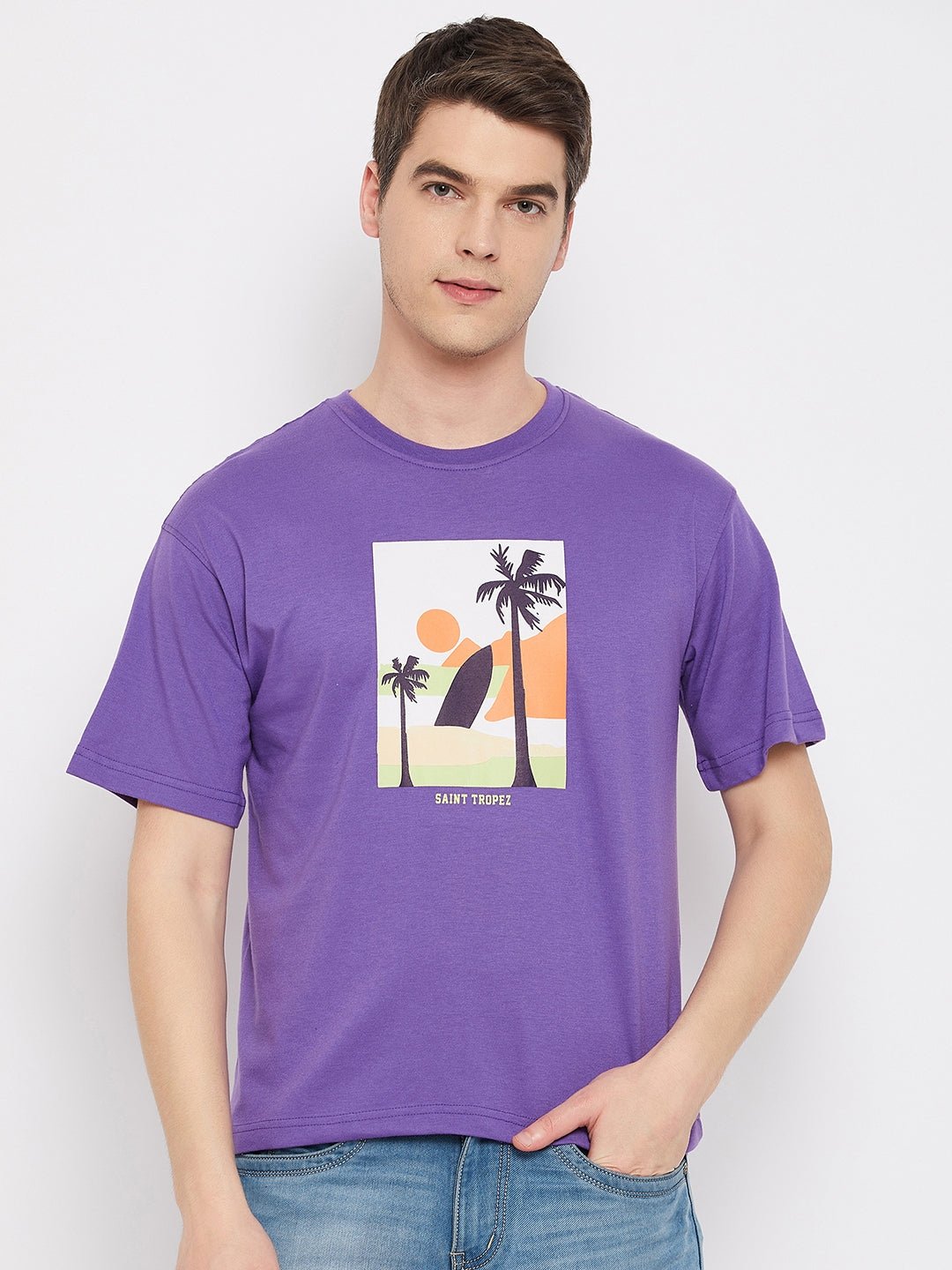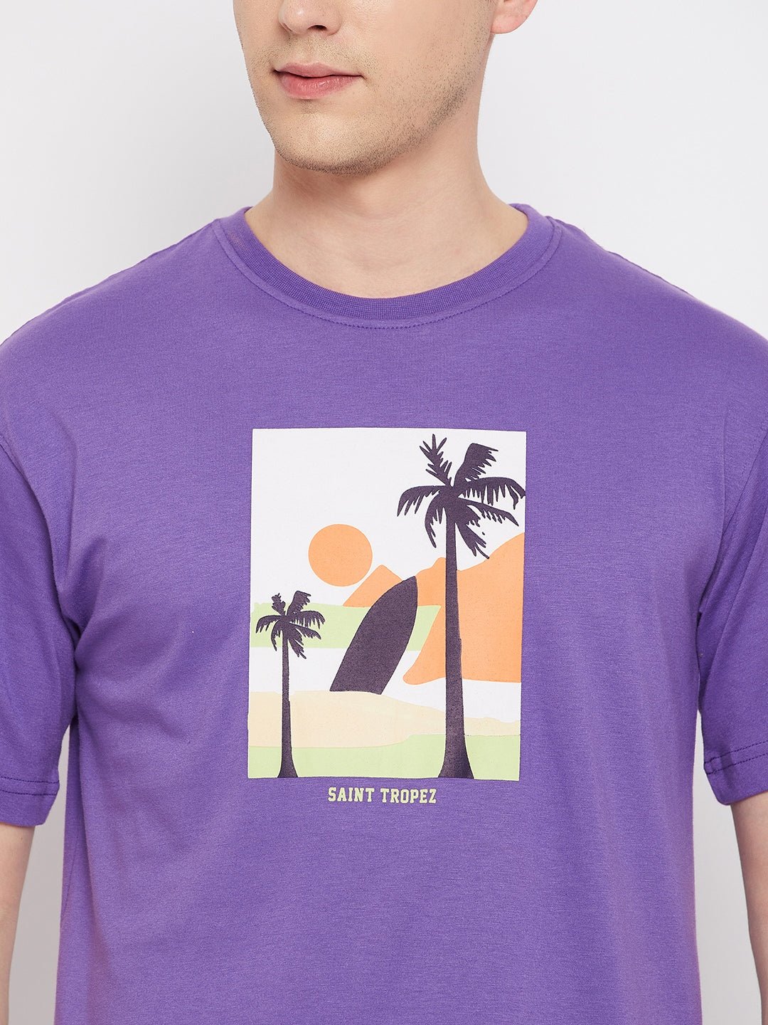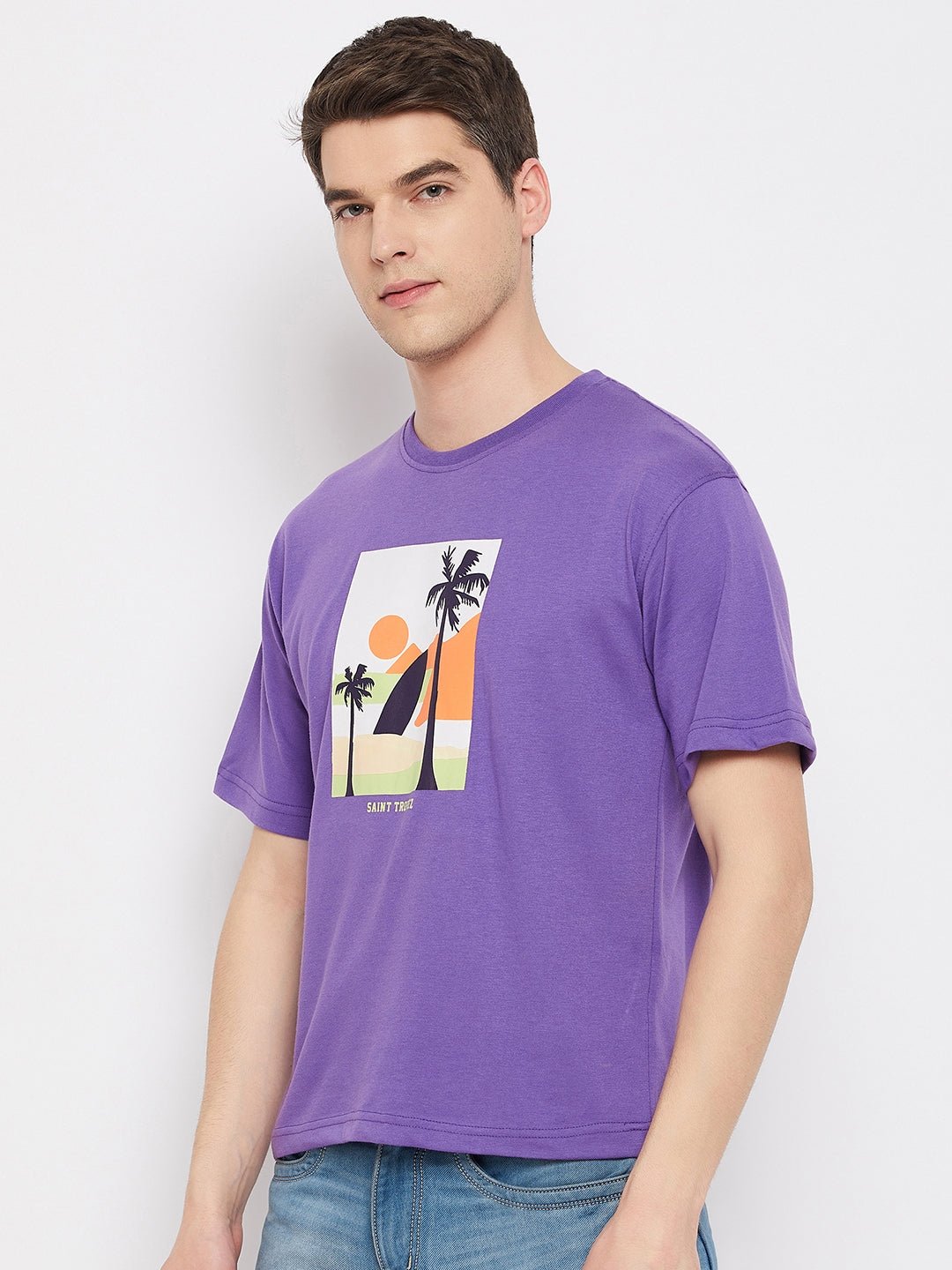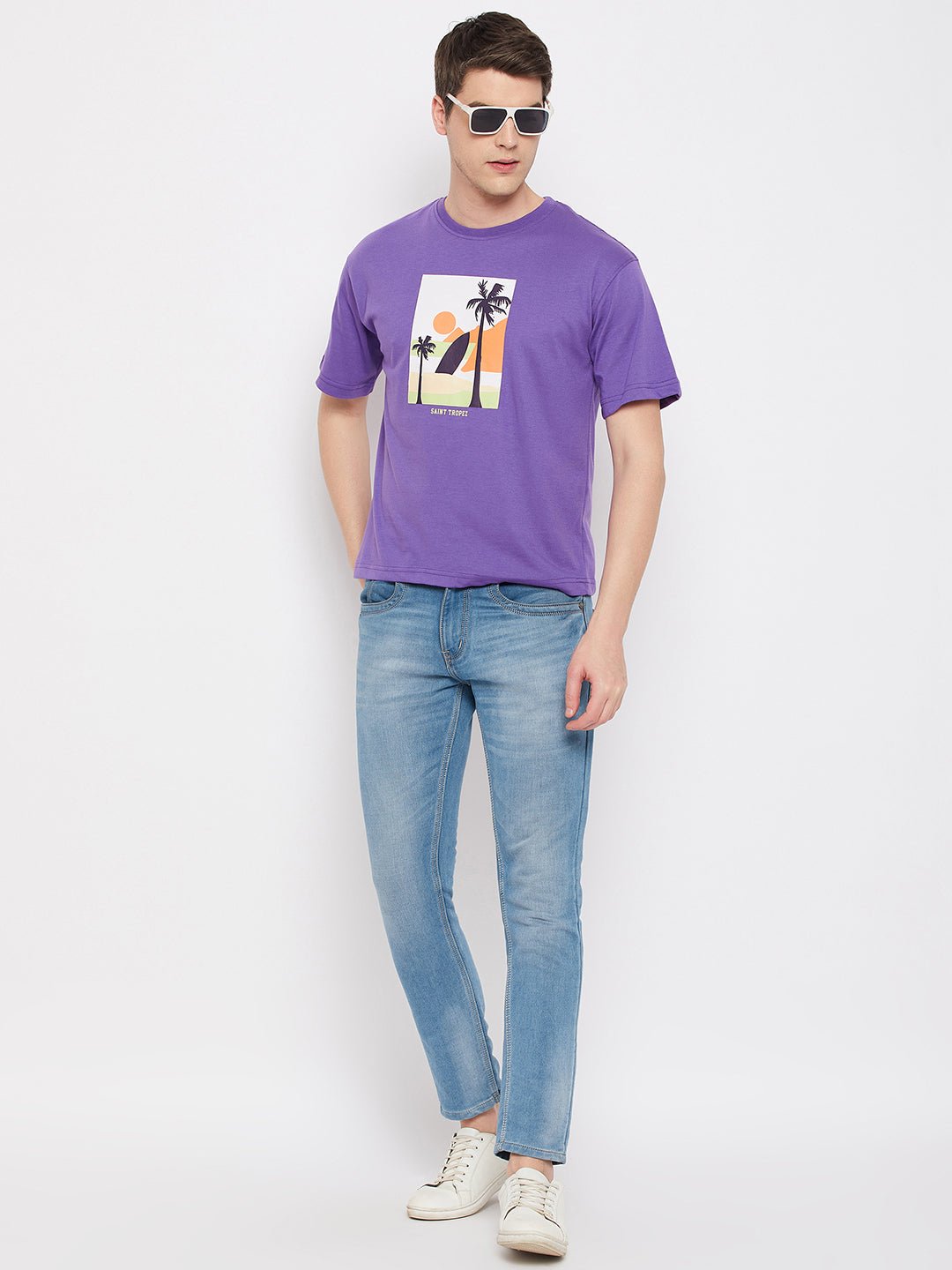 Men Dyed Light Pink Round Neck Slim Fit T Shirt