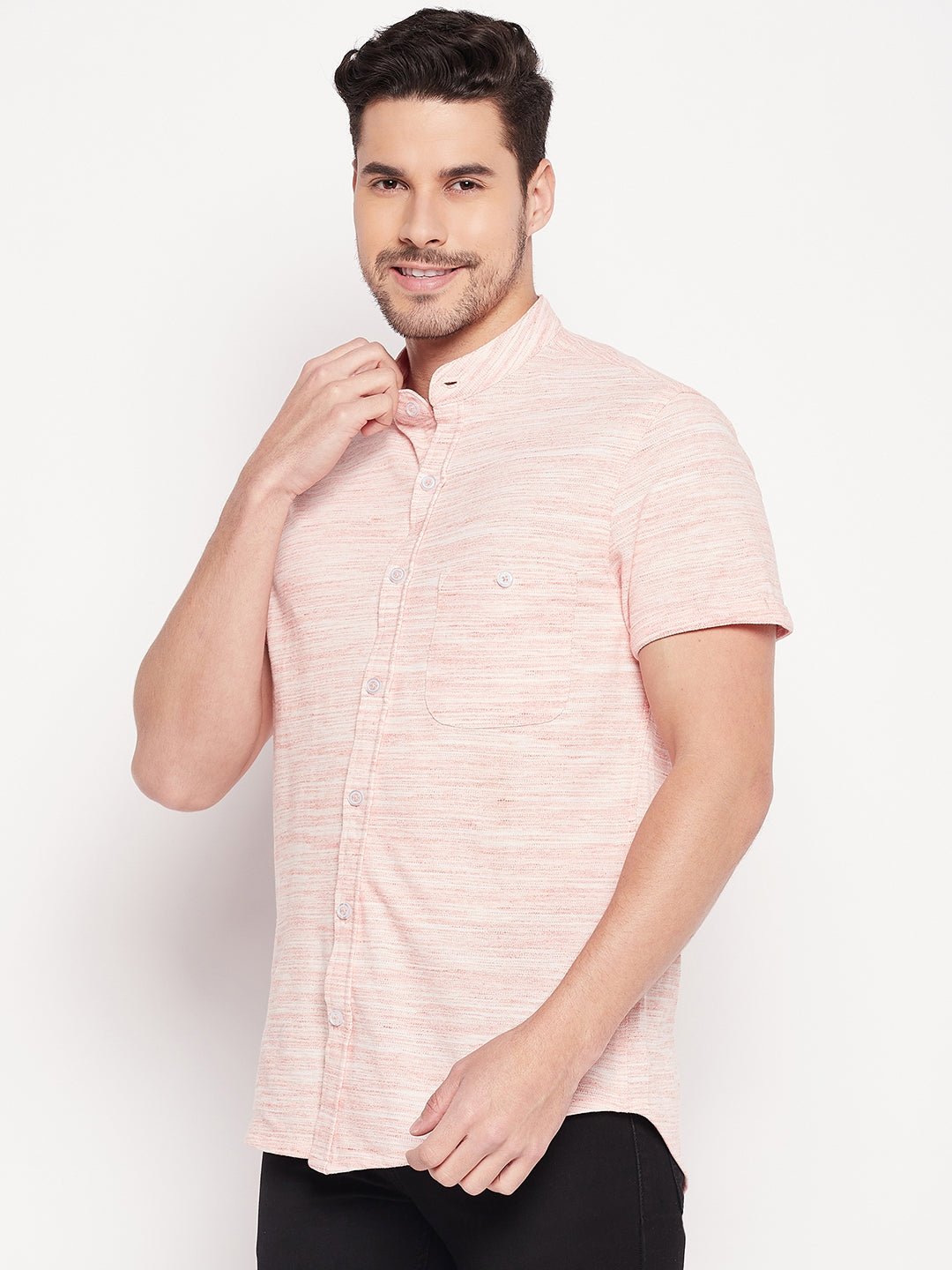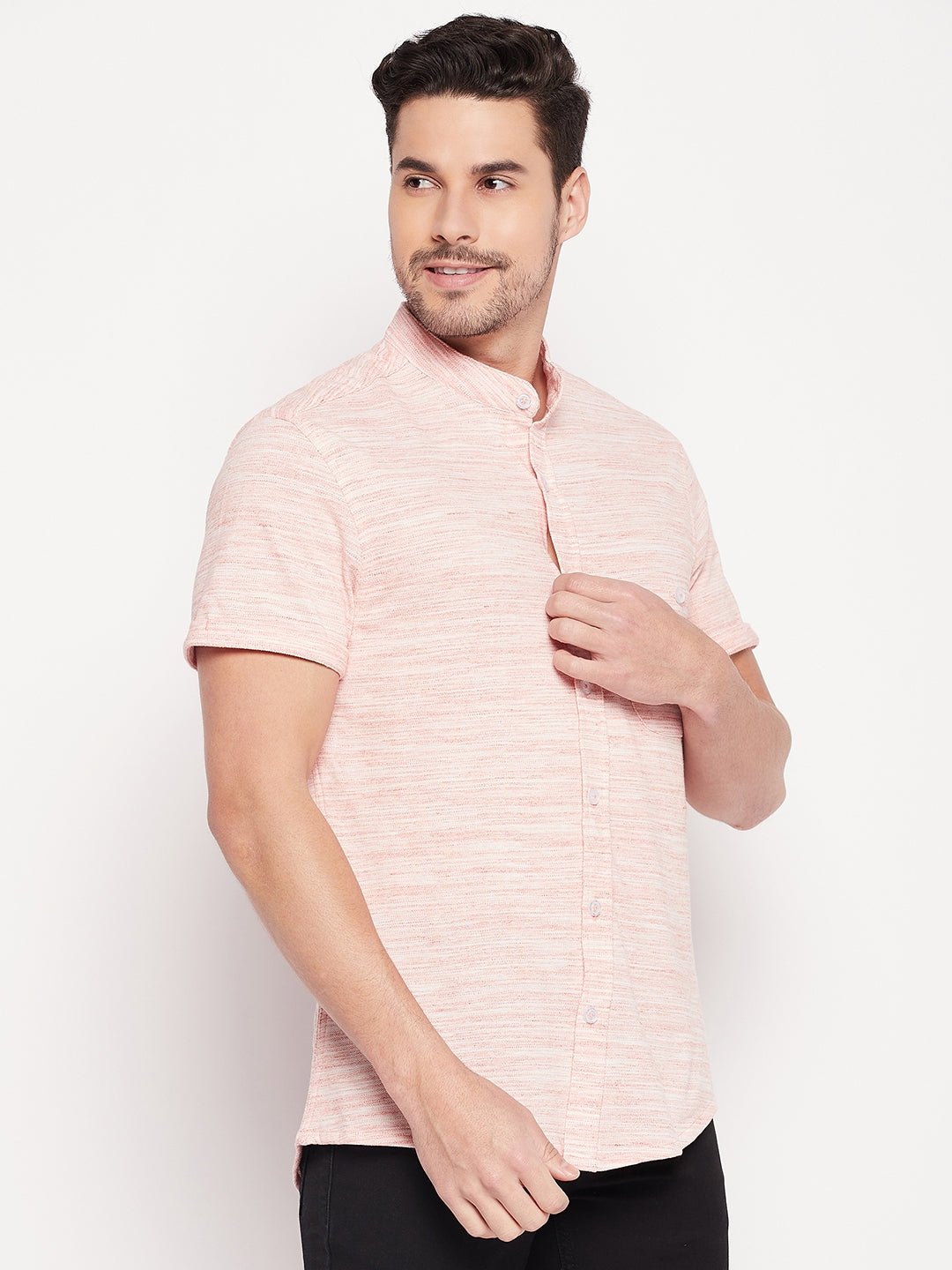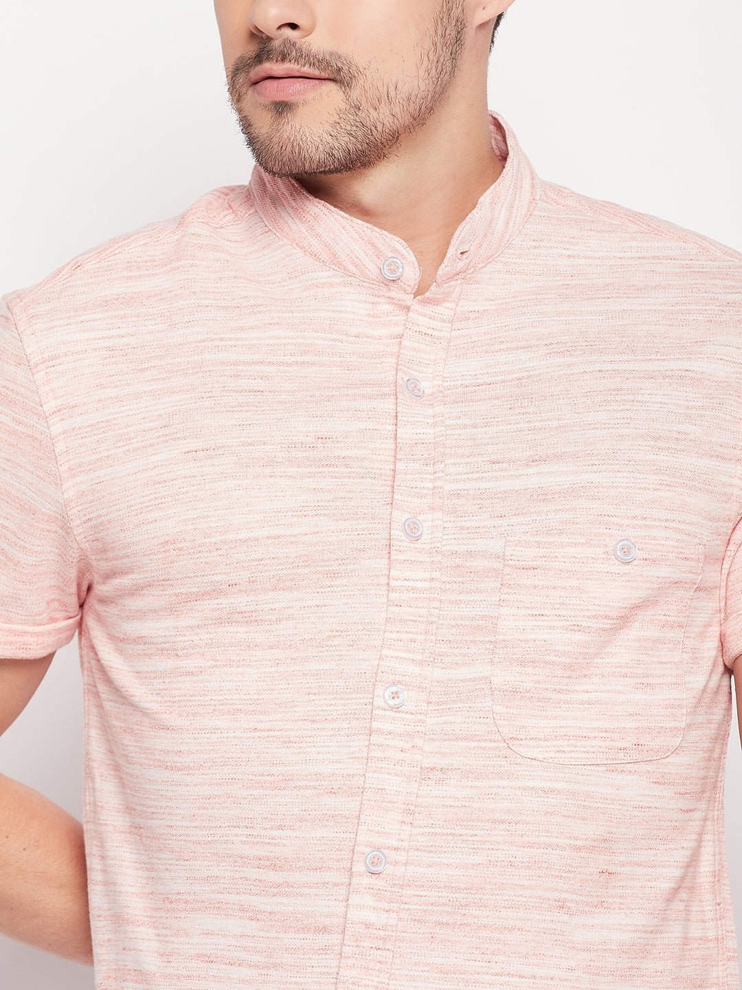 Basic Mandarin Collar Peach Shirt 1107