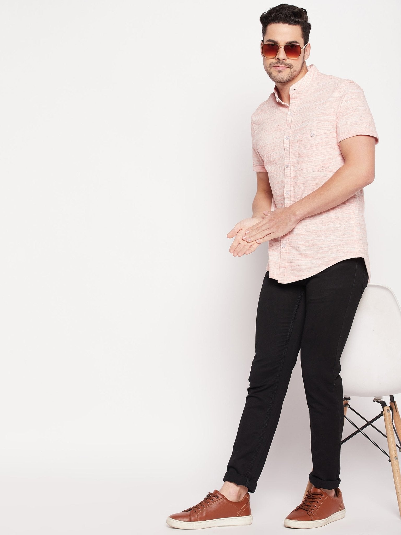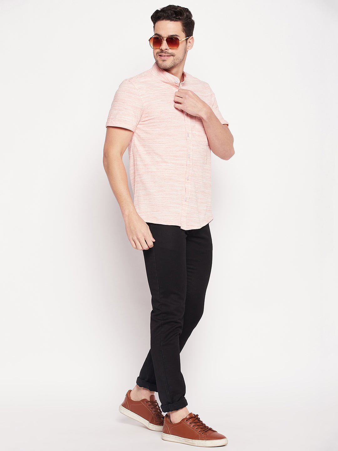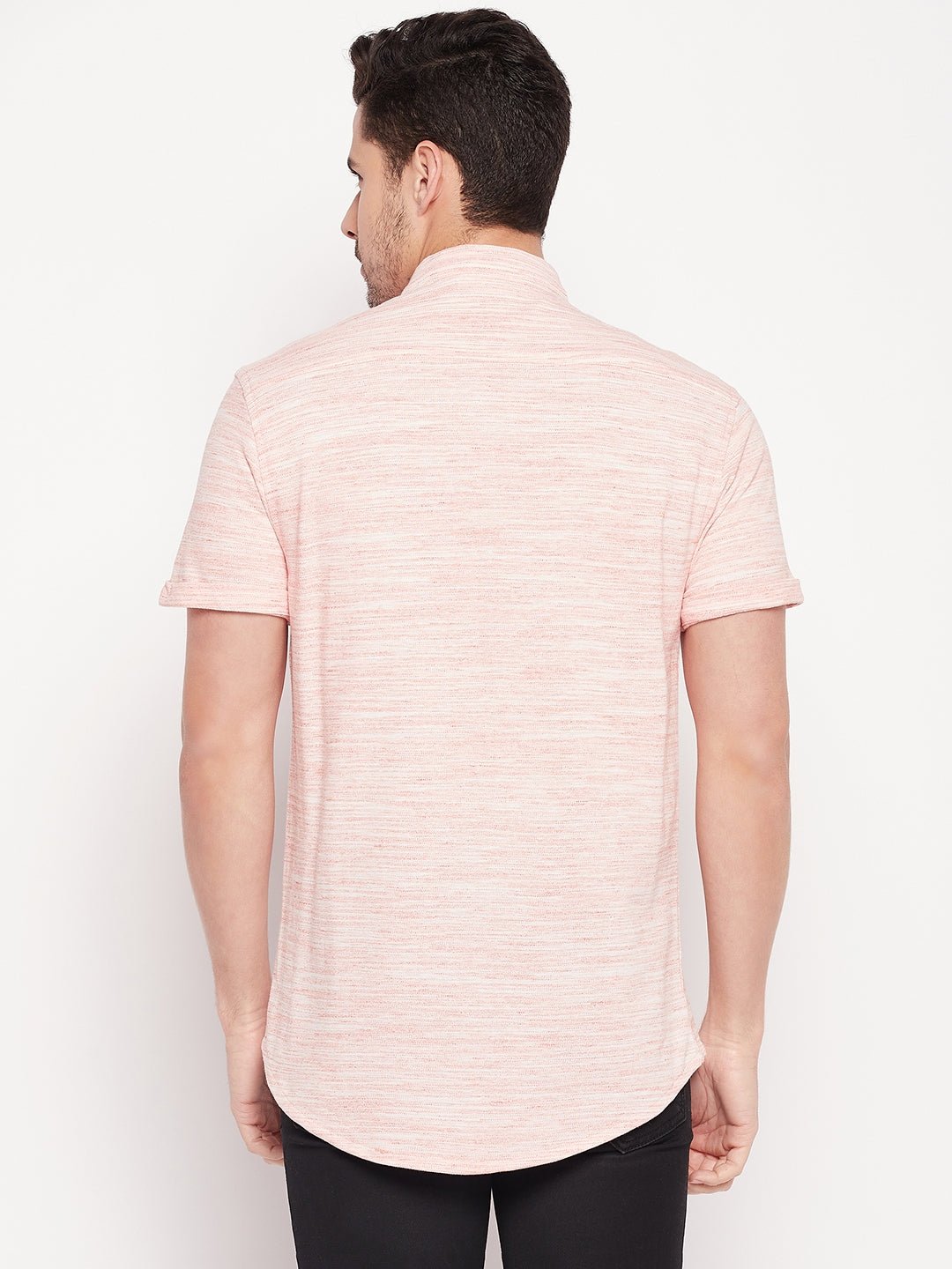 Basic Mandarin Collar Peach Shirt 1107