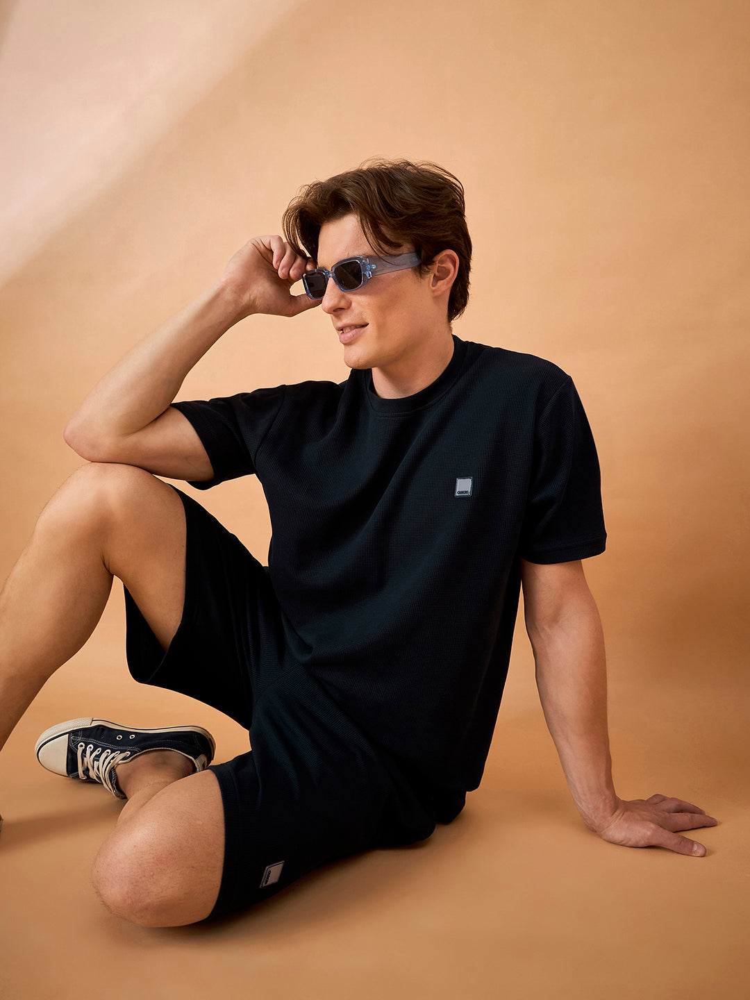 Black Printed Round Neck Plus Size T-Shirt 8824