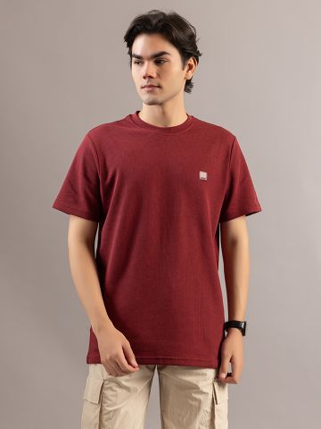 Men Dyed Light Pink Round Neck Slim Fit T Shirt