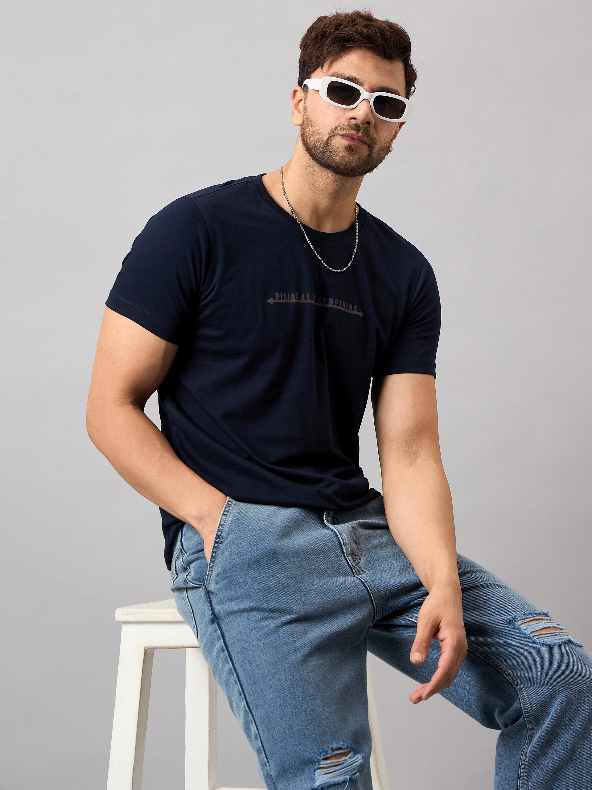 Coffee Brown Printed Round Neck T-Shirt 3836