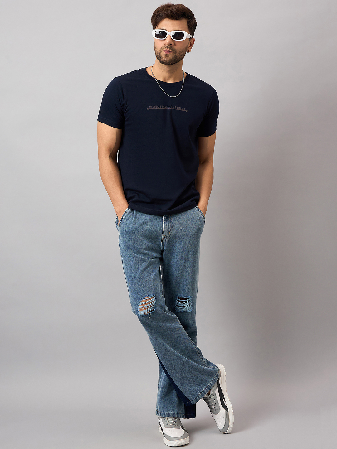 Men Solid Mocha Mouse Round Neck Oversized T Shirt
