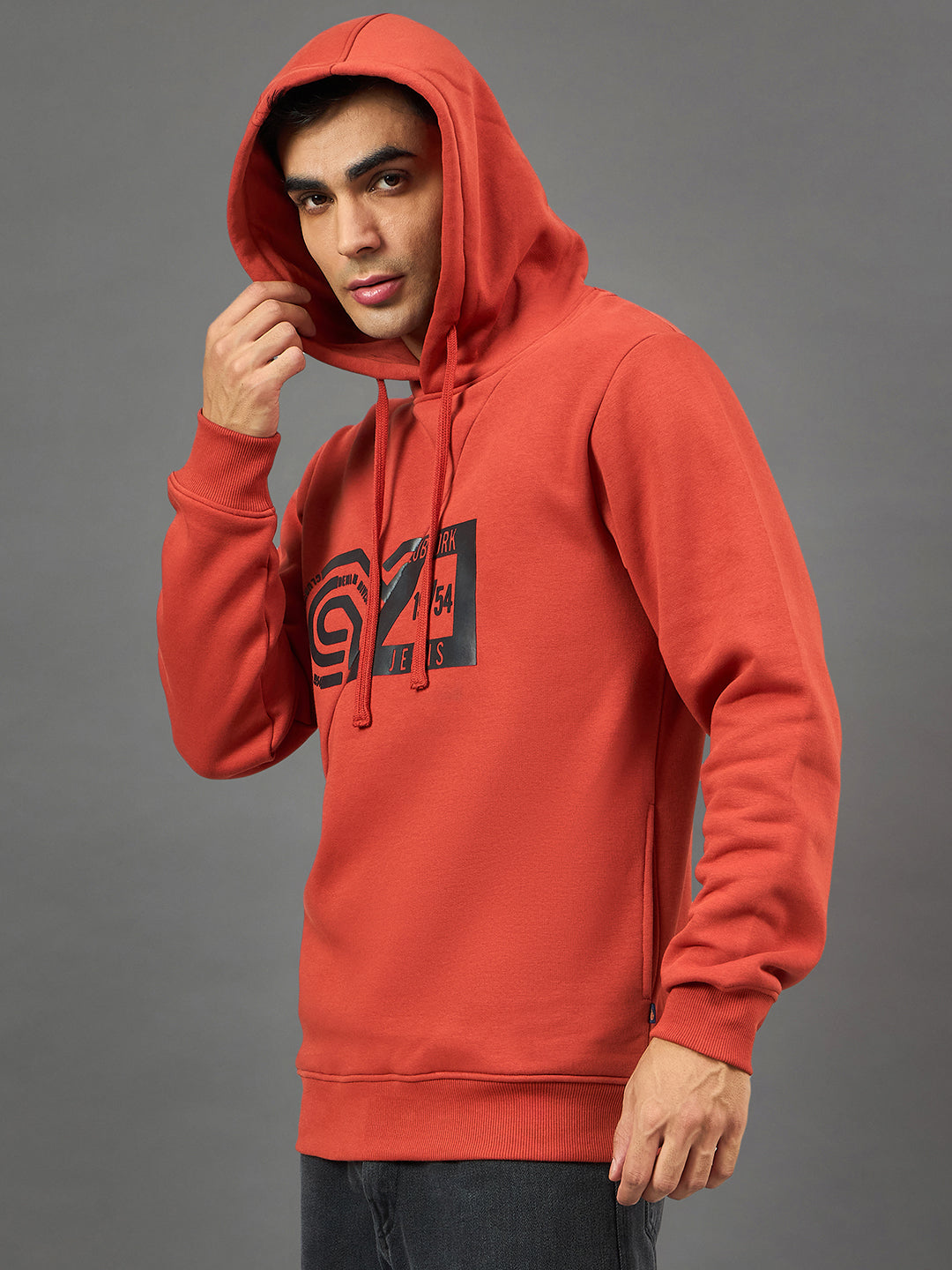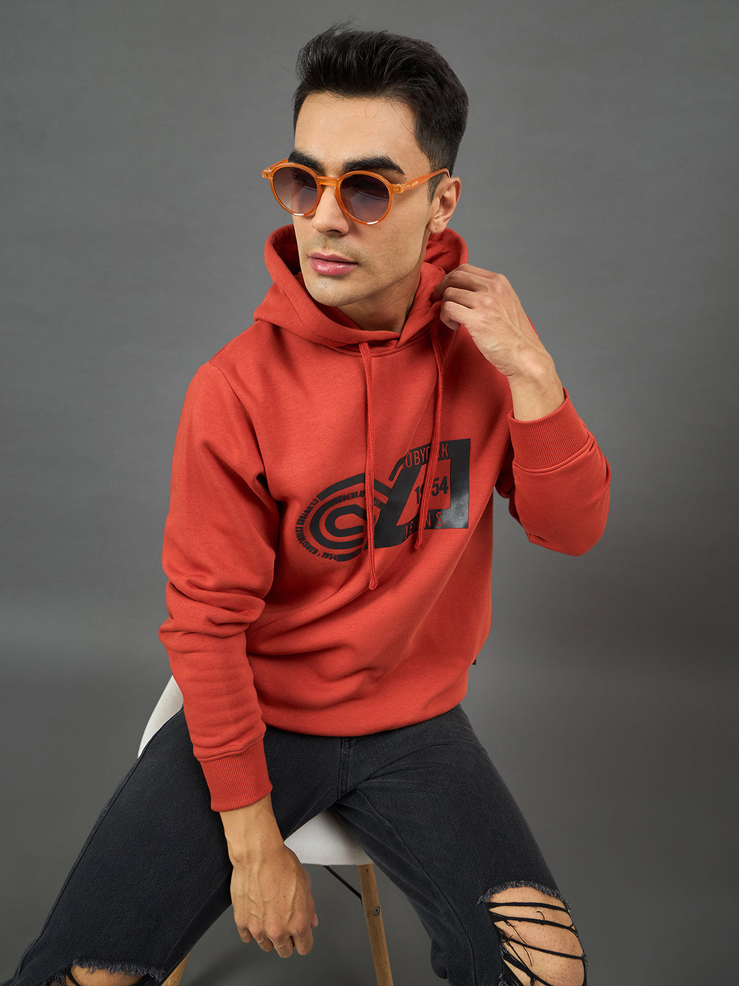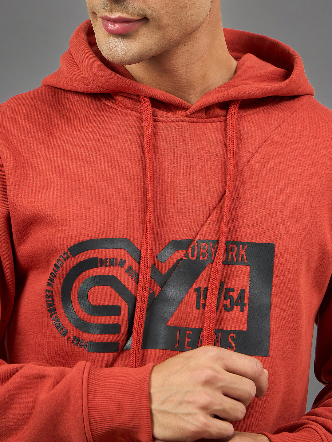 Blue Printed Full Sleeve Hooded Plus Size Sweatshirt 3609