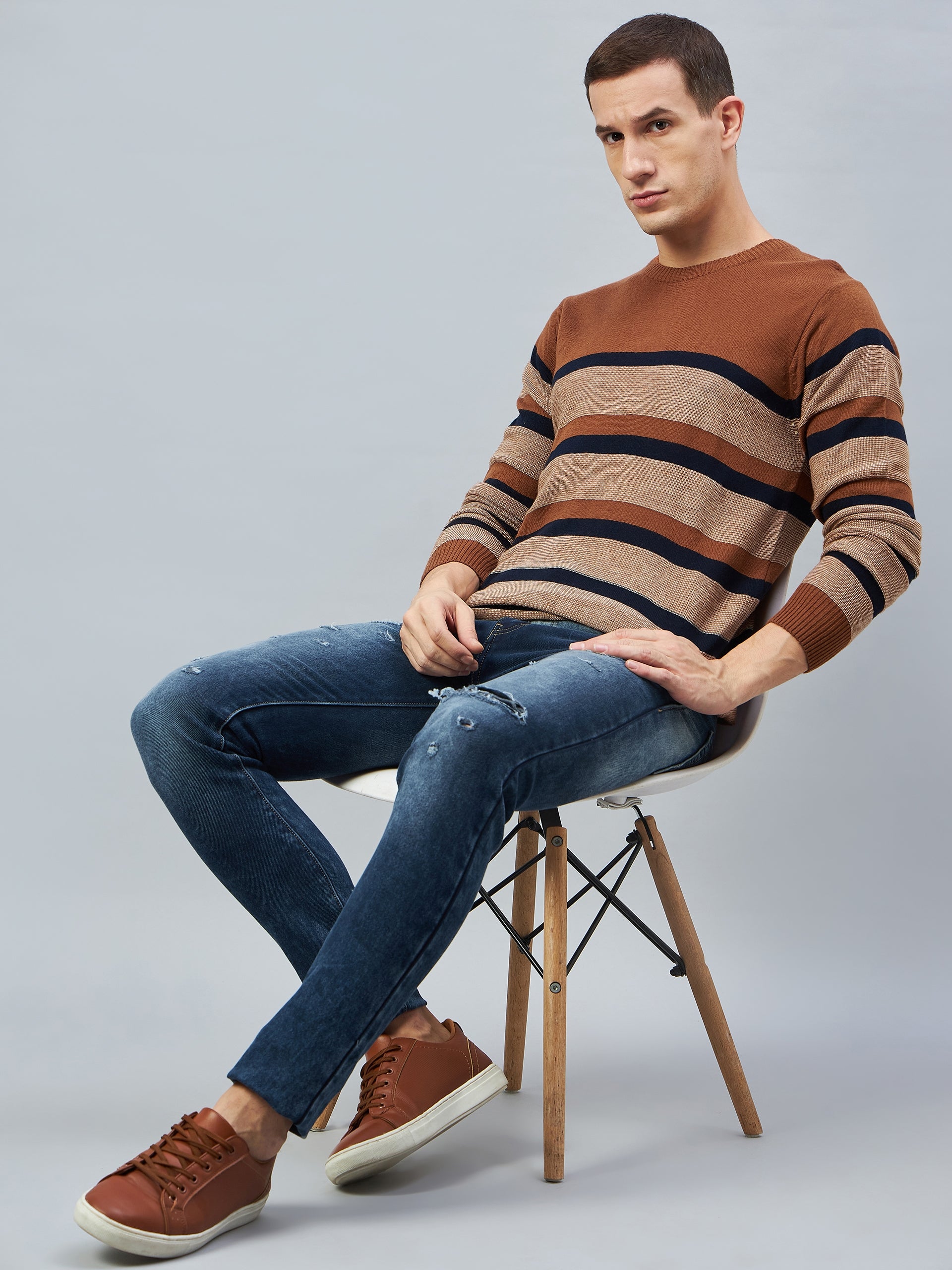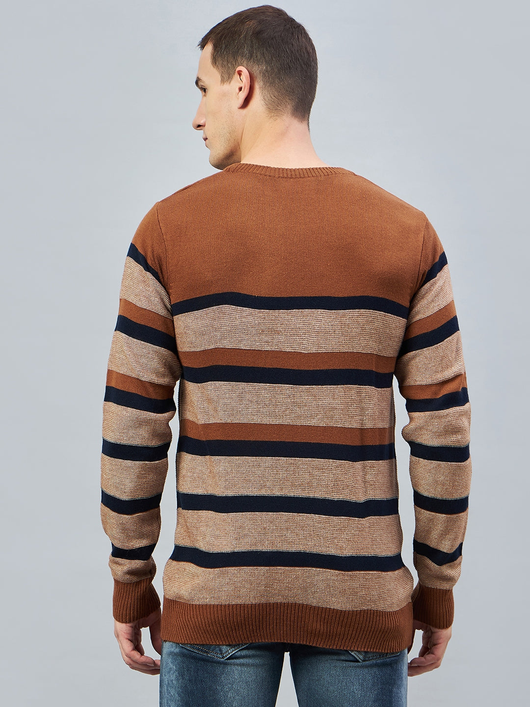 Beige Full Sleeve Solid Round Neck Sweater 3826