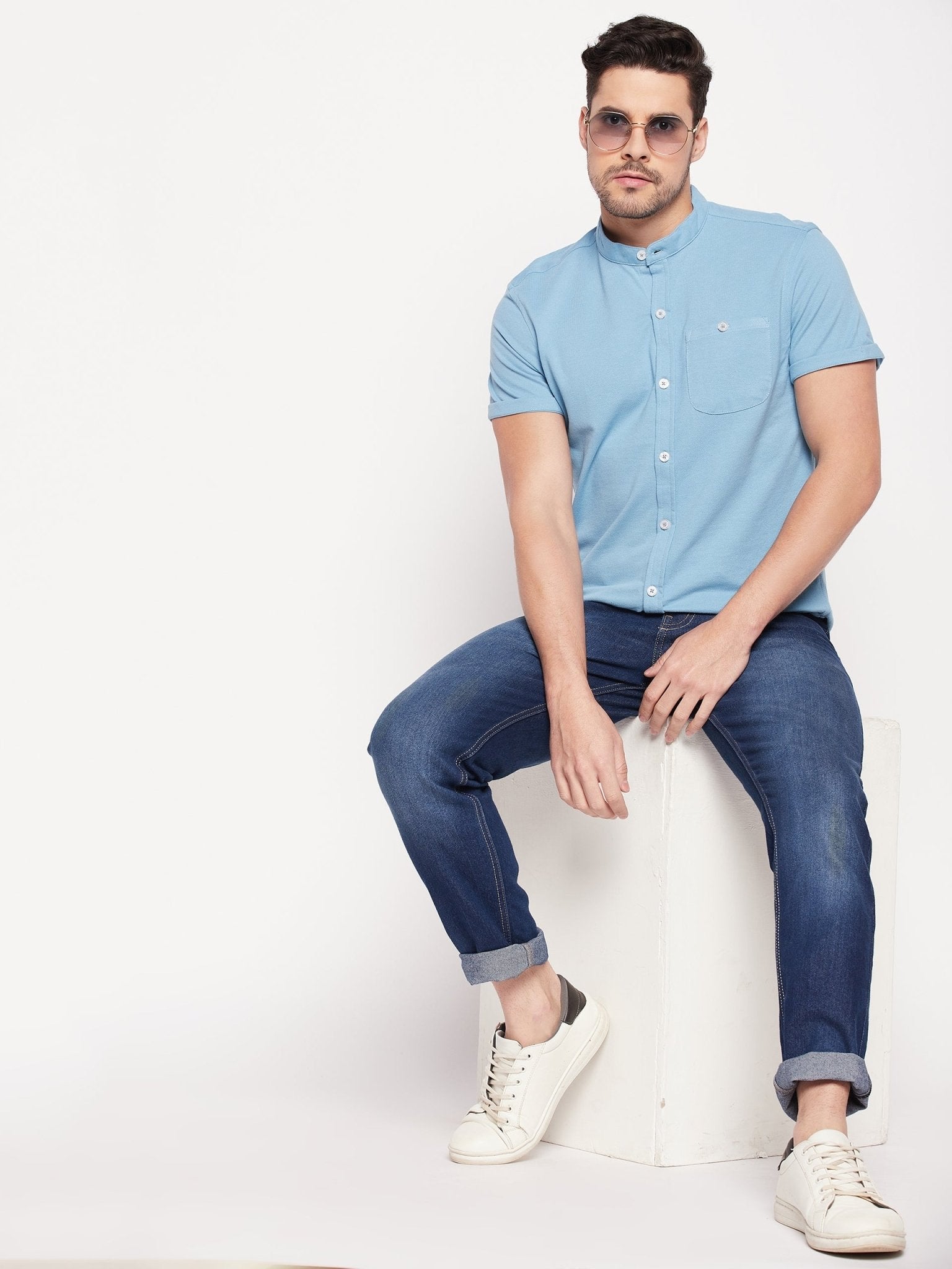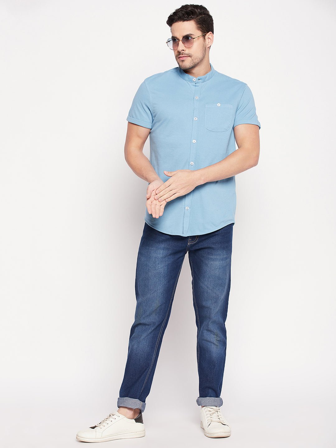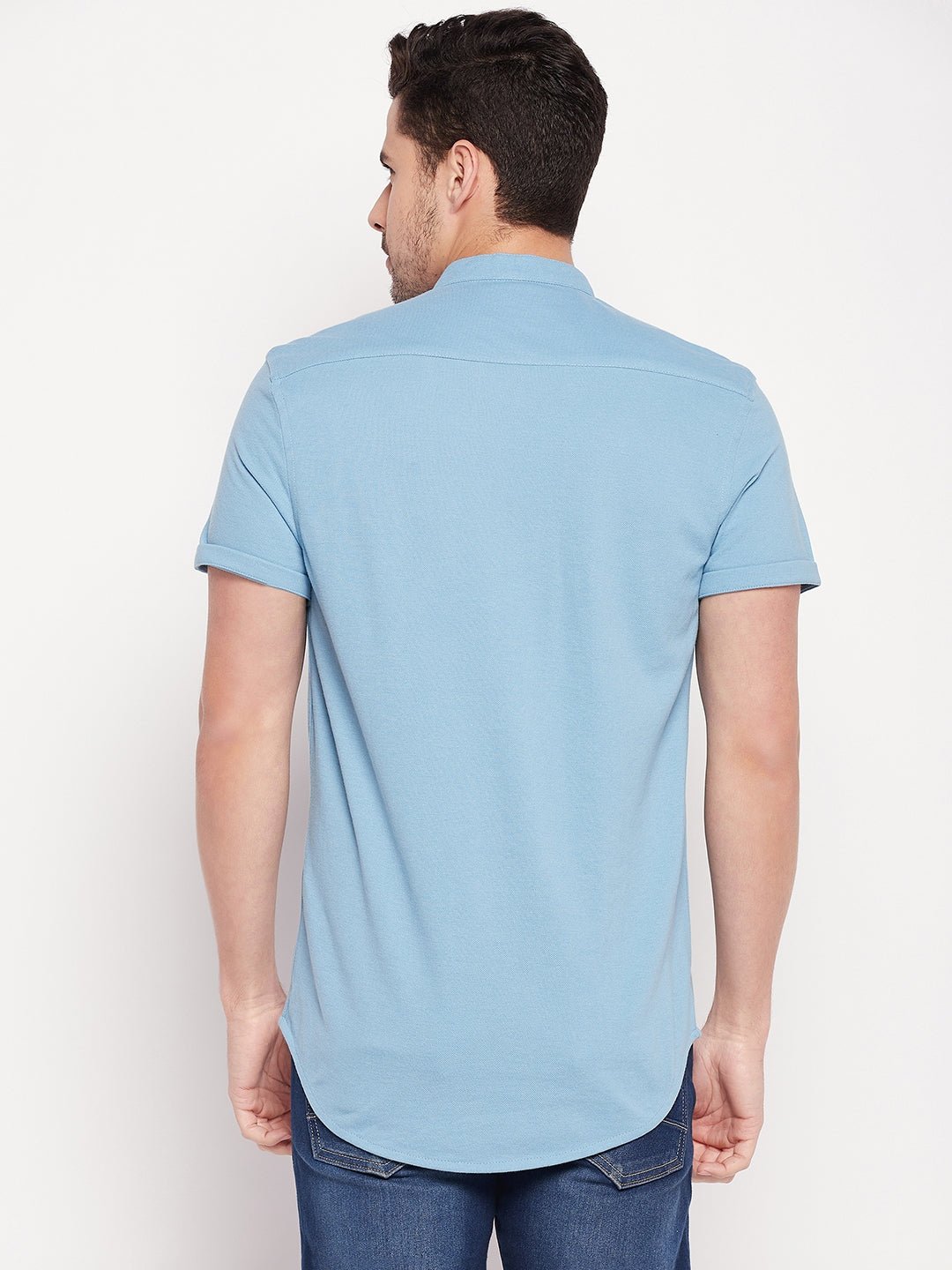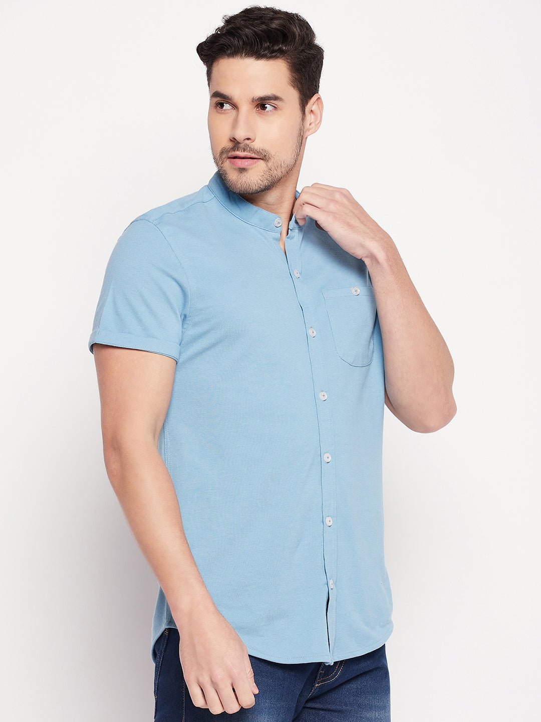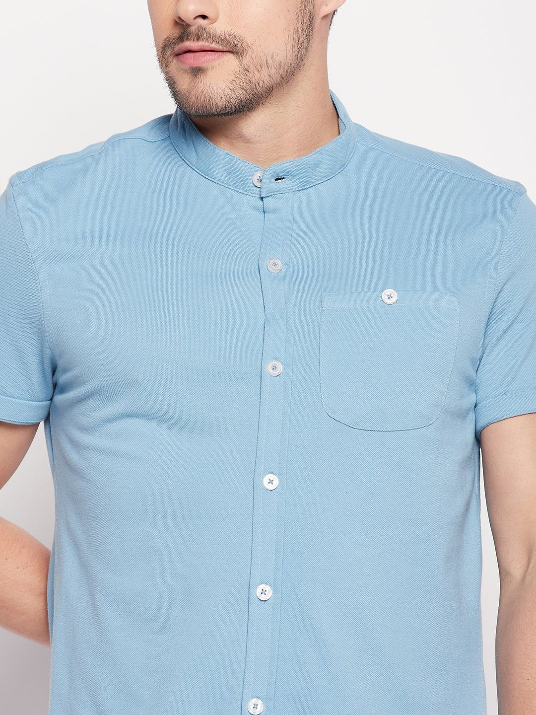 Men Slim Fit Light Blue Collar Casual Shirt