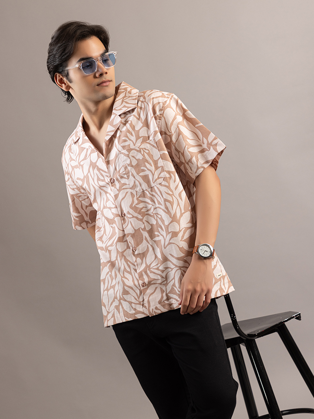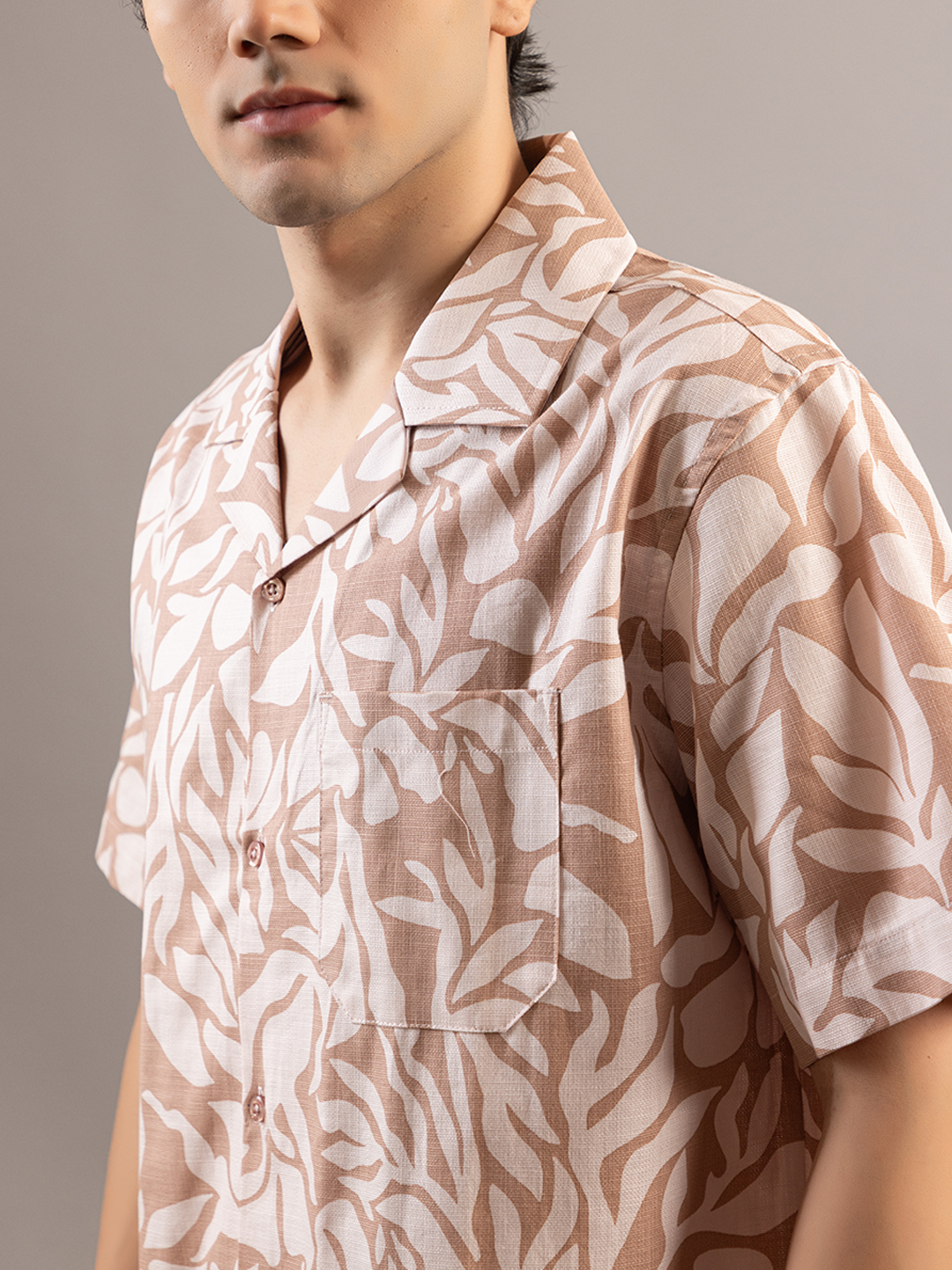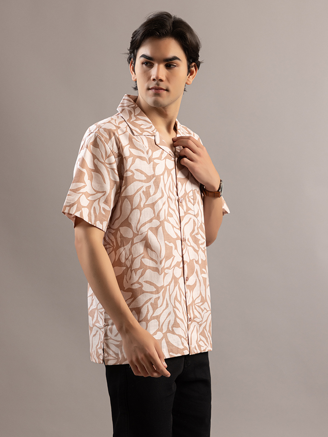 Men Floral Printed Peach Spread Collar Casual Shirt
