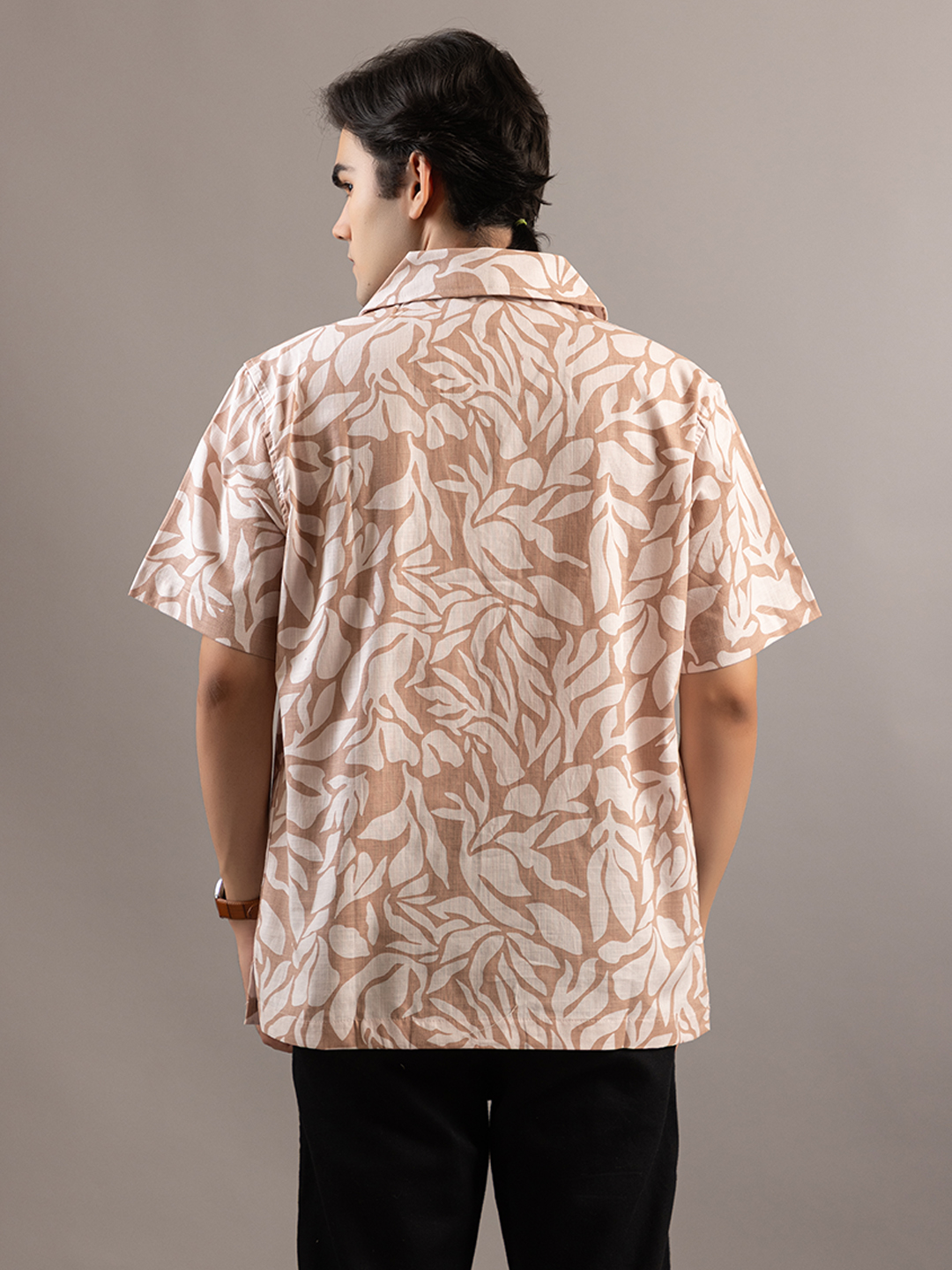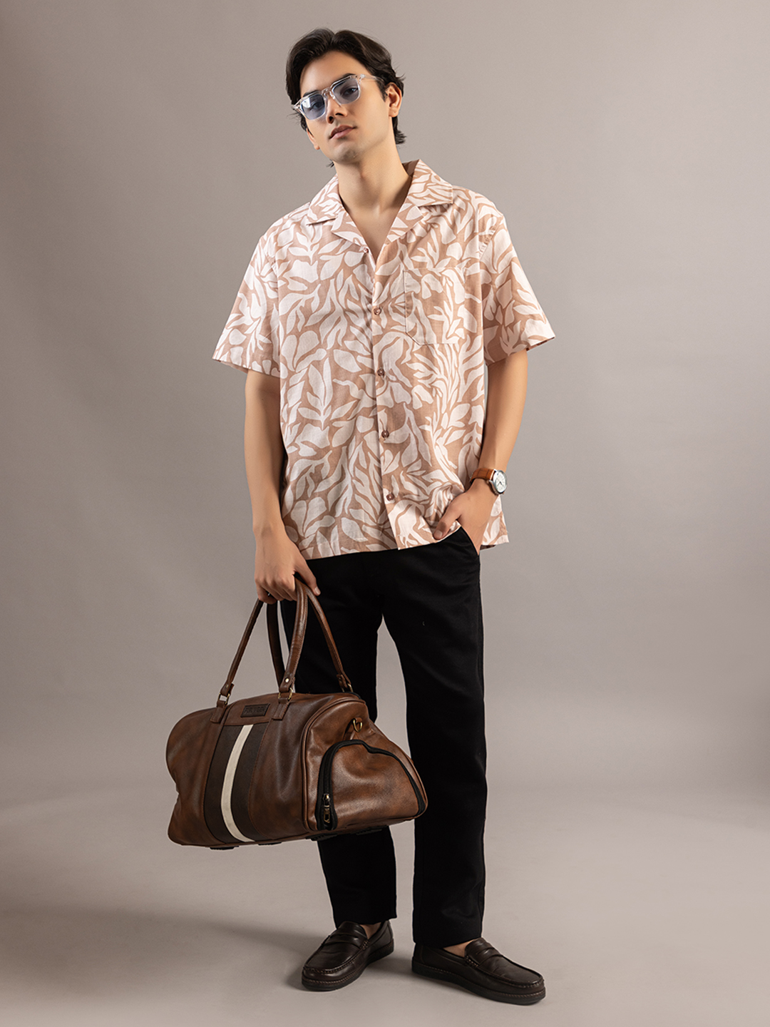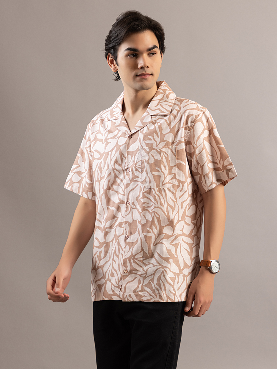 Men Floral Printed Peach Spread Collar Casual Shirt