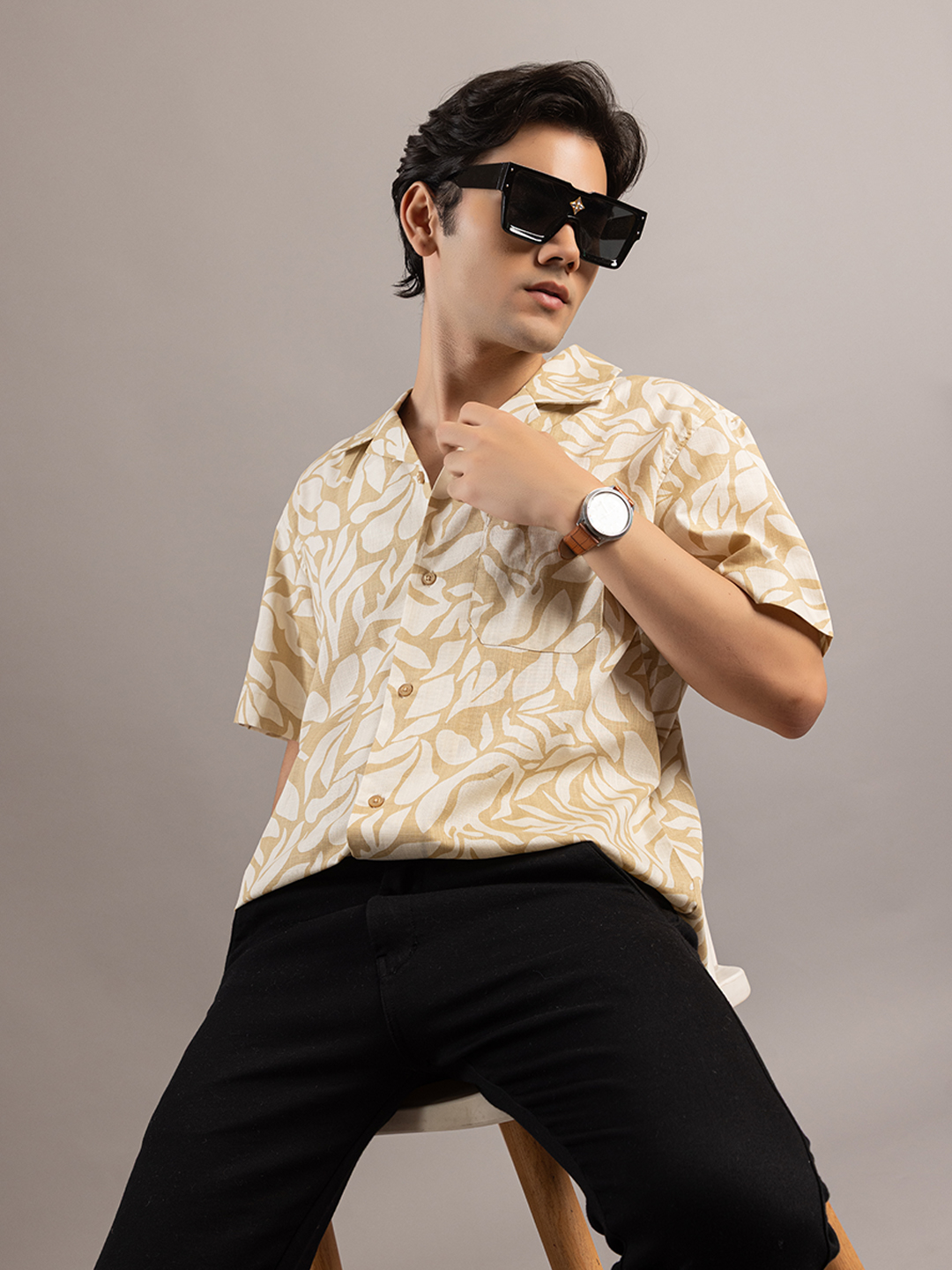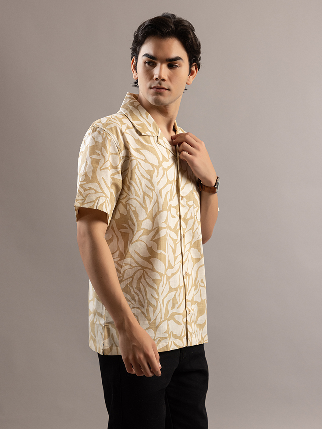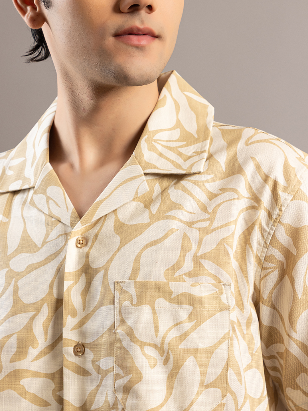 Lemon Yellow Solid Mandarin Collar Shirt 7869