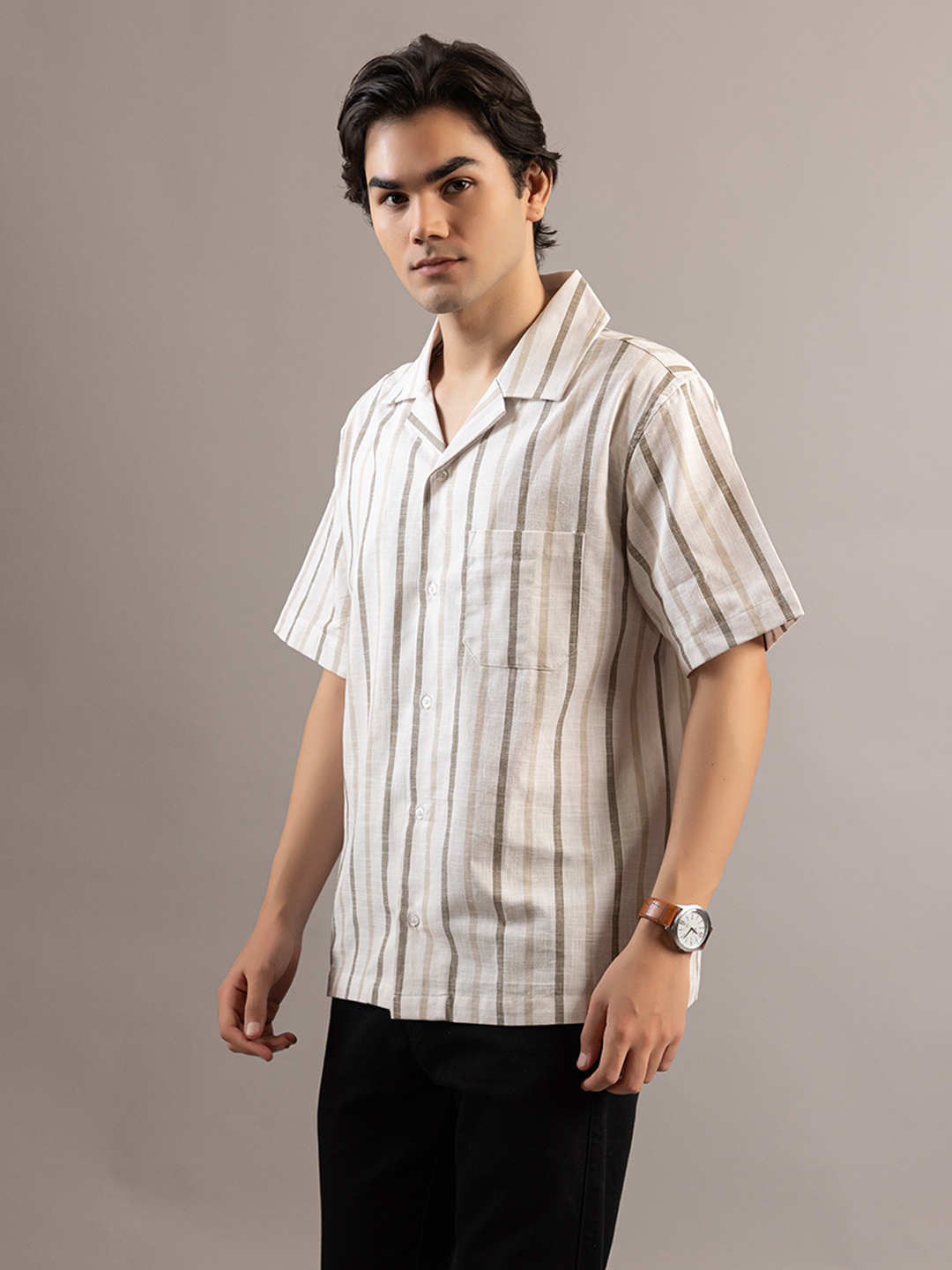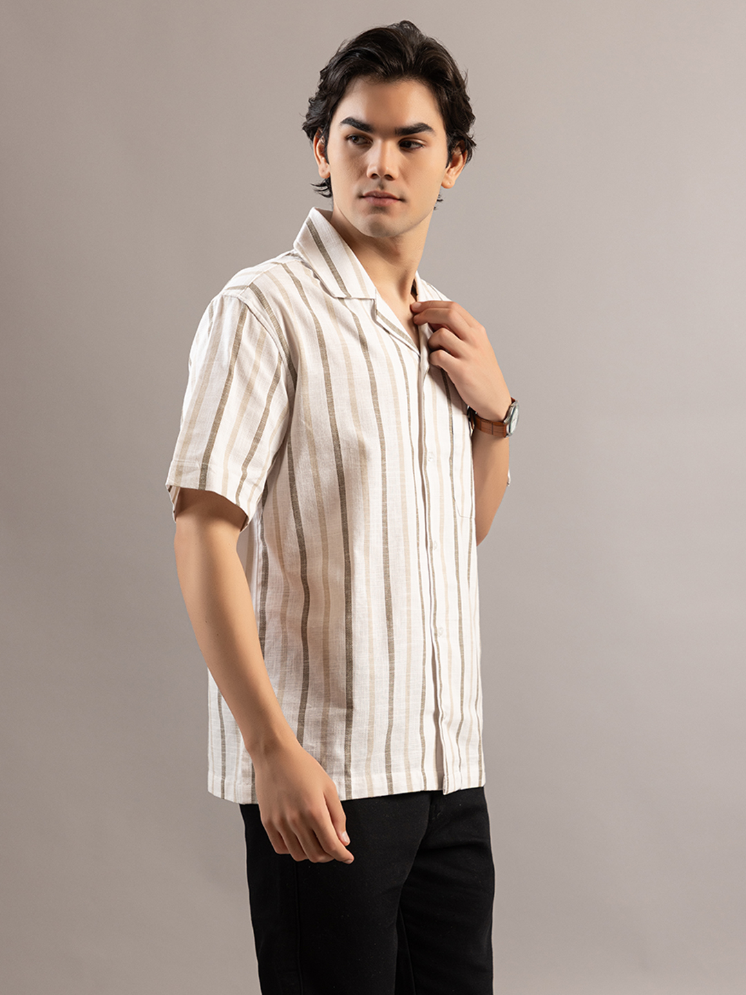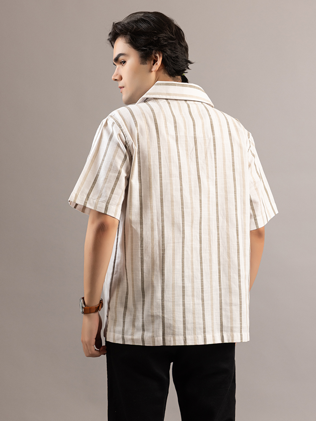 Stylish Striped Off White Brownish Half Sleeve Shirt
