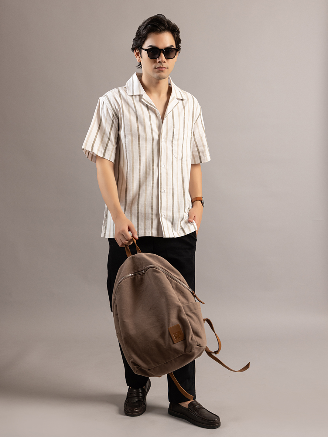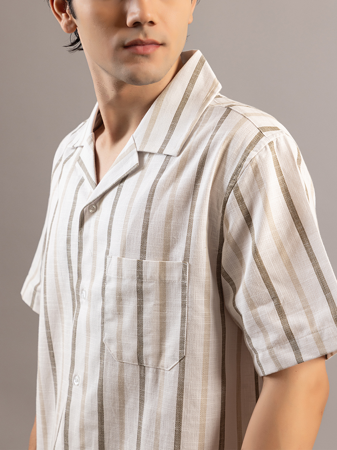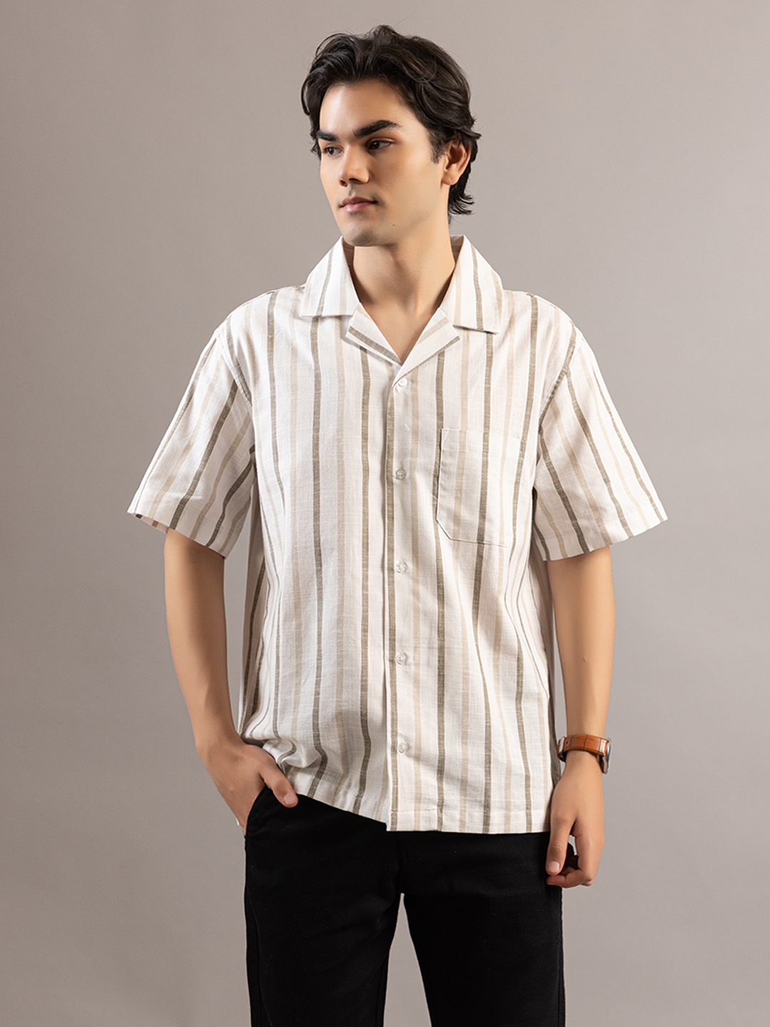 Stylish Striped Off White Brownish Half Sleeve Shirt