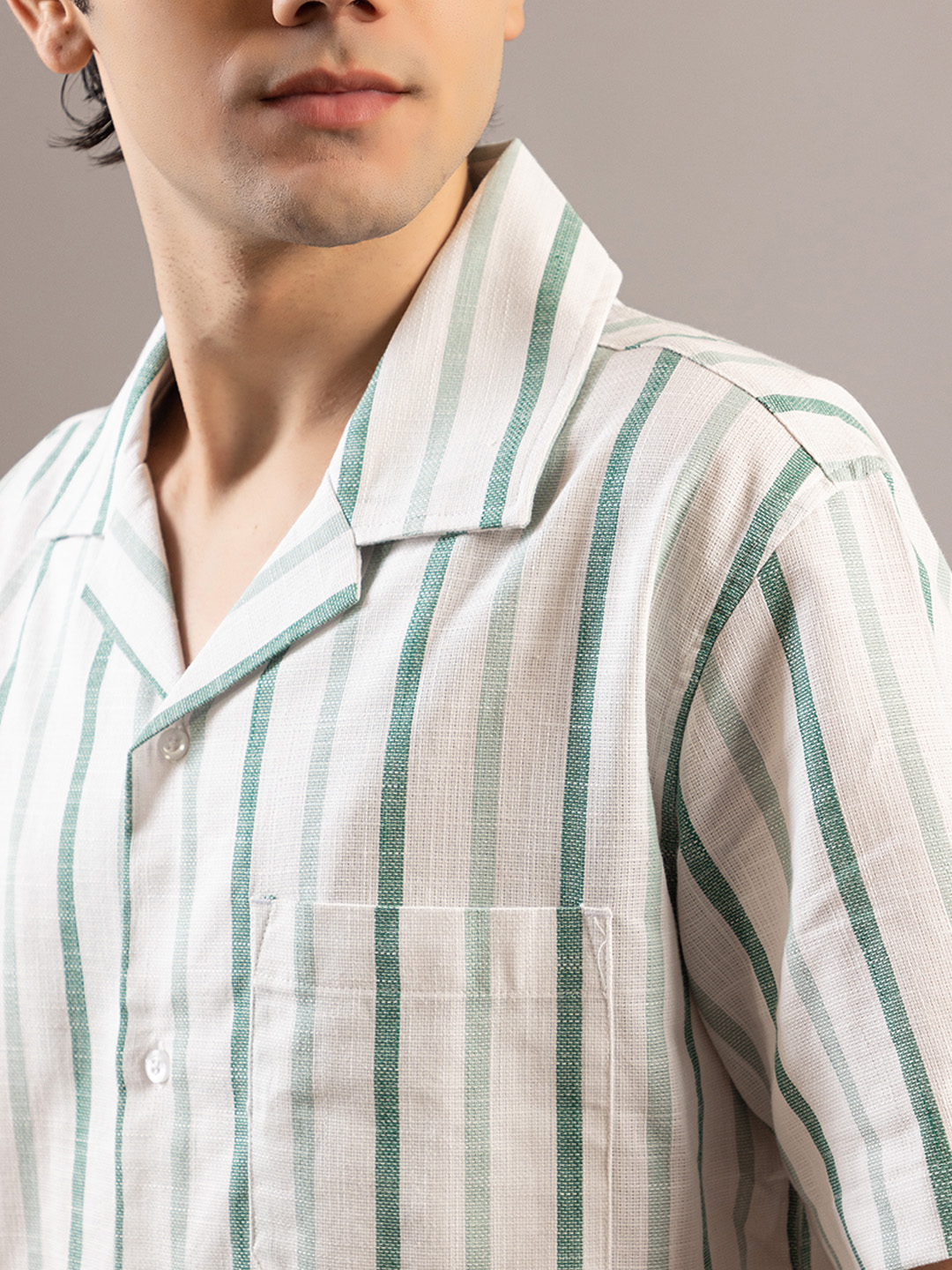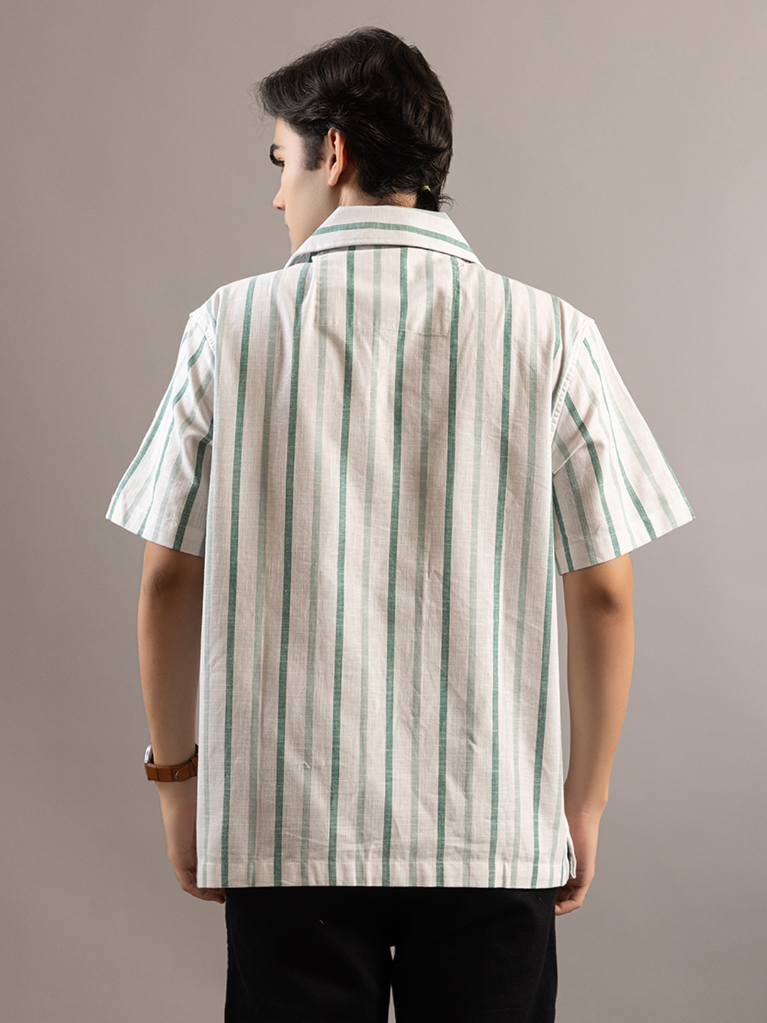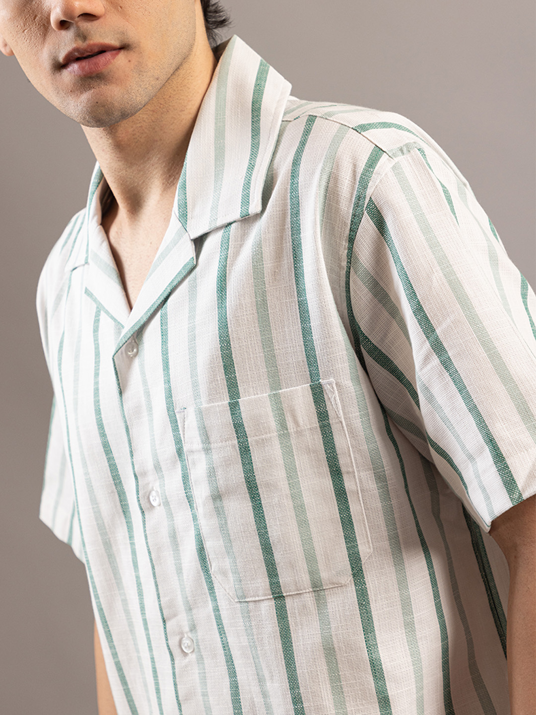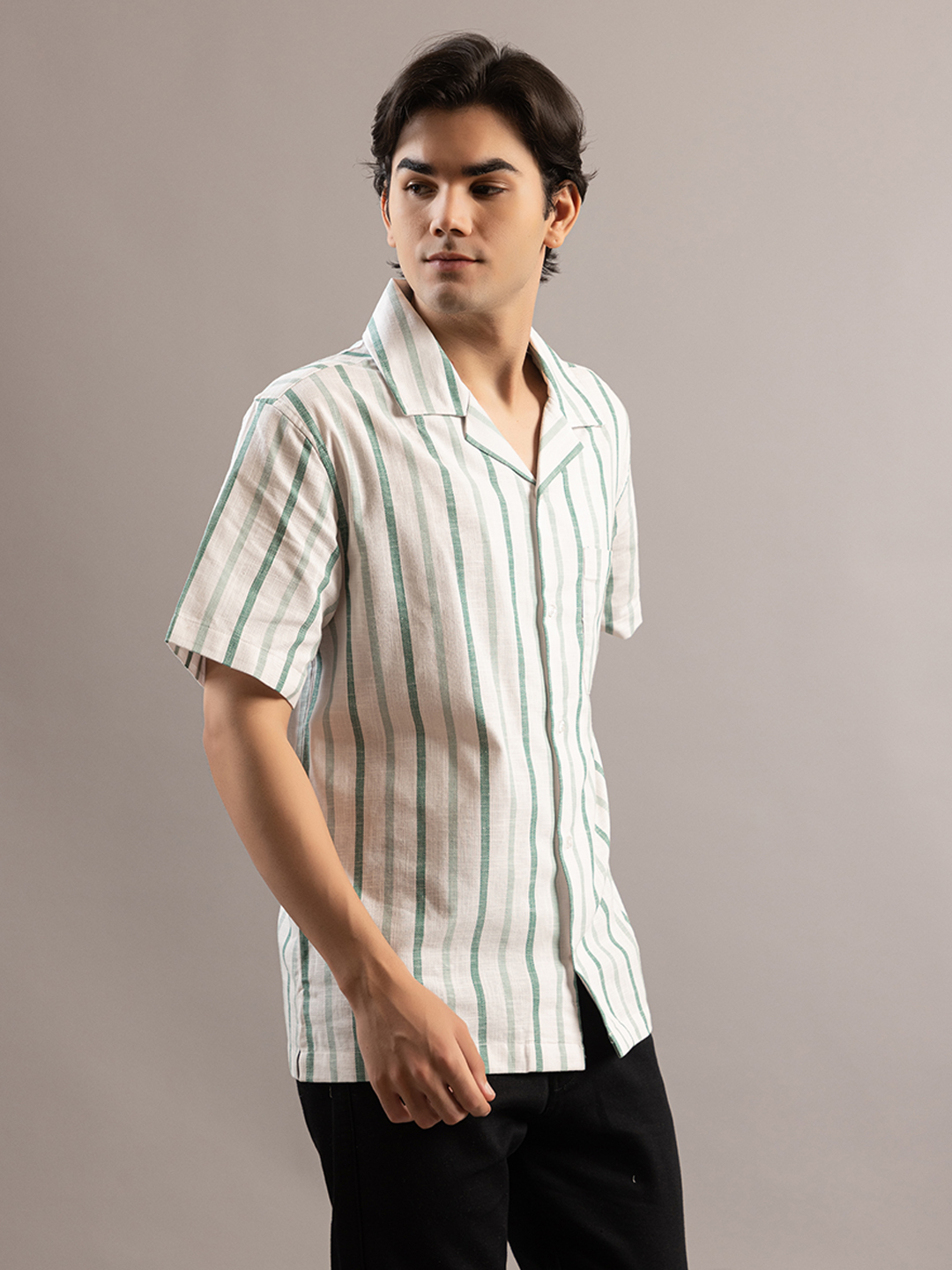 Stylish Striped Off White Greenish Half Sleeve Shirt