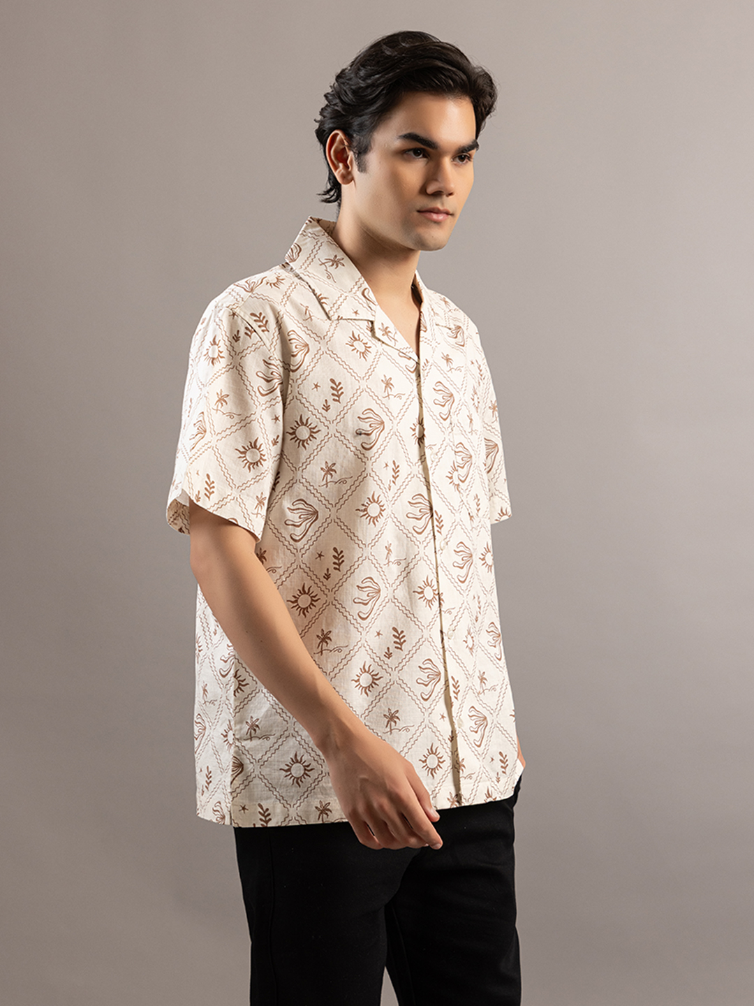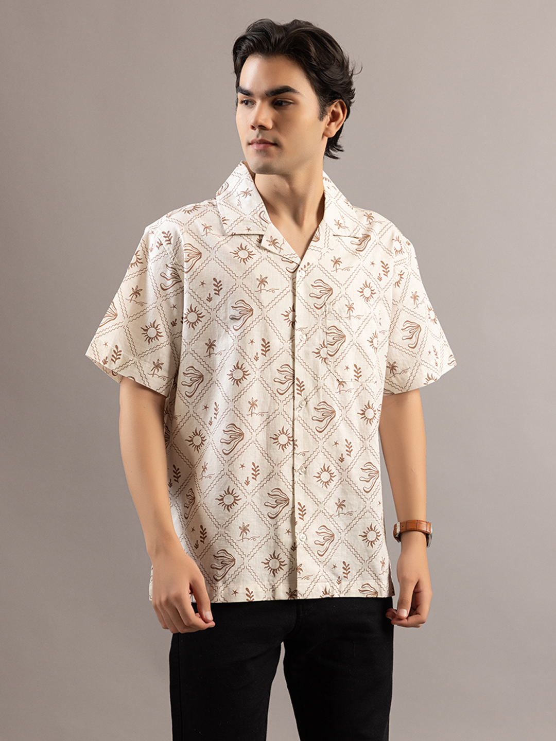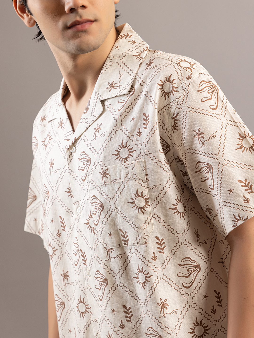 Stylish Sun Mapped Beige Shirt