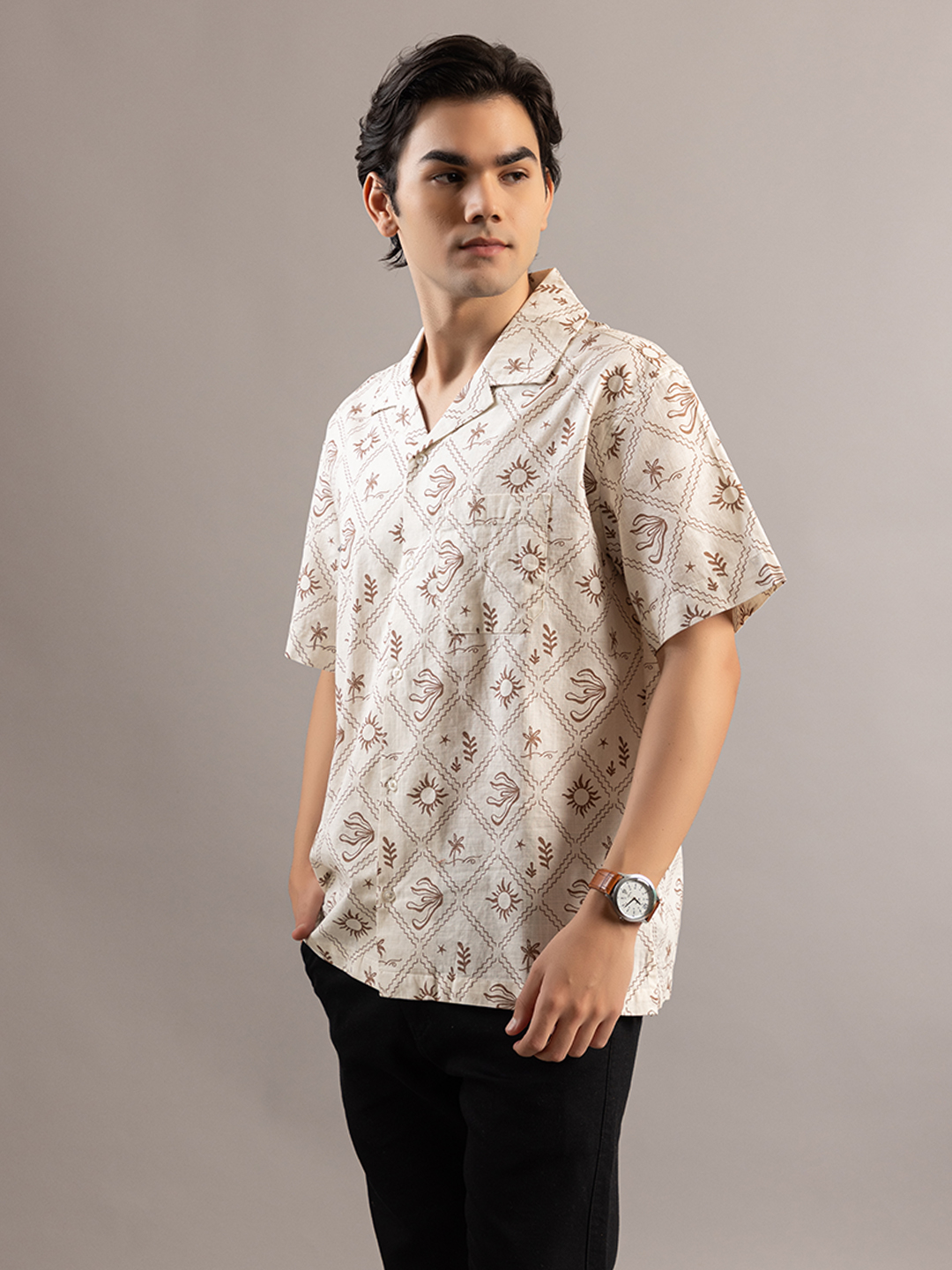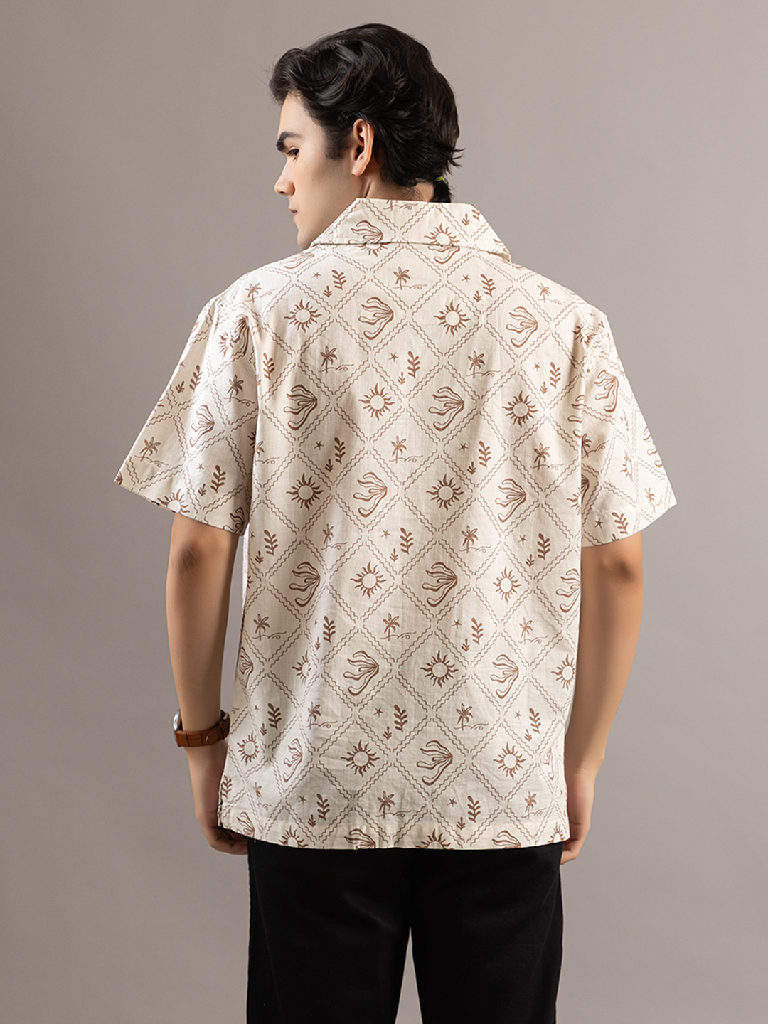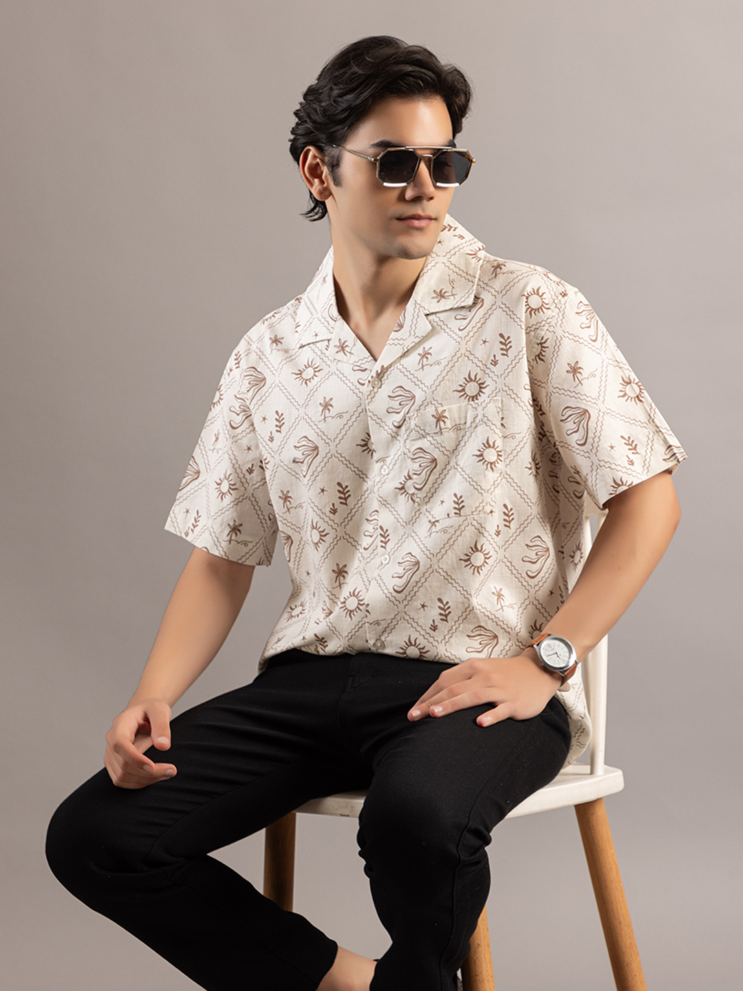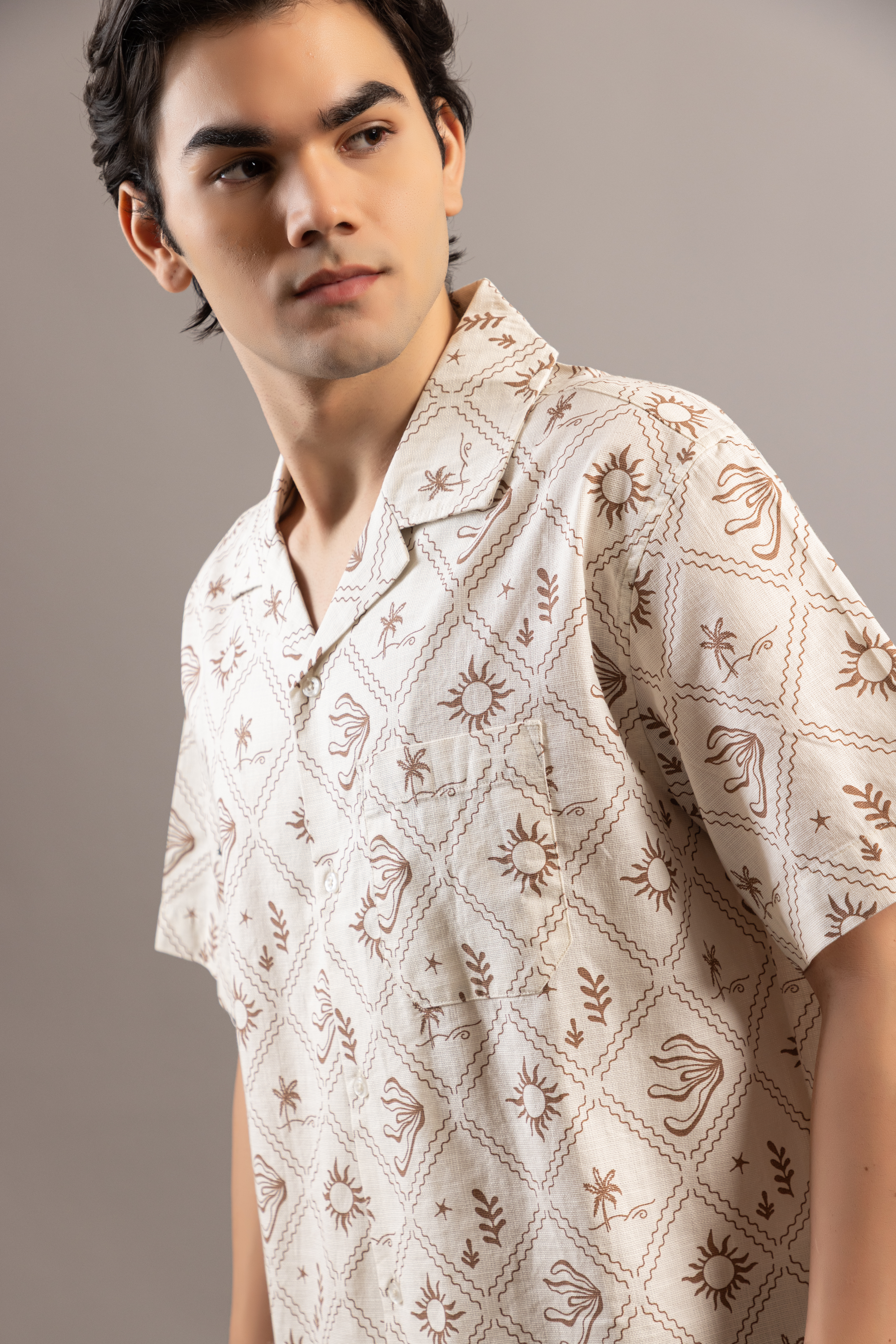 Stylish Sun Mapped Beige Shirt