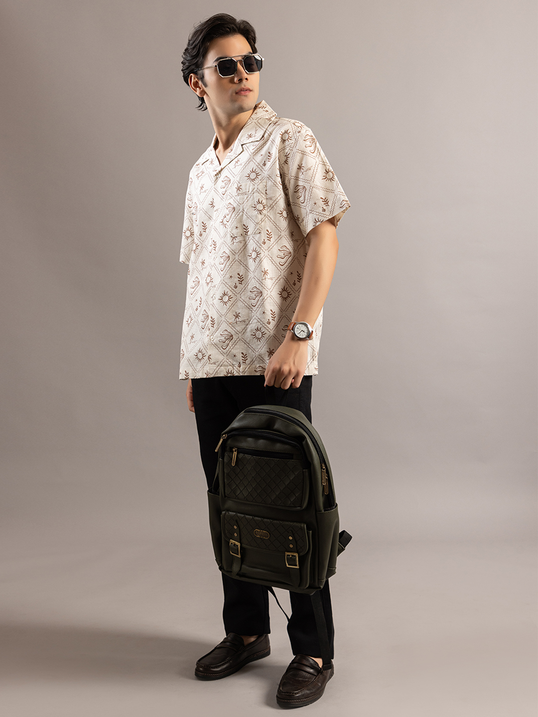 Stylish Sun Mapped Beige Greenish Shirt
