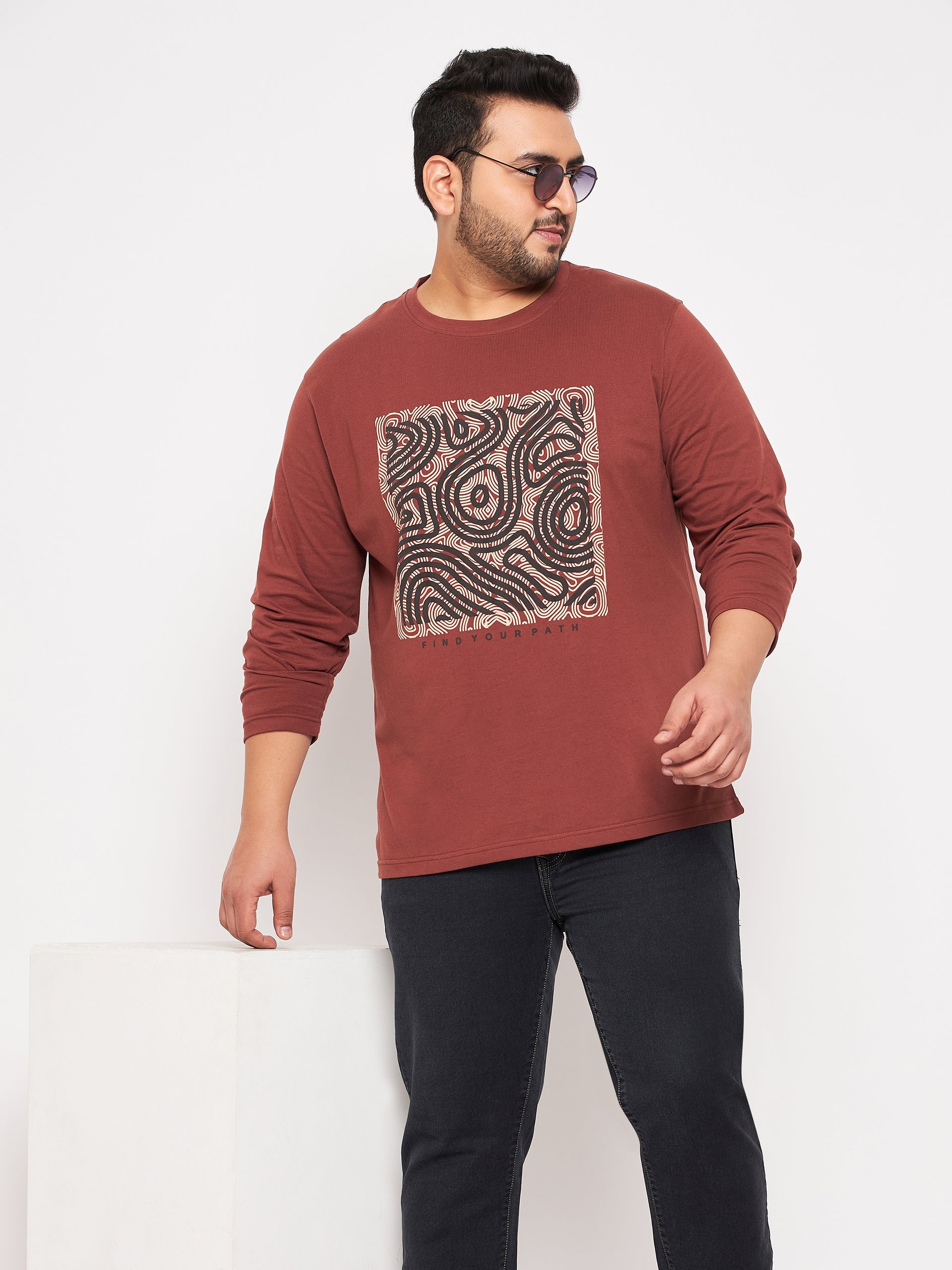 Brown Printed Round Neck T-Shirt 2033