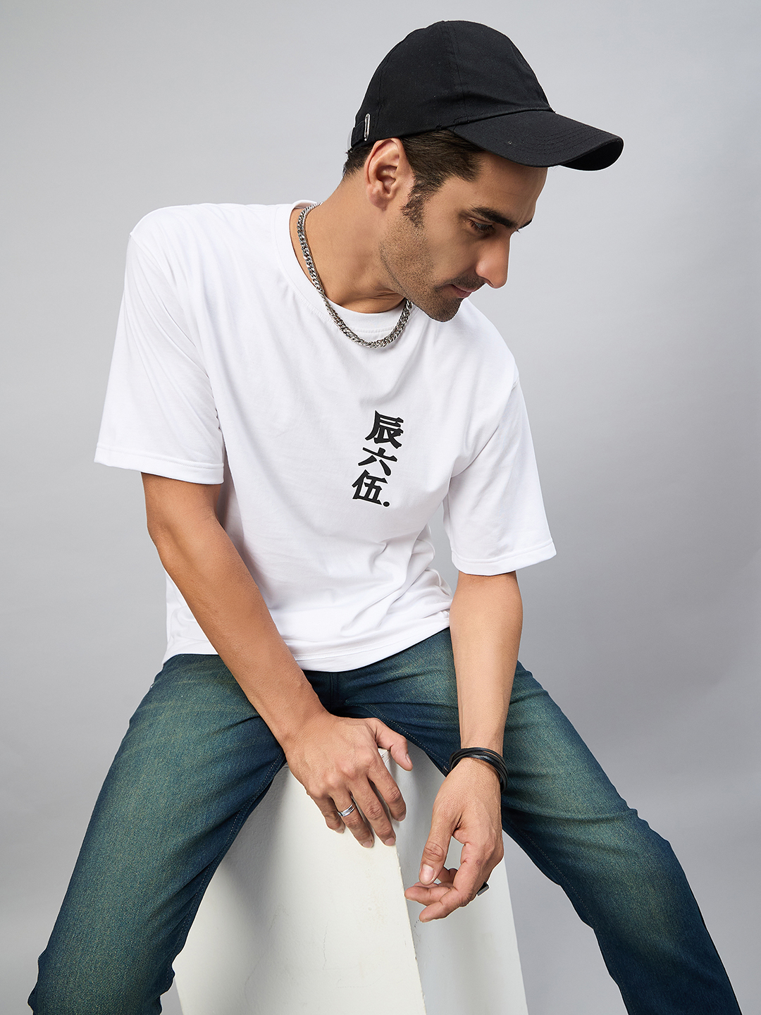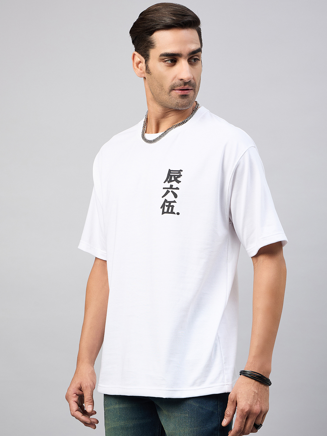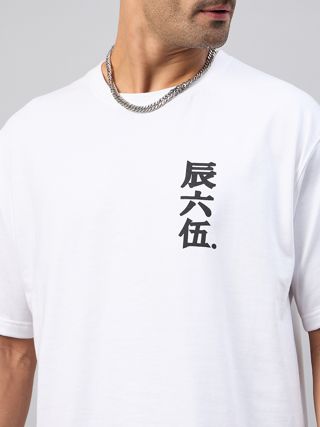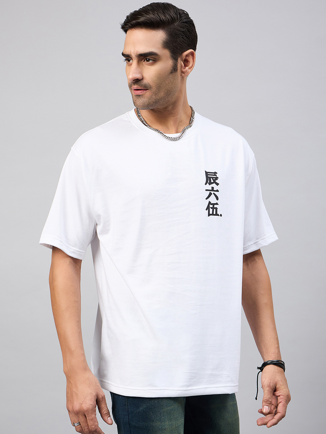 Men Solid Light Blue Round Neck Oversized T Shirt