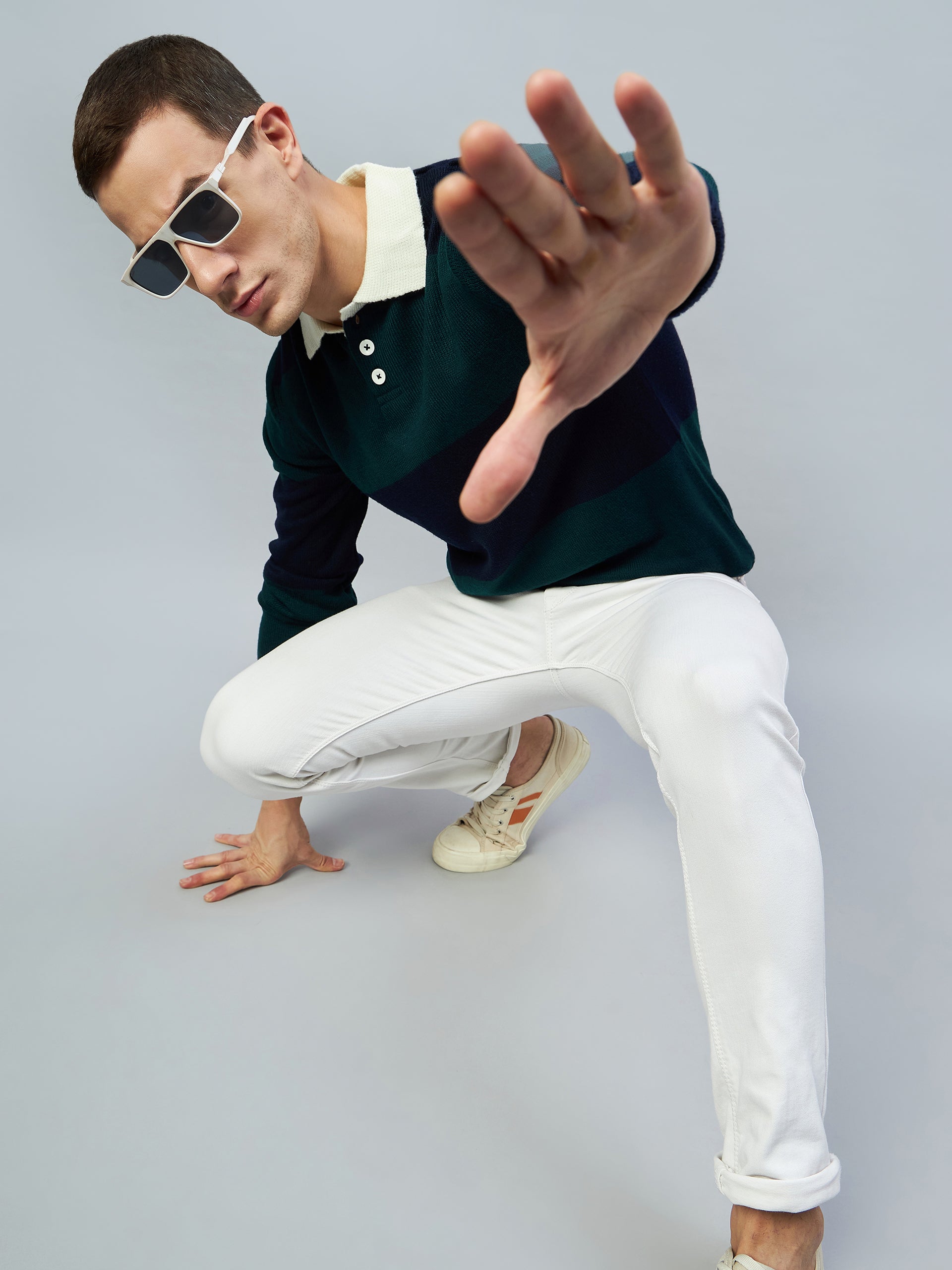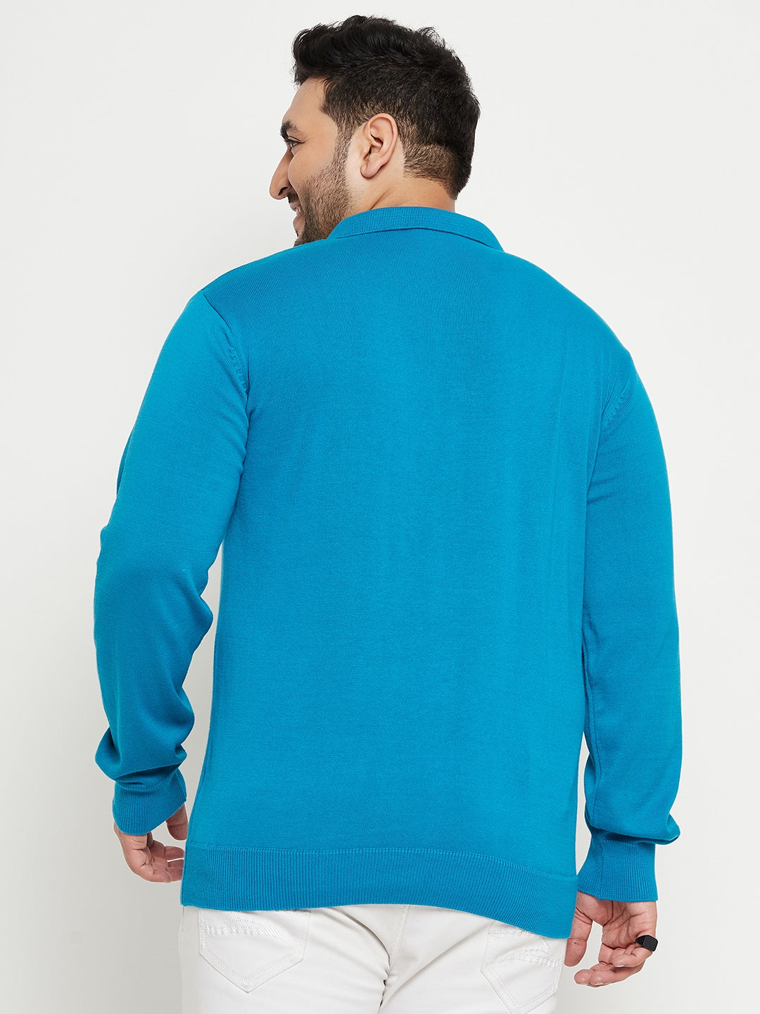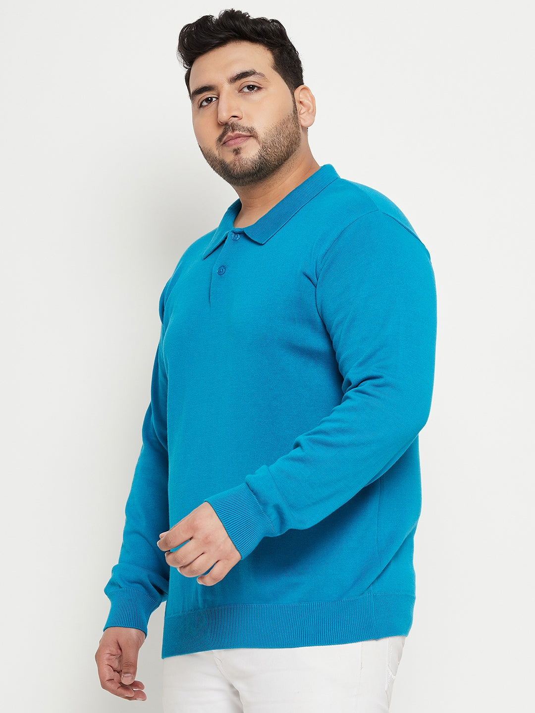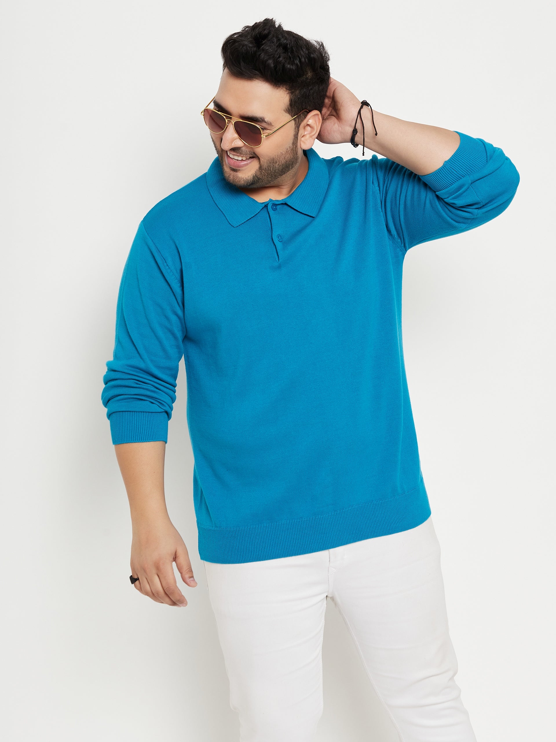 Teal Blue Polo Neck Plus Size Sweater 1368
