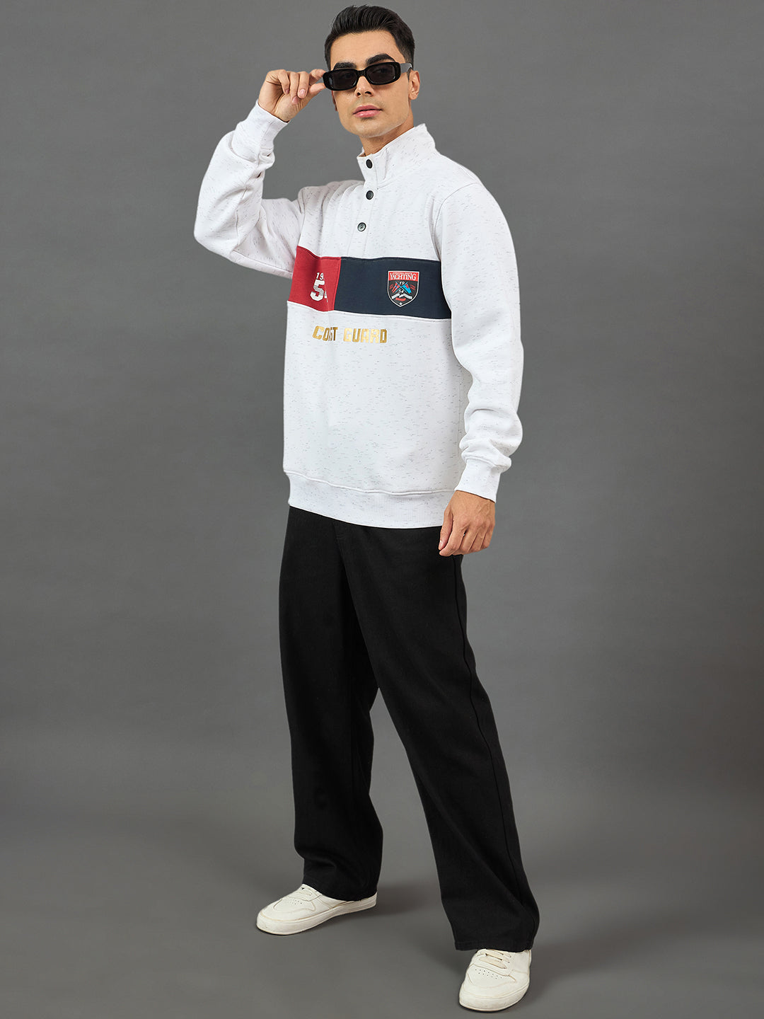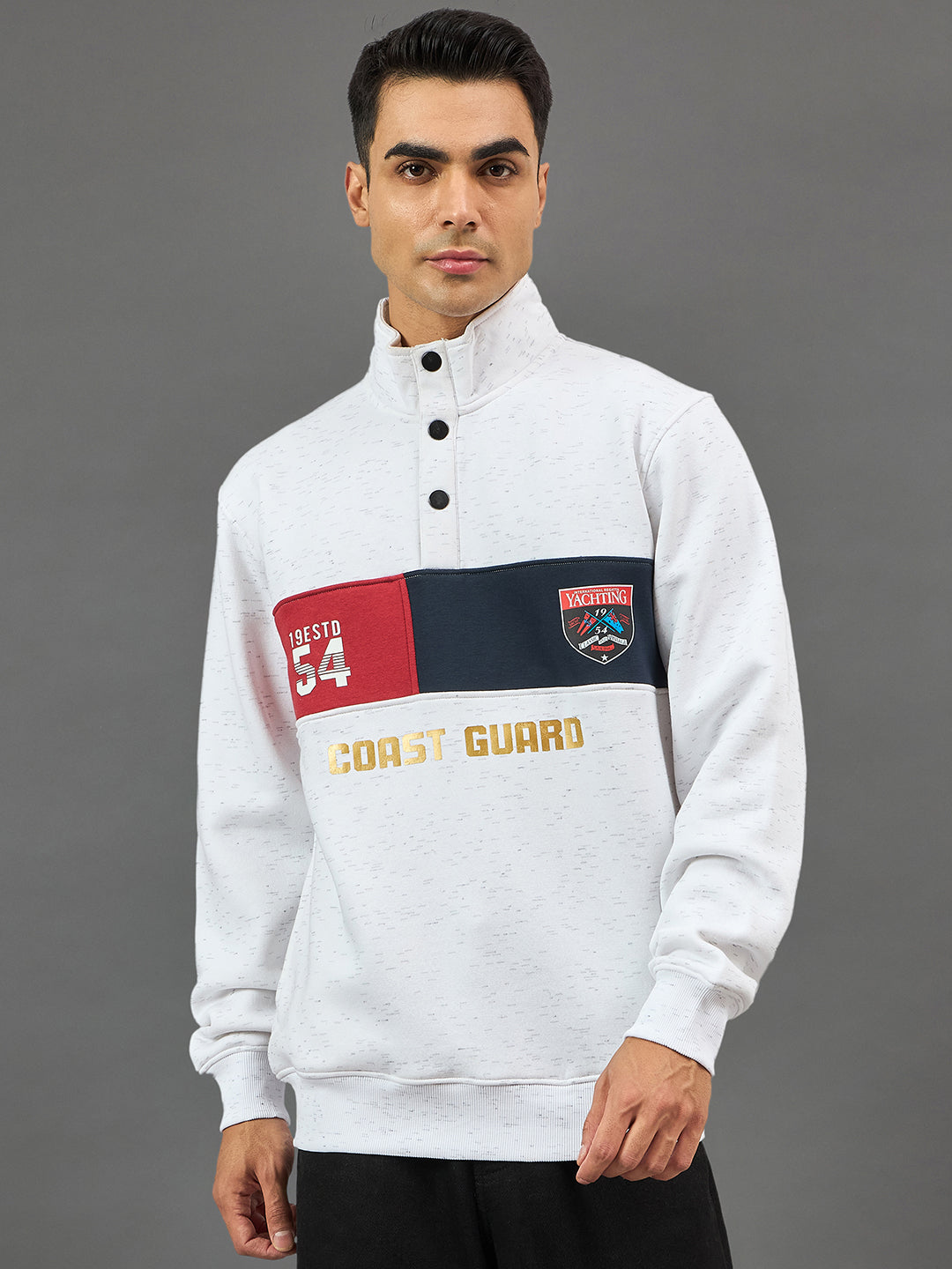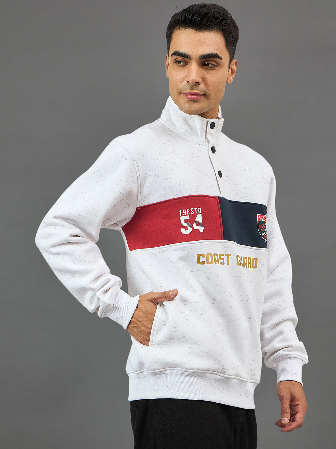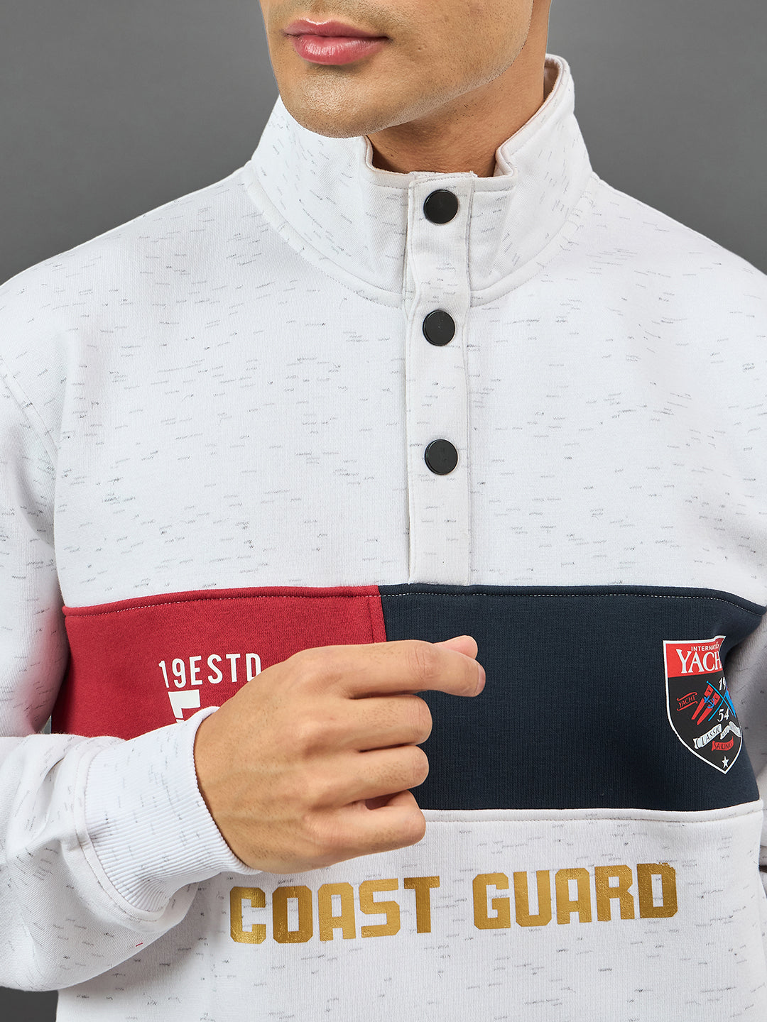 White Navy Blue Striped Polo Neck Sweatshirt 8675