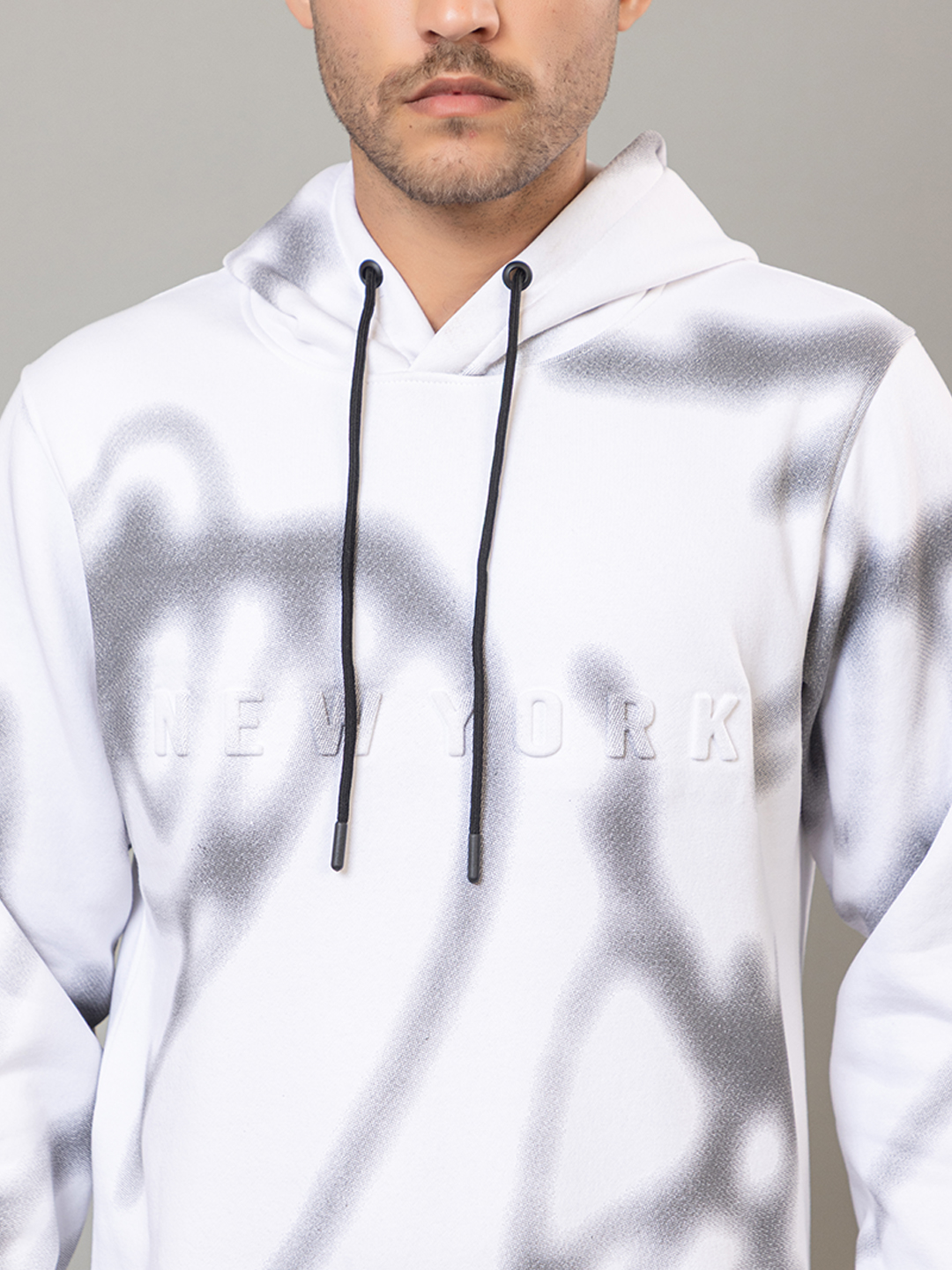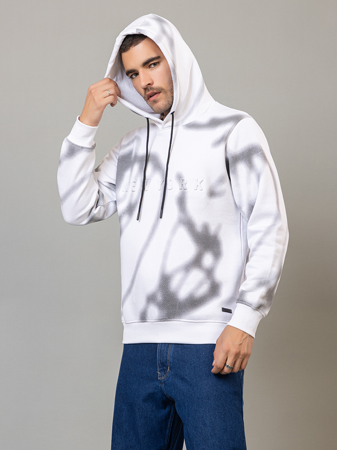 Off white Colorblocked Full Sleeve Hooded Sweatshirt 1658