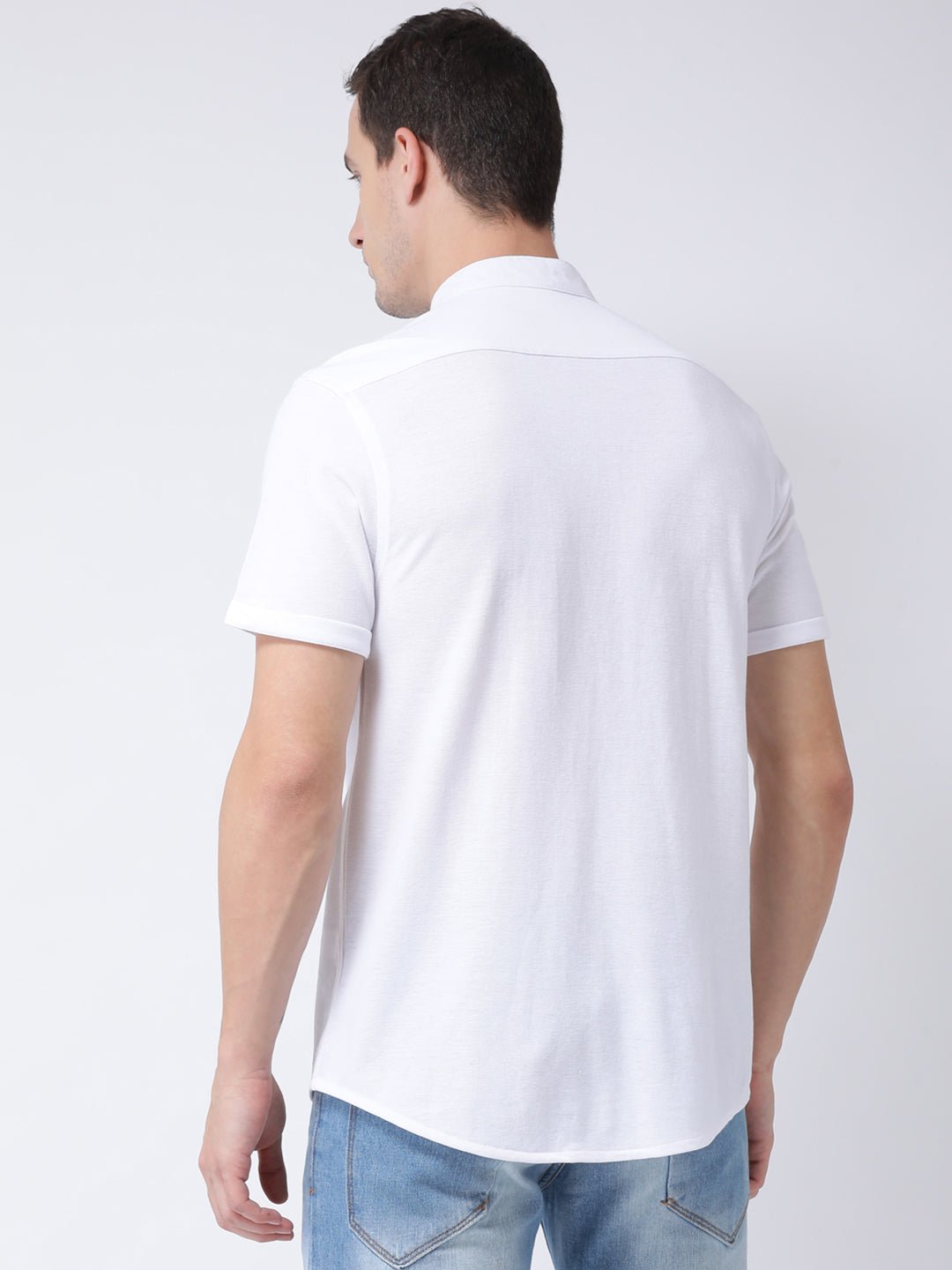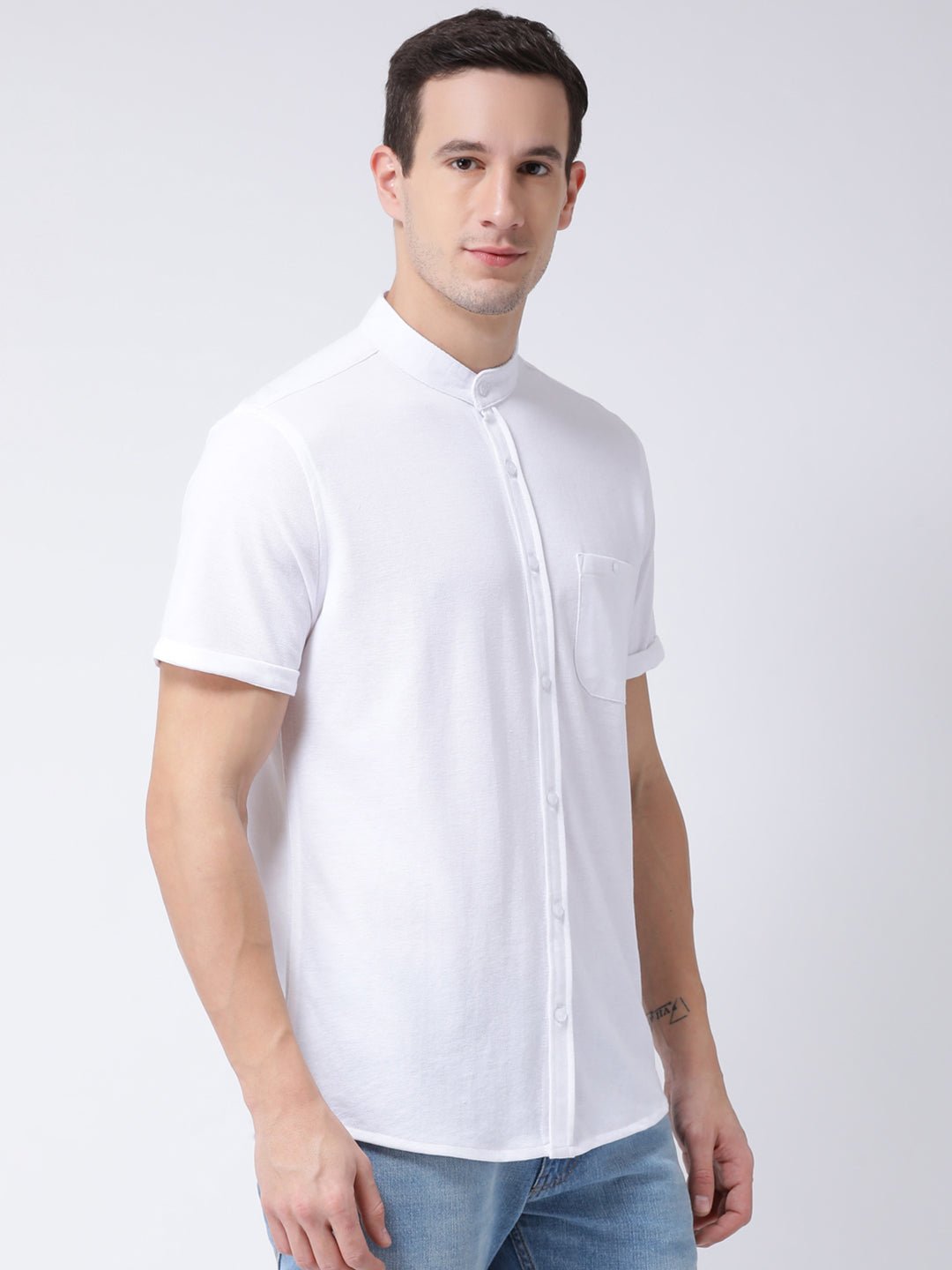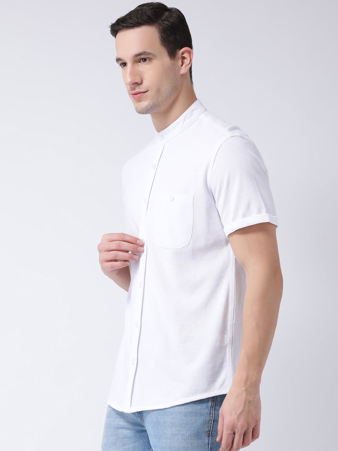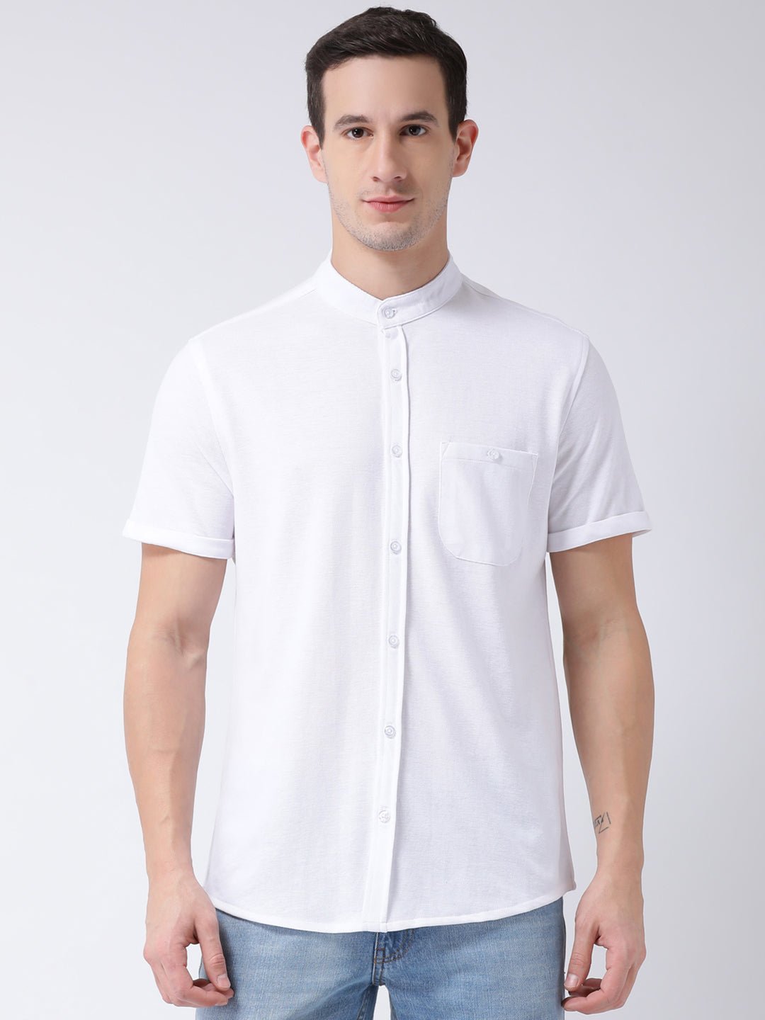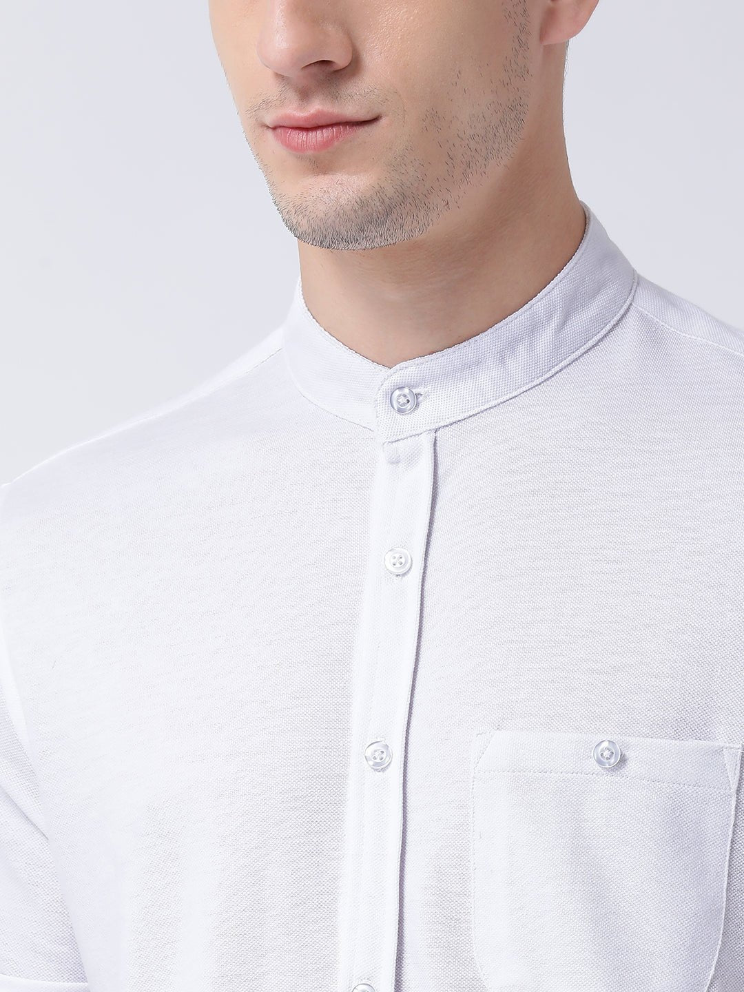 White Mandarin Knitted Shirt Has Chest Pocket Sm88 2732