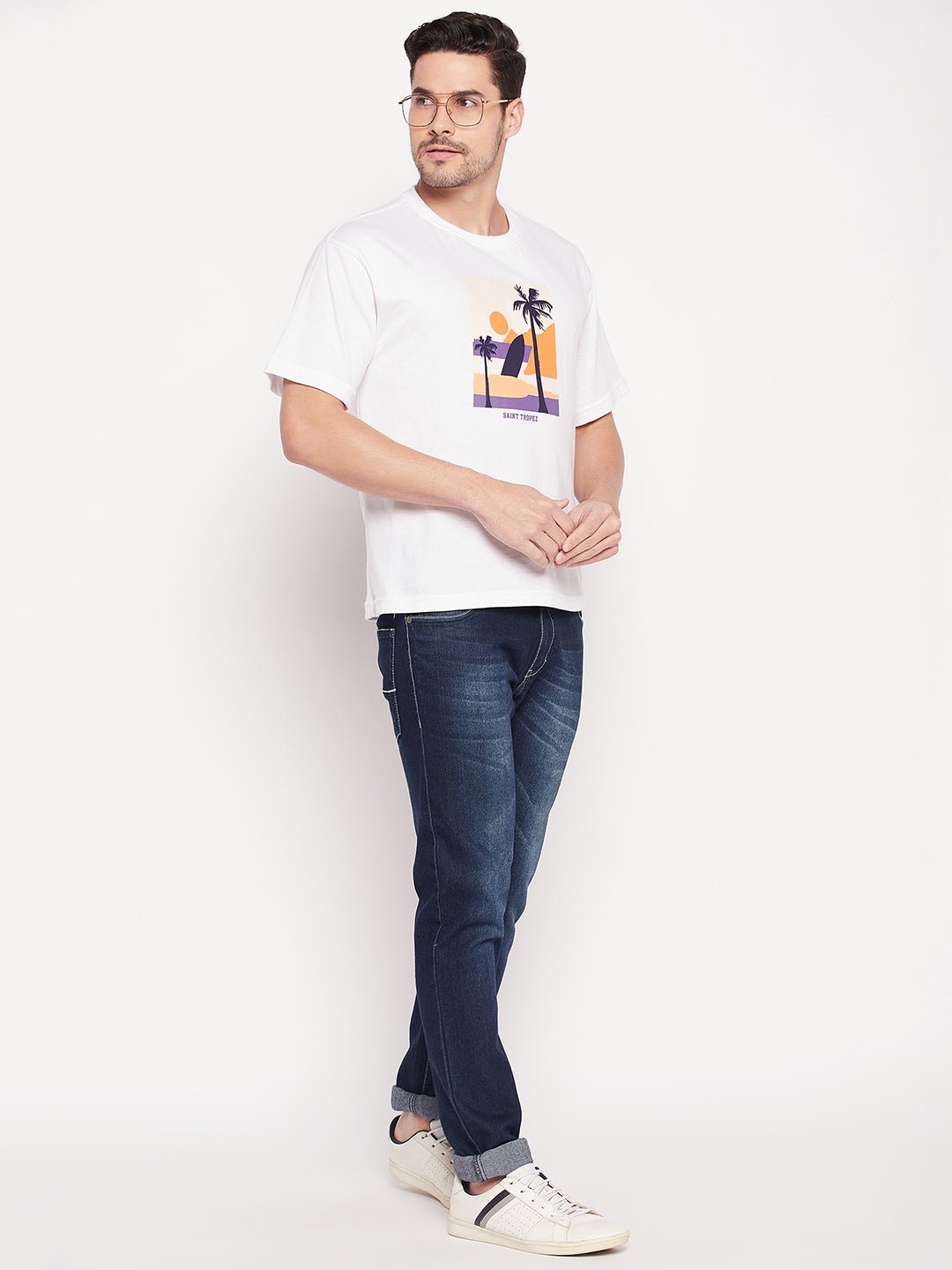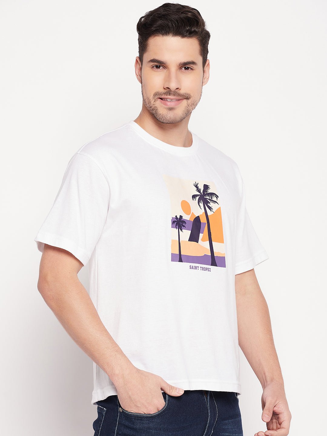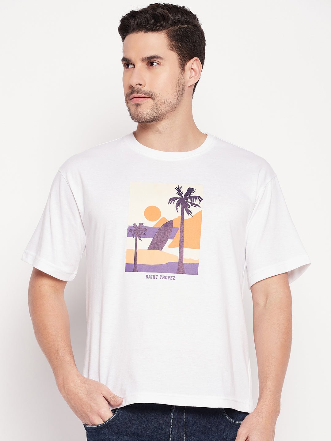 Men Solid Mocha Mouse Round Neck Oversized T Shirt