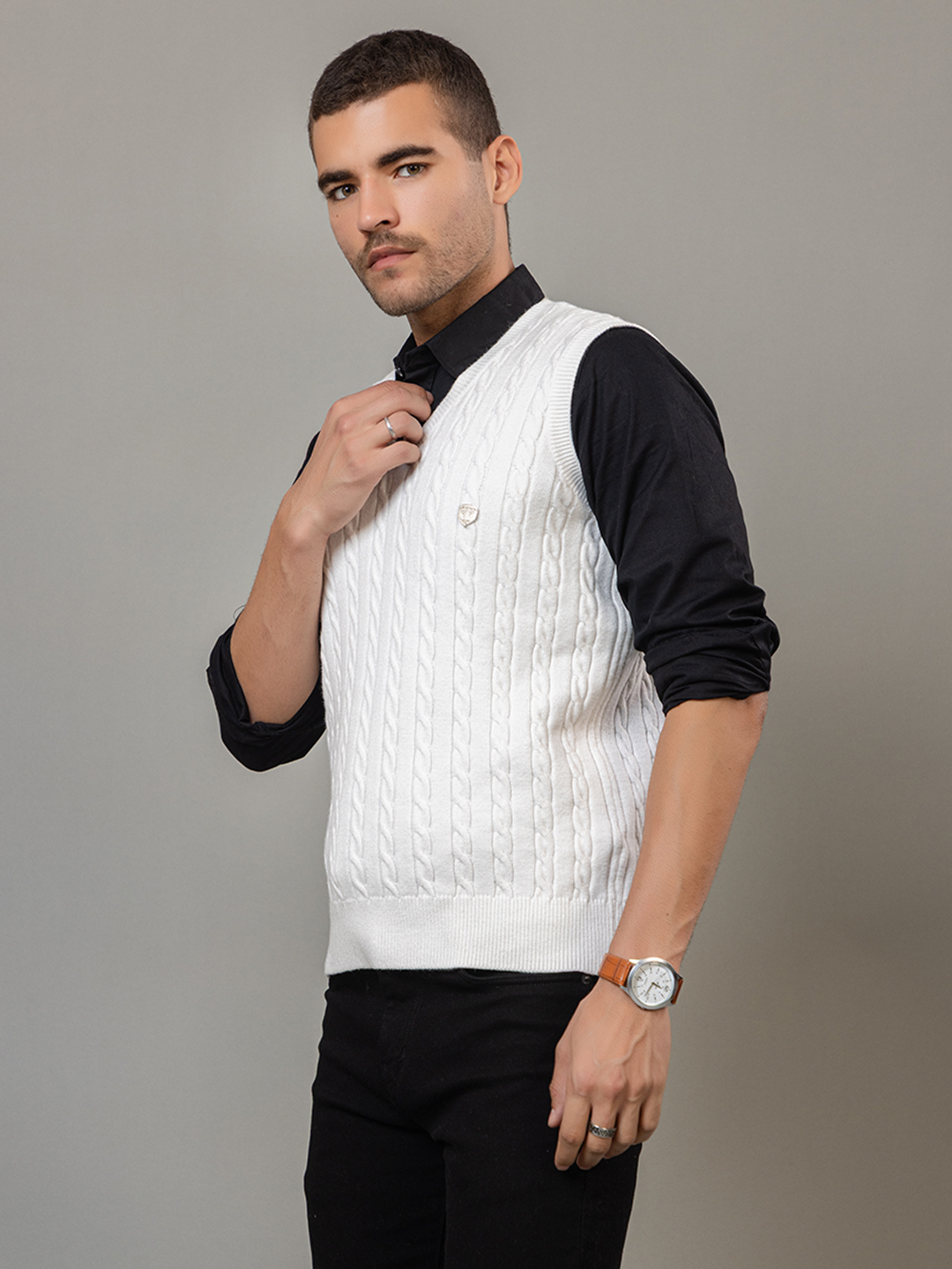 Maroon Sleeveless Solid V Neck Sweater 3604
