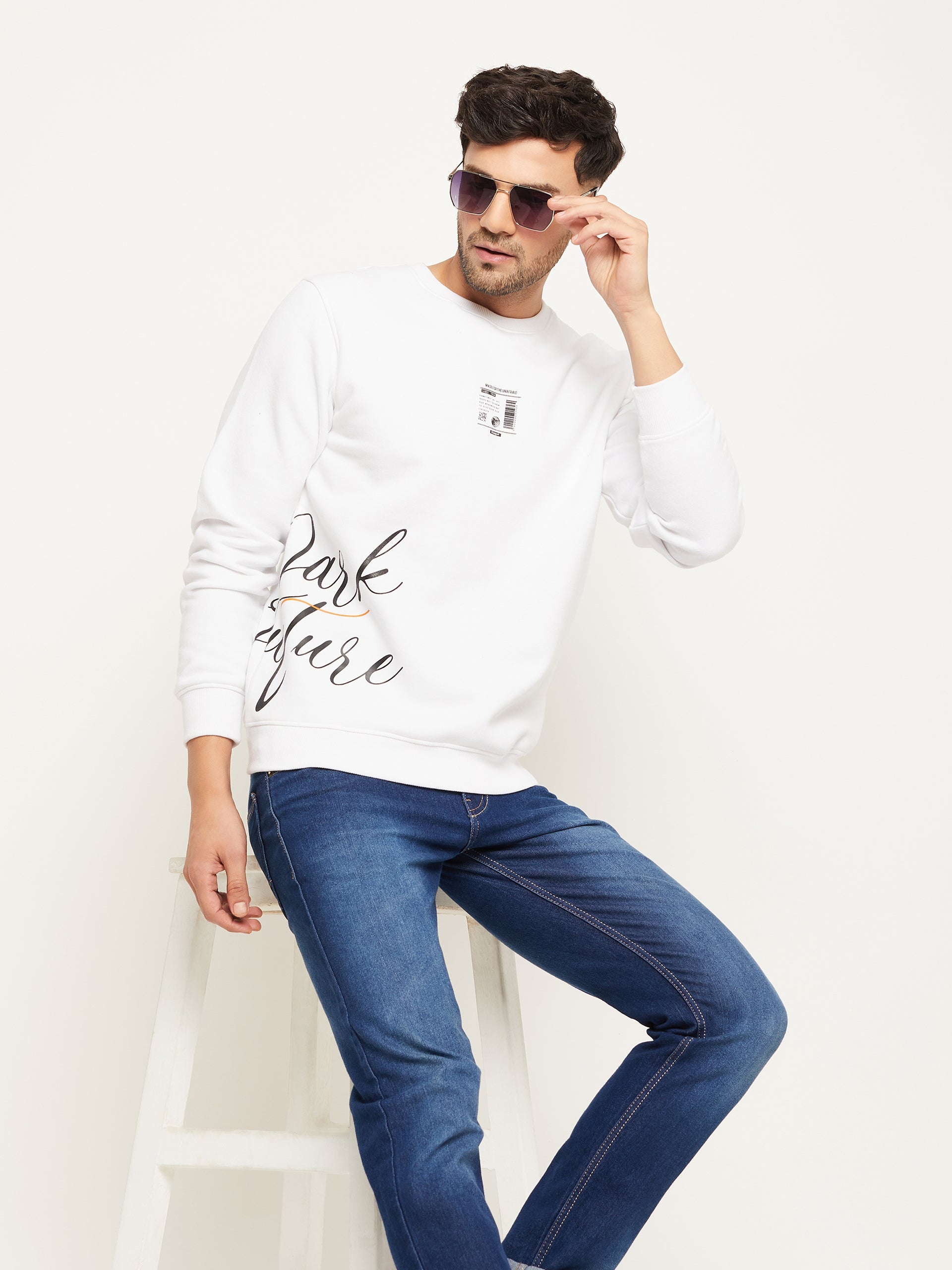 white Printed Full Sleeve Round Neck Sweatshirt 8416