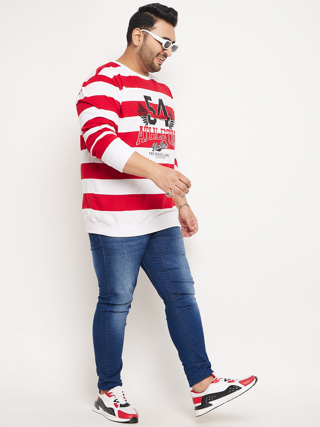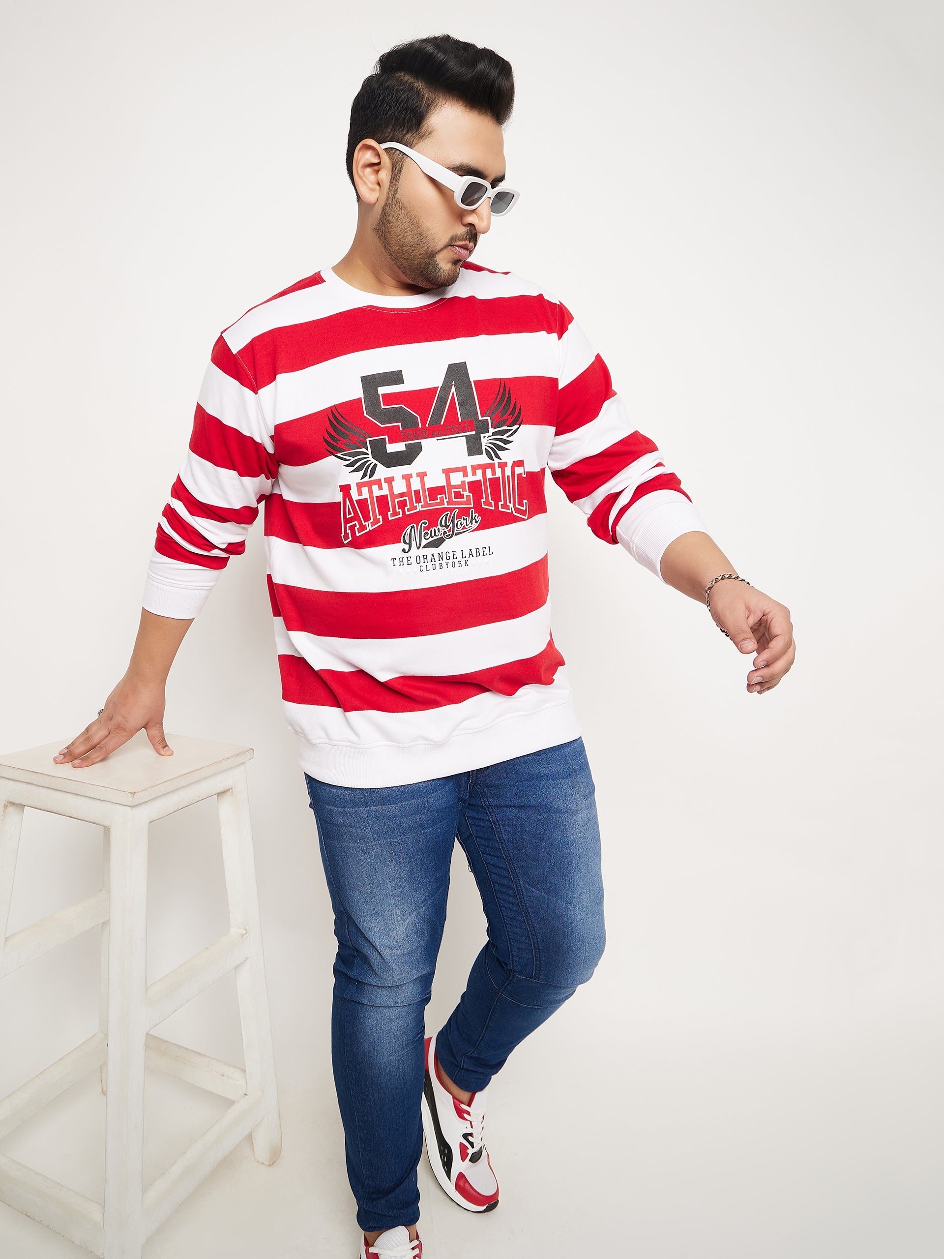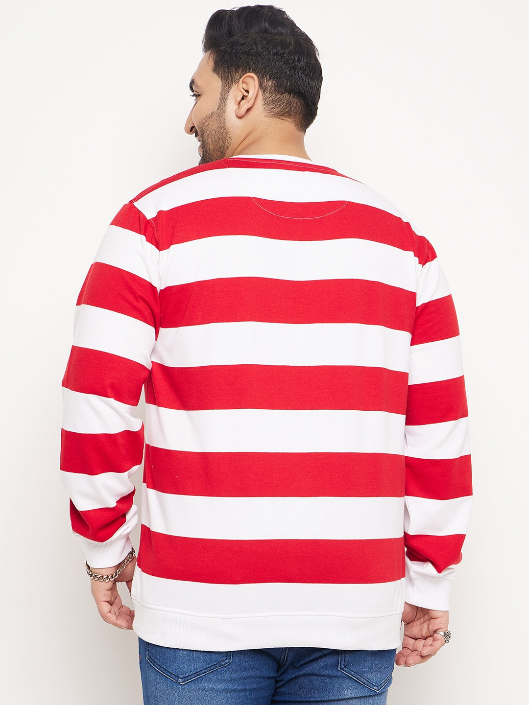 White Striped Full Sleeve Round Neck Plus Size Sweatshirt 5688