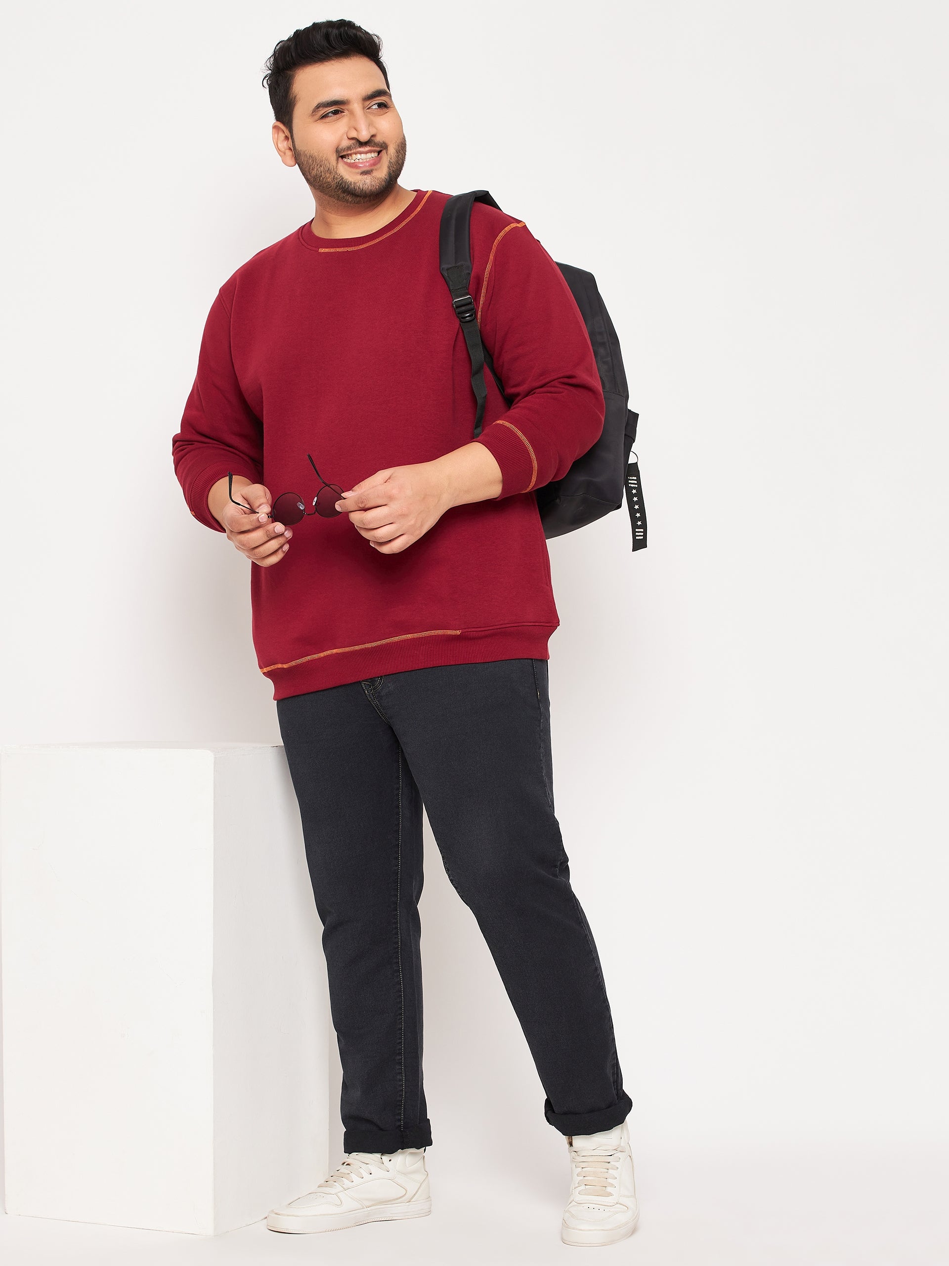 Wine Solid Full Sleeve Round Neck Plus Size Sweatshirt 6787