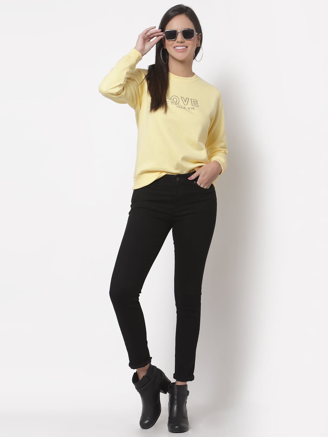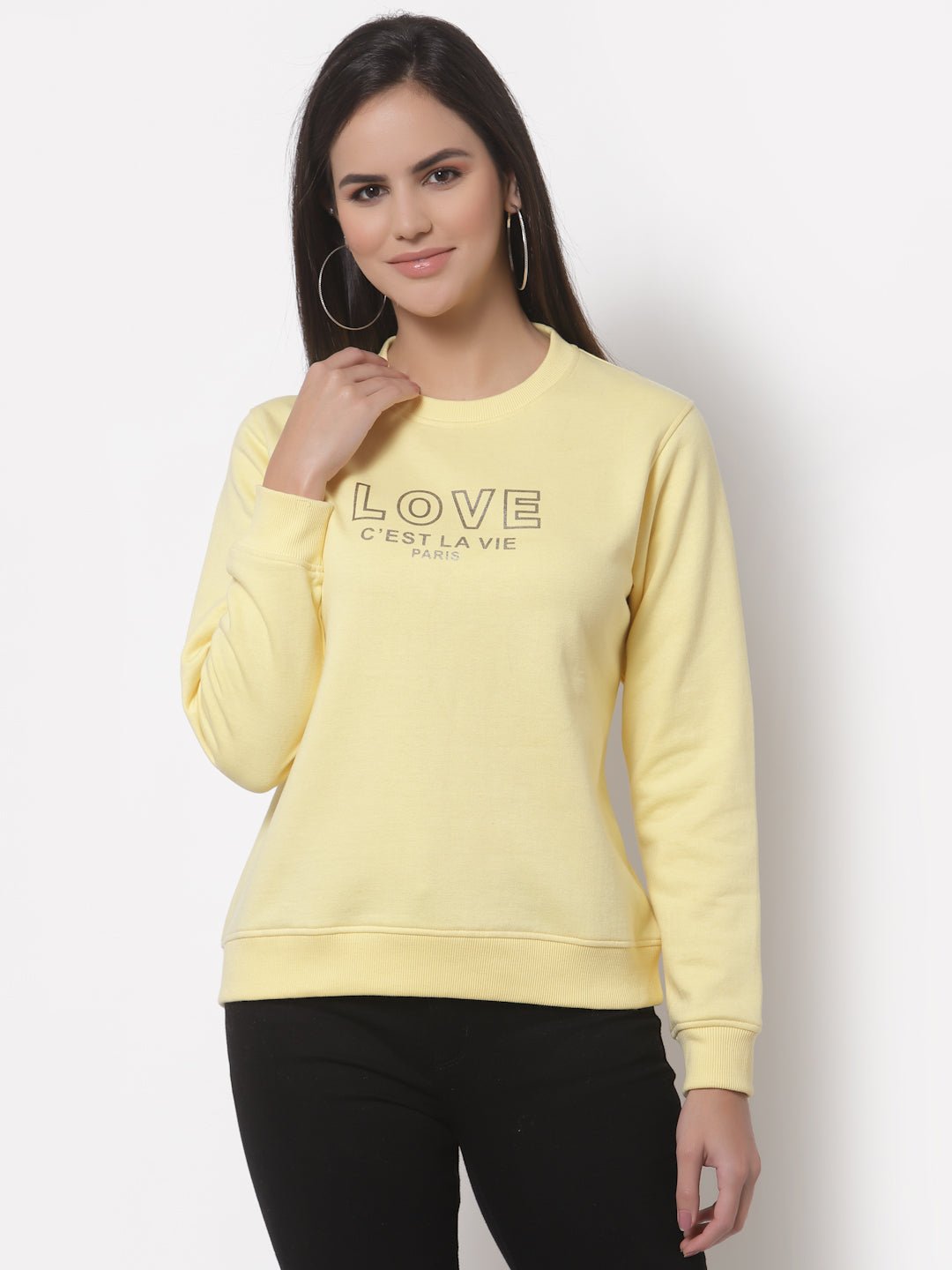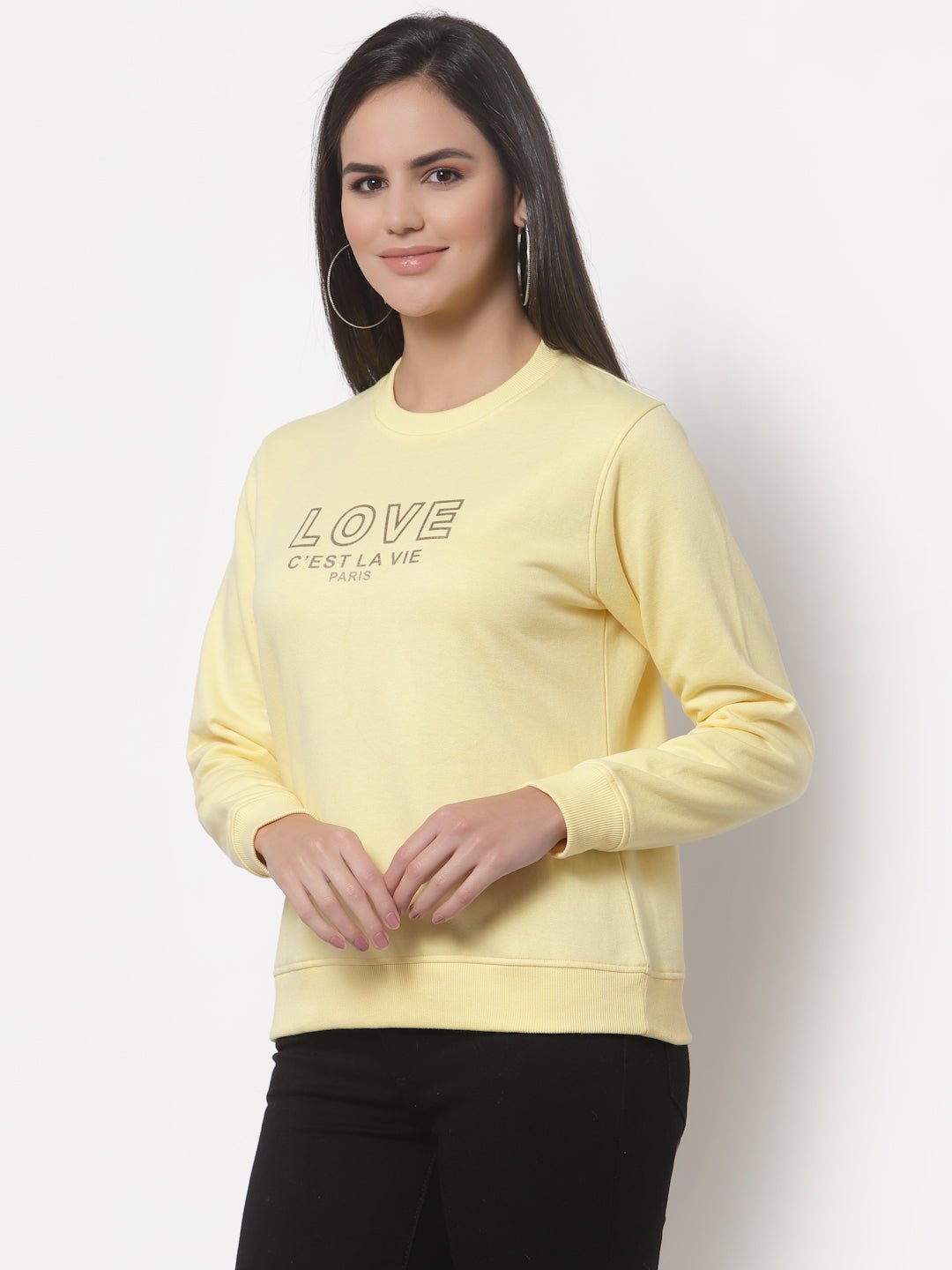 Yellow Printed Round Neck Sweatshirt Cyw438 1686