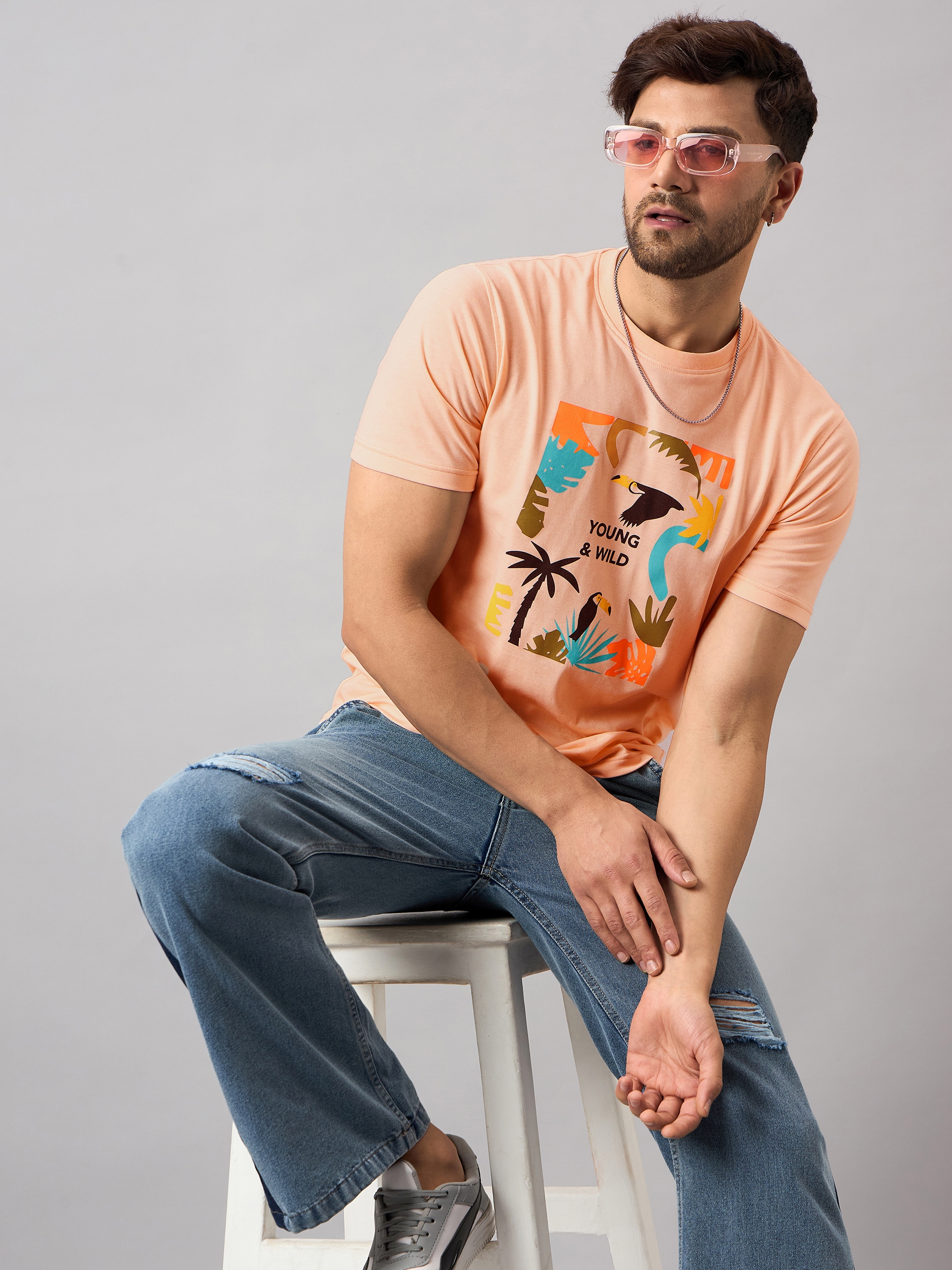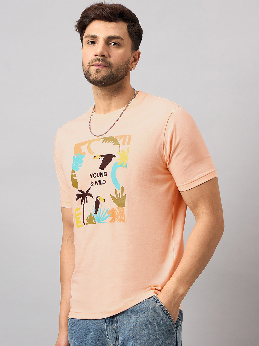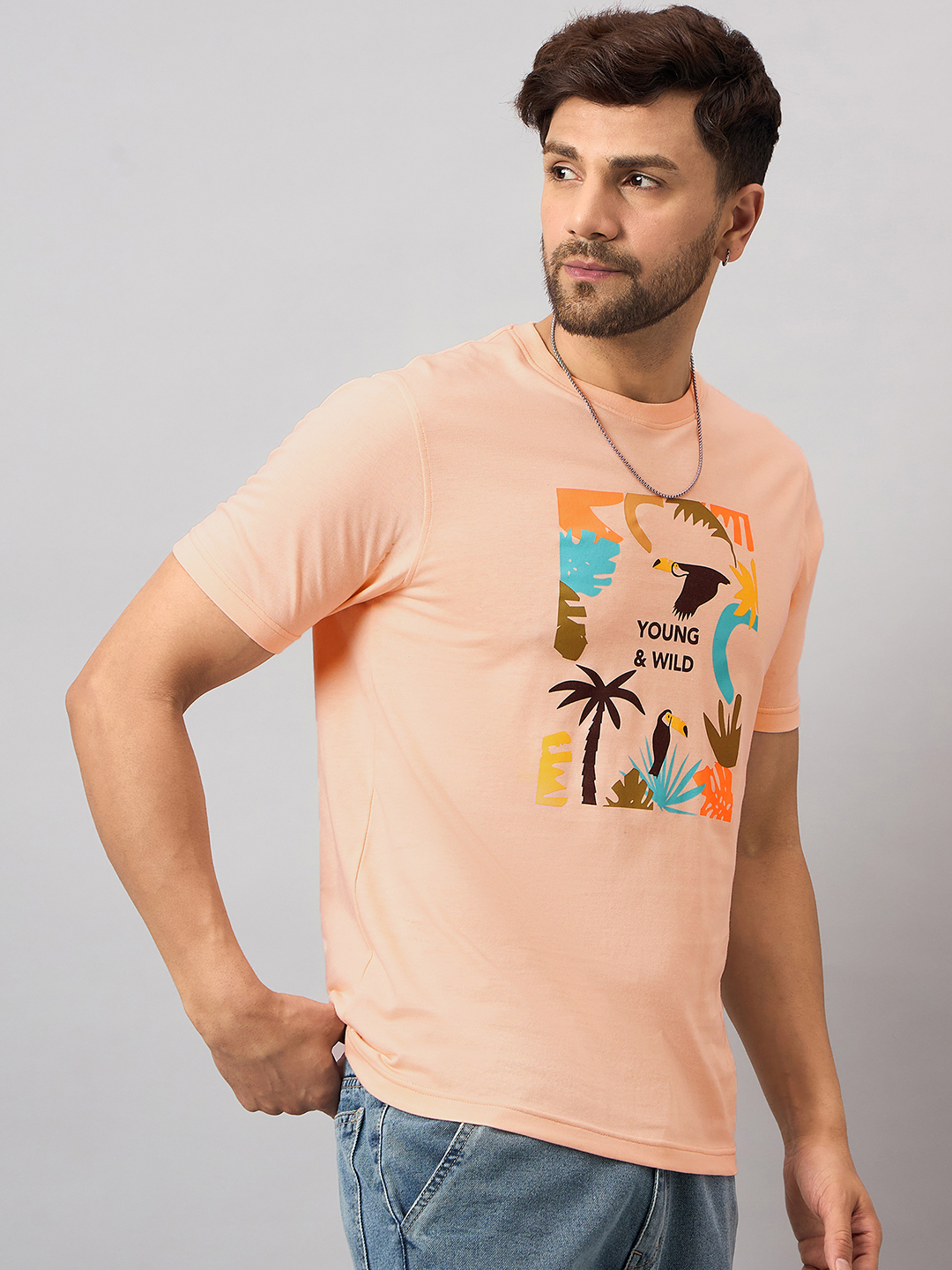 Bright Peach Printed Round Neck Plus Size T-Shirt 9770