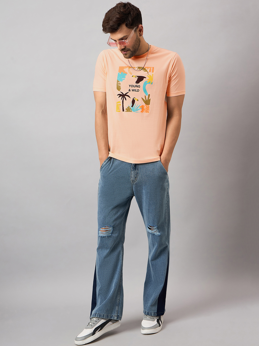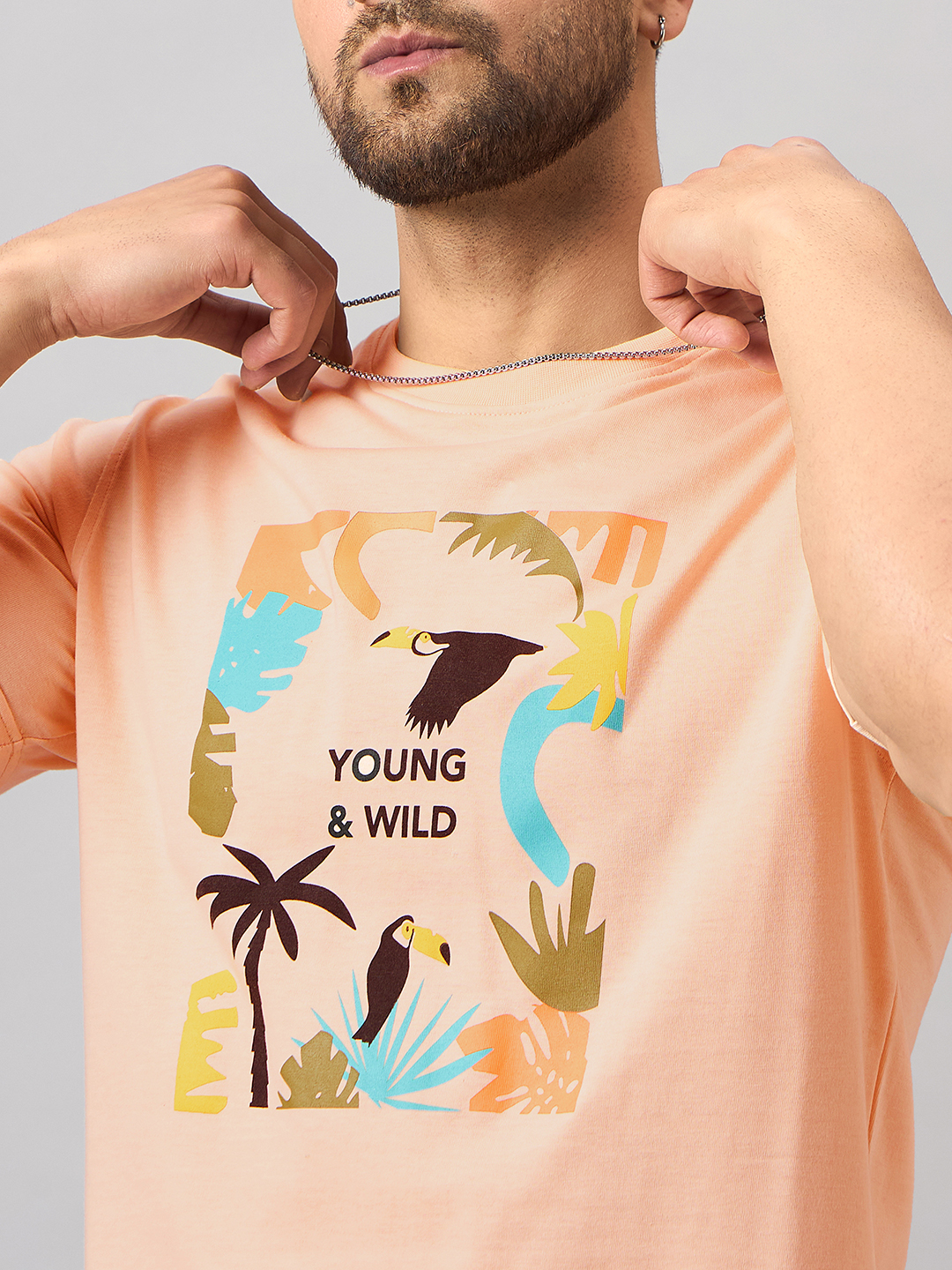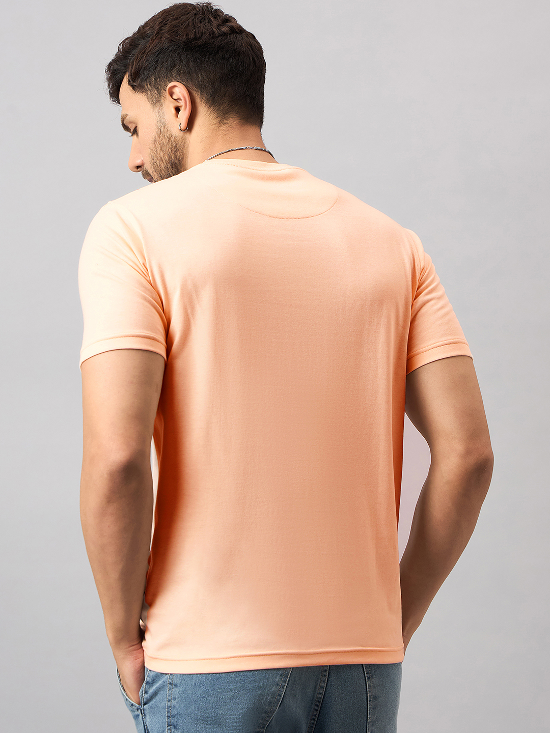 Bright Peach Printed Round Neck Plus Size T-Shirt 9770
